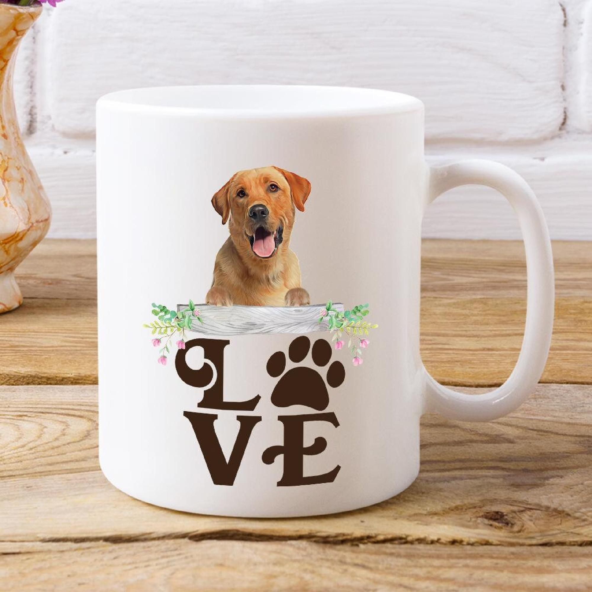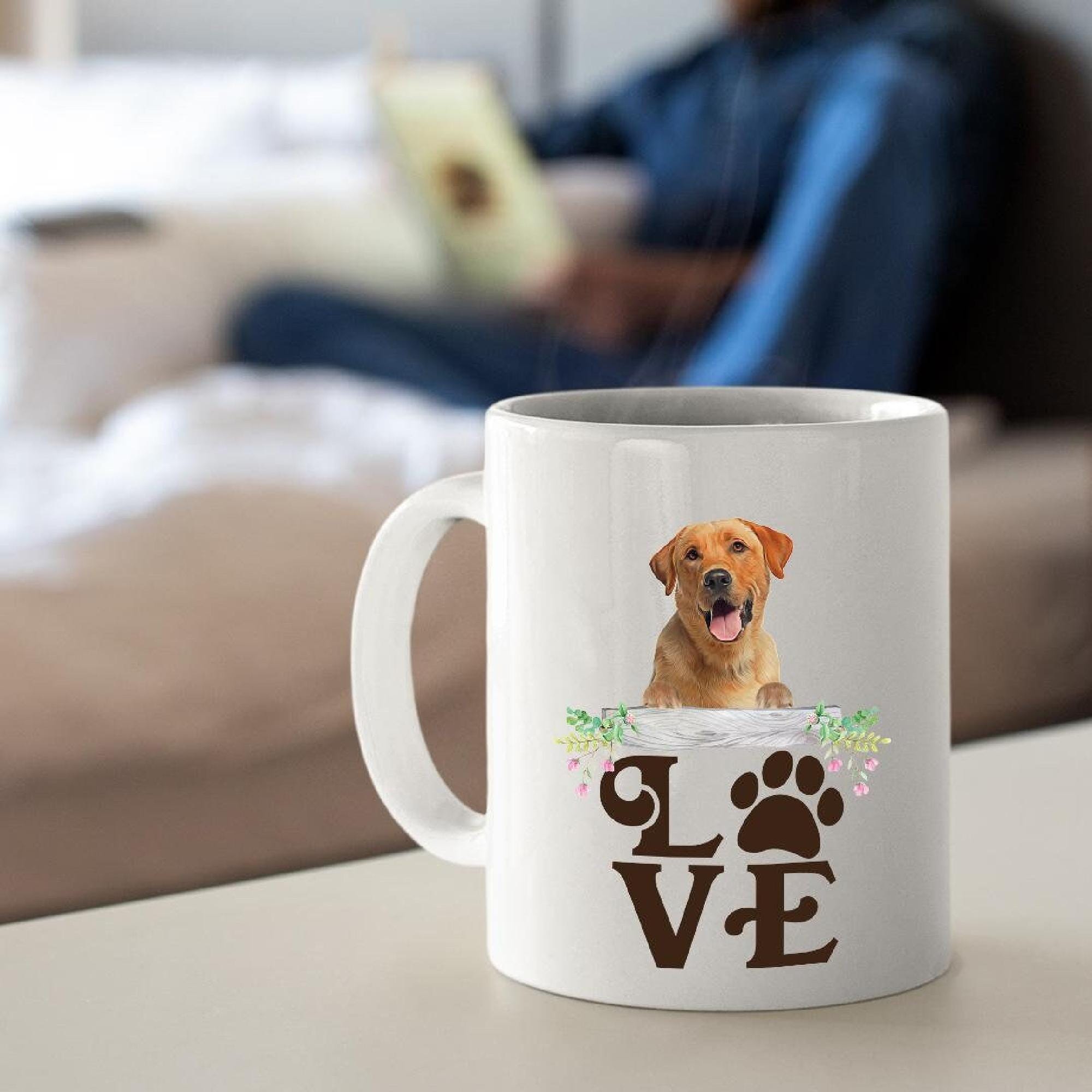 Add a pop of color to your morning with this modern mug, perfect for dog mom coffee lovers. Our white ceramic gift mug is ideal for those who appreciate a unique Yellow Labrador mug design.