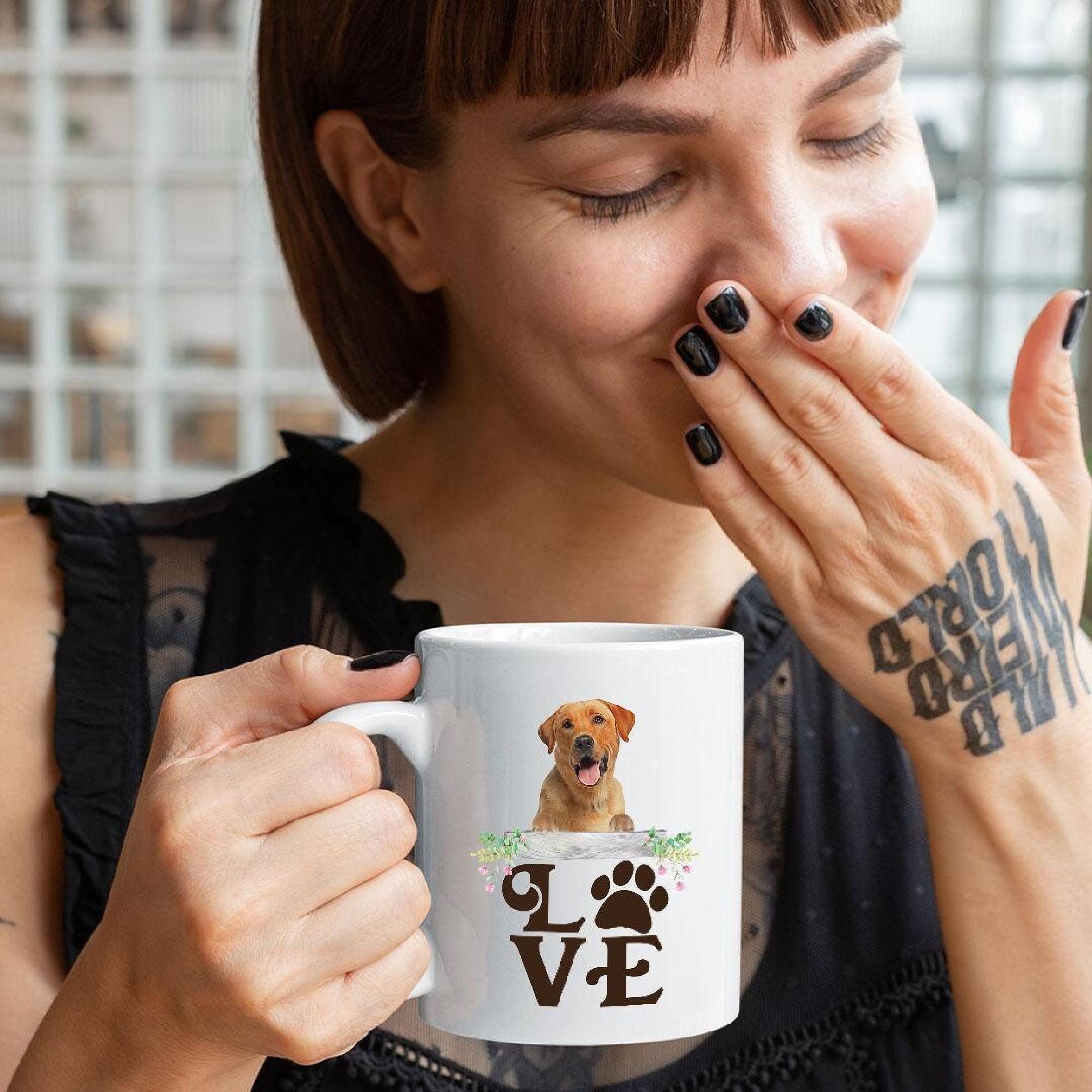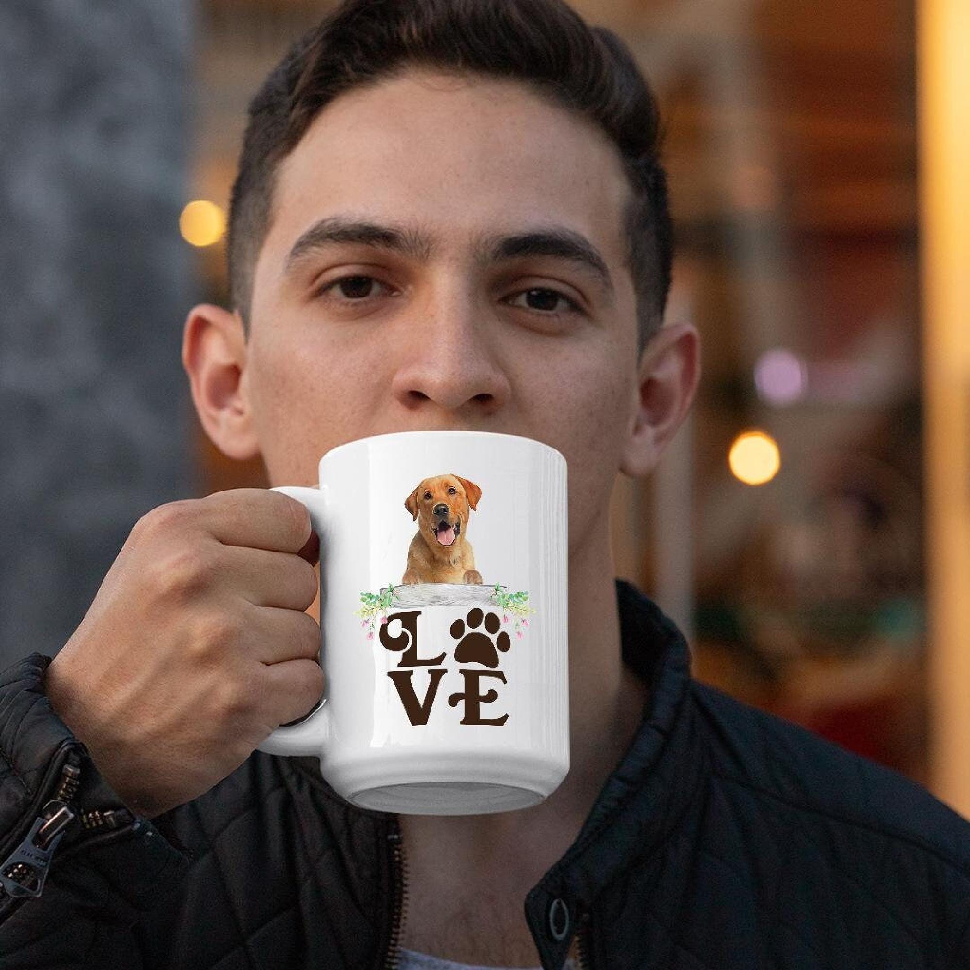 This quote coffee cup features vibrant, full-color images, making it a standout for any dog face mug collection. It’s a thoughtful dog adoption gift or a fun yellow lab present for anyone who loves yellow lab art mug styles. Celebrate every coffee break with a customized lab mug made just for you, or choose it as a one-of-a-kind birthday dog mug.