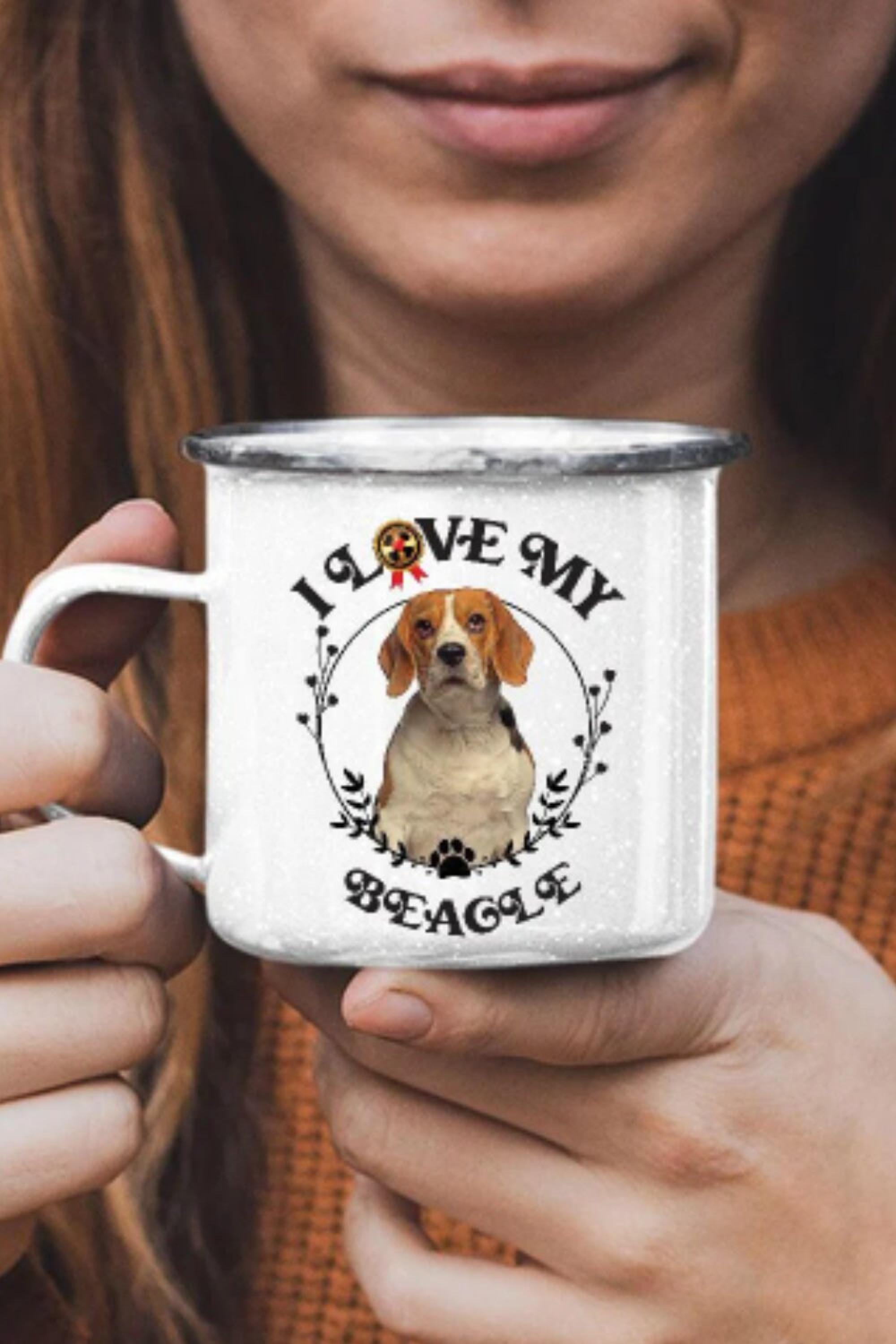 Bring along this beagle camp cup as part of your dog camping gear, or gift it as a custom beagle mug for a friend. It’s perfect as a pet adoption present, a beagle fan present, or a furry friend mug for your favorite beagle lover. The puppy mug enamel finish ensures it's sturdy for outdoor adventures while being stylish as a beagle themed mug.