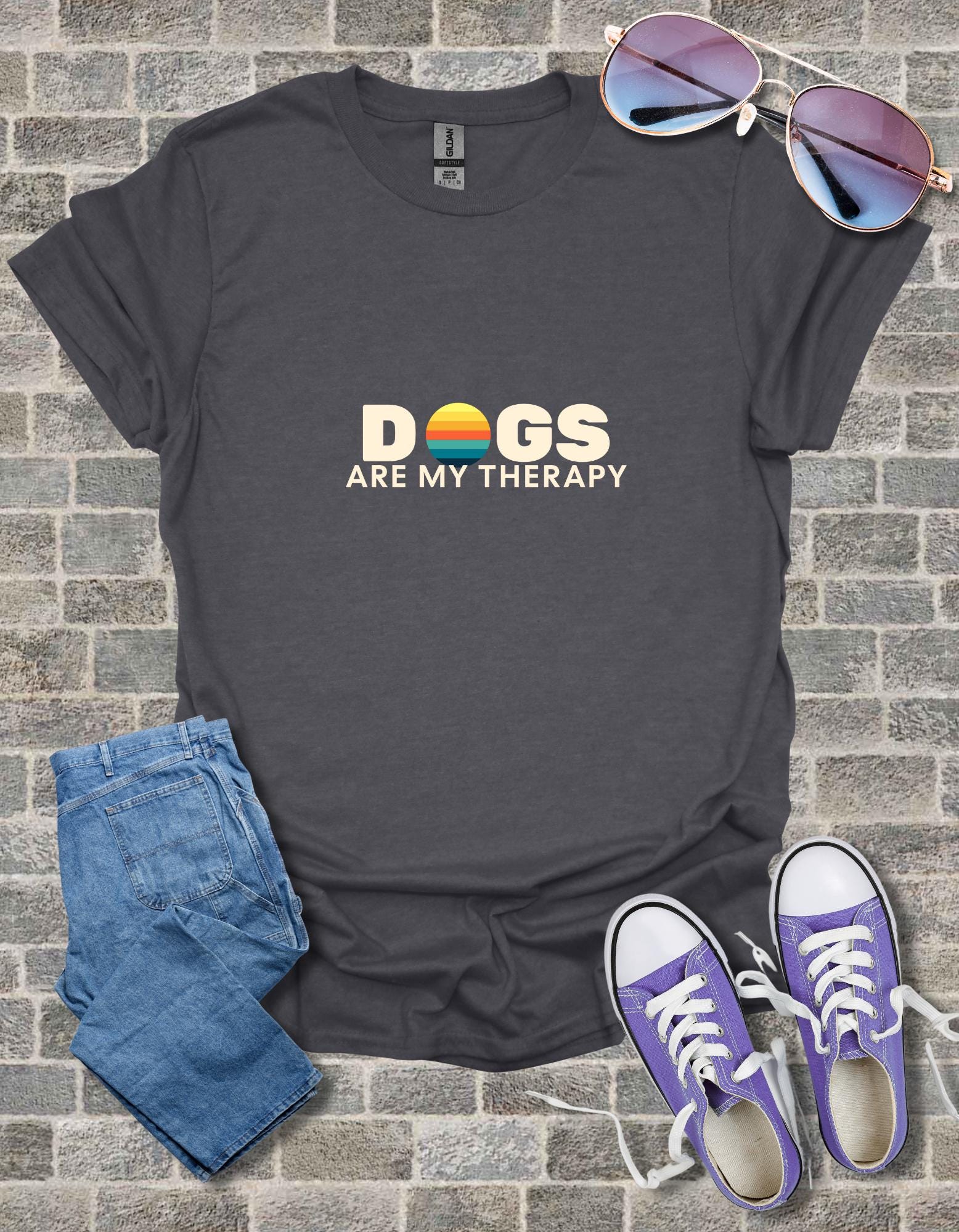 We use the "Gildan 64000 Softstyle® Unisex T-shirt, known for its comfort, durability, and modern fit. It's a high-quality, lightweight shirt made from "100% ring-spun cotton" (heather colors contain polyester).