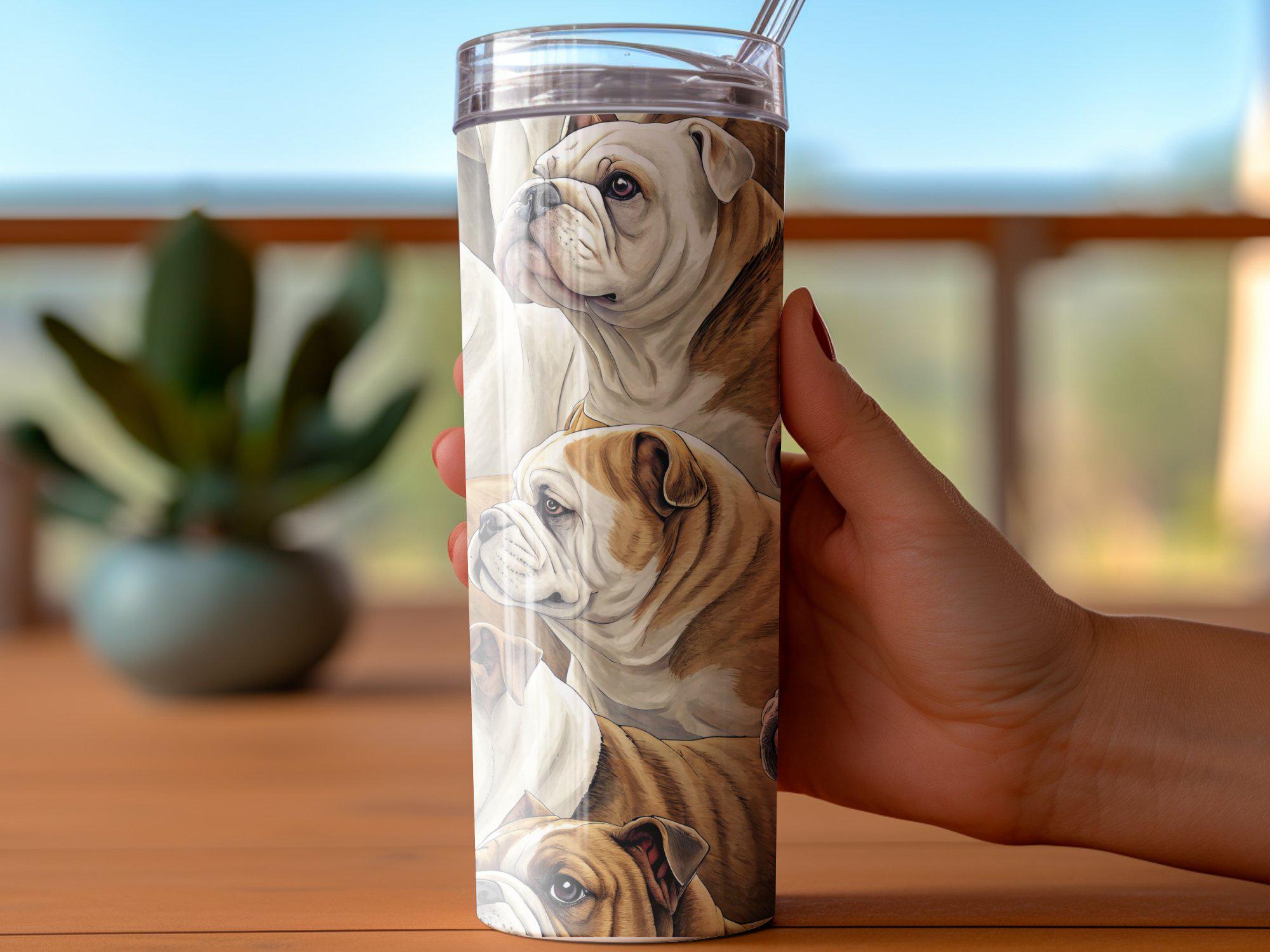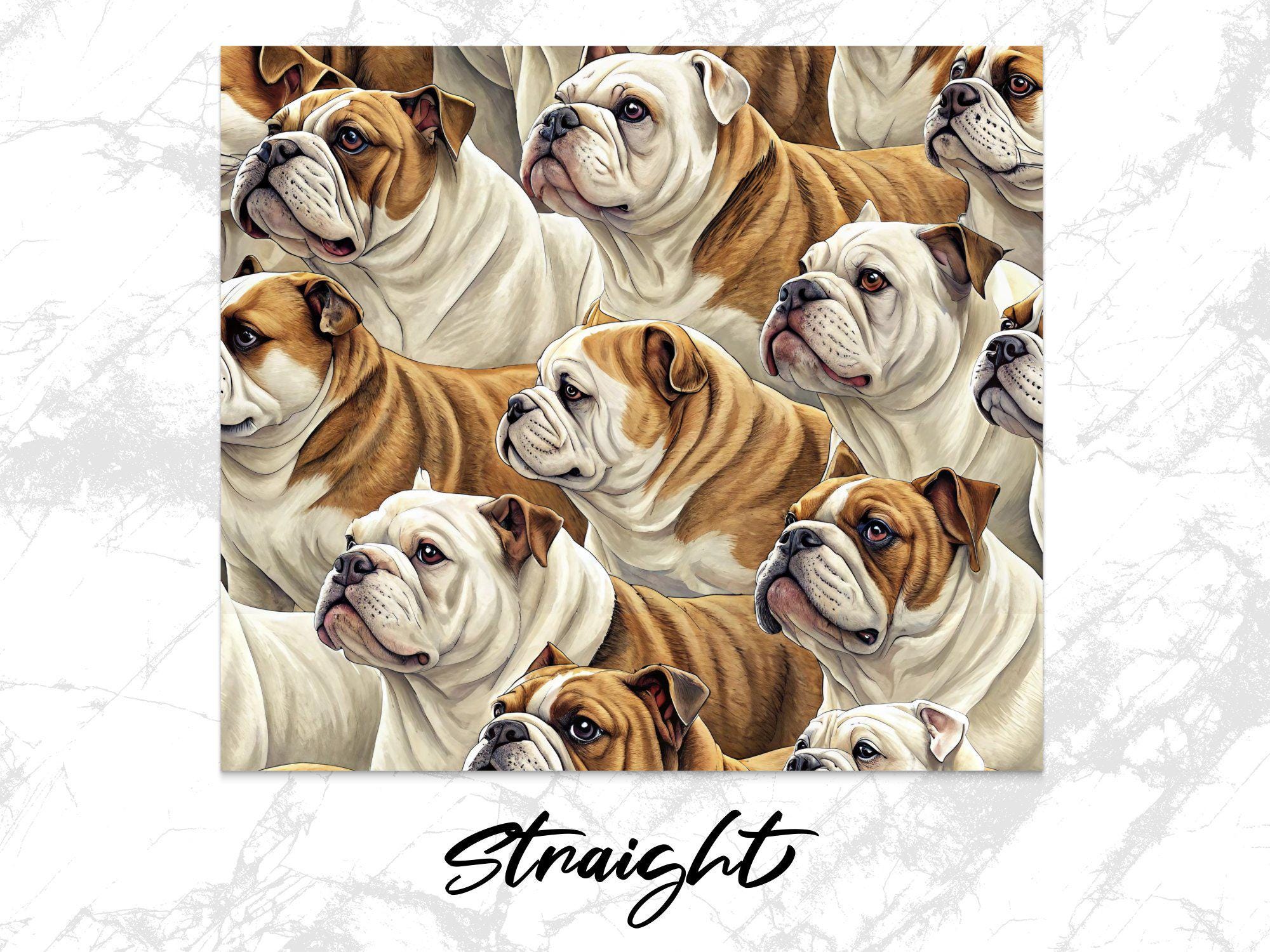 Instantly elevate your tumbler with this adorable Bulldog design. This digital download is perfect for creating custom gifts for dog lovers or adding a touch of canine charm to your own drinkware. This seamless design makes creating your own personalized items quick and easy.