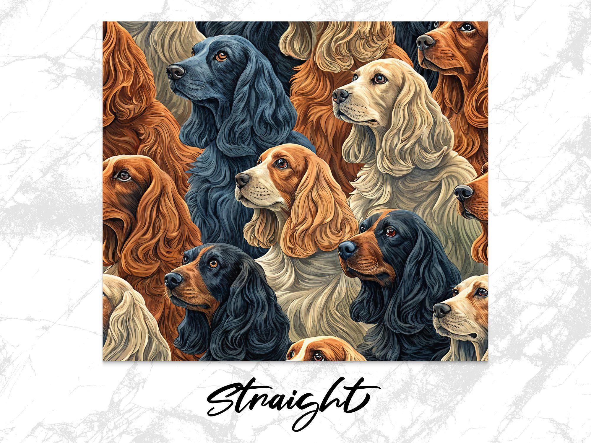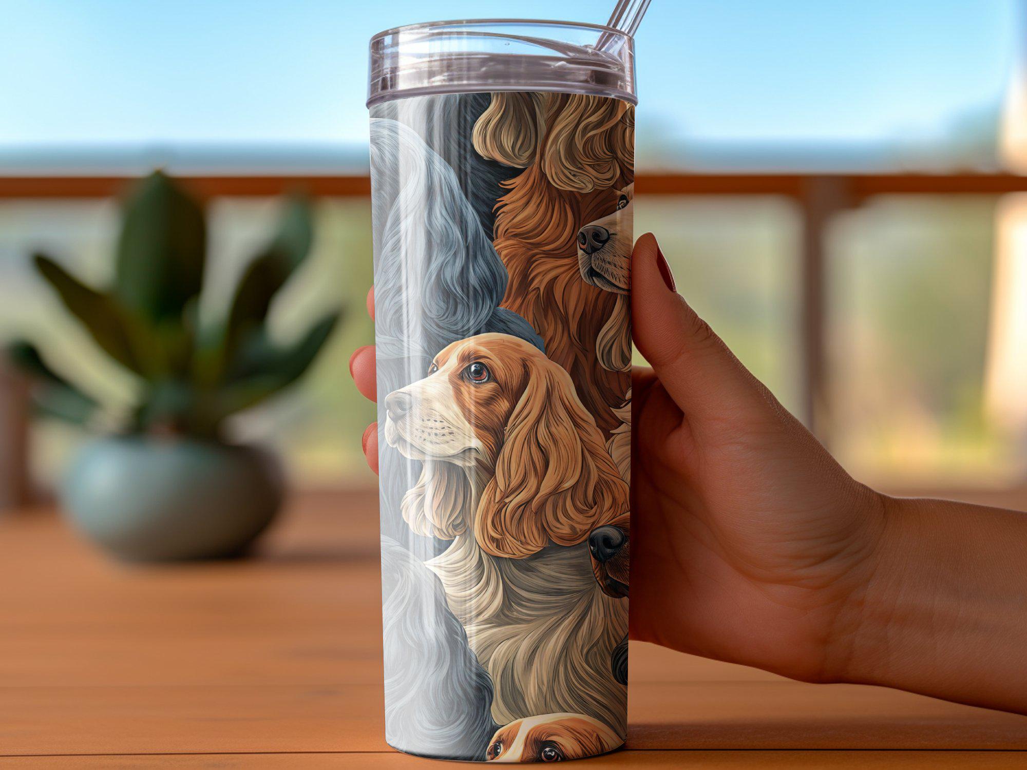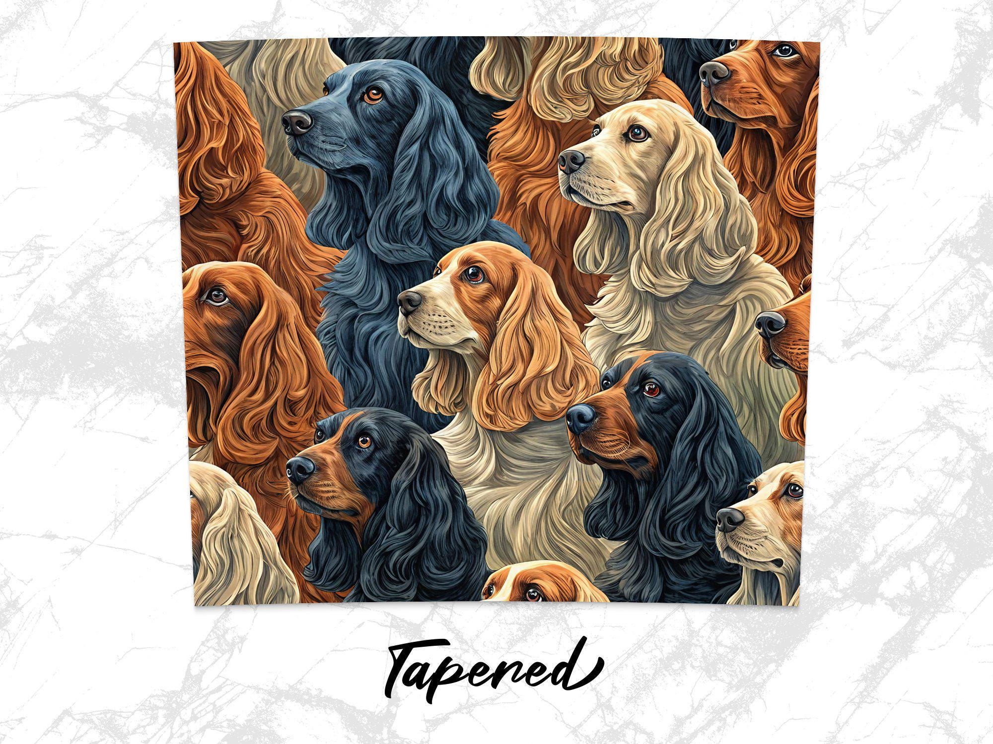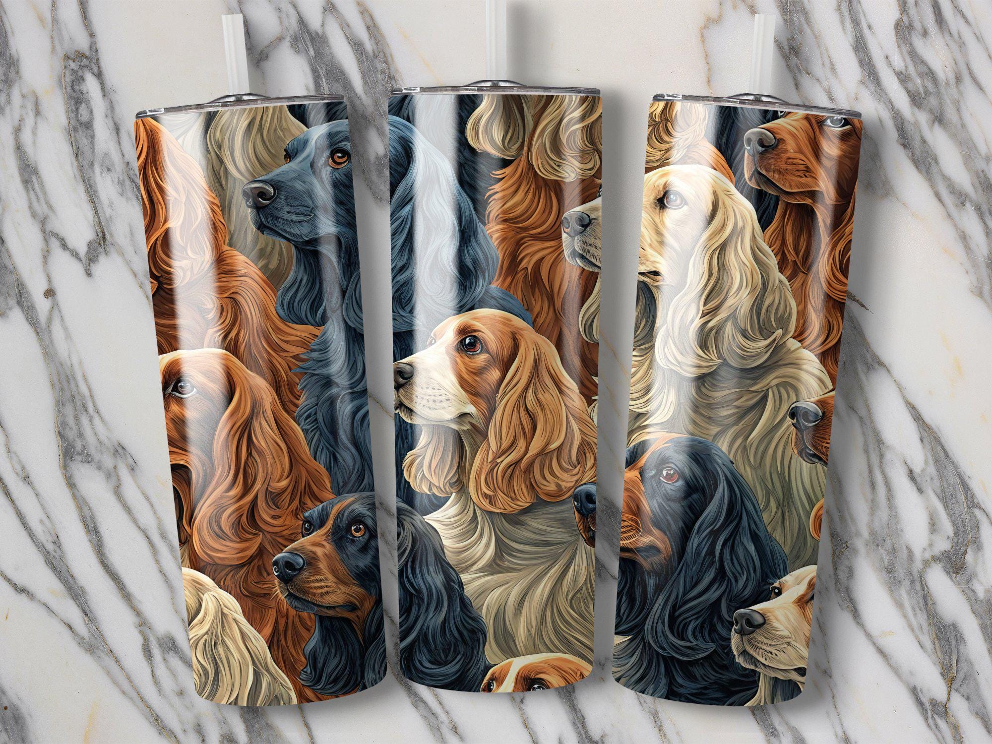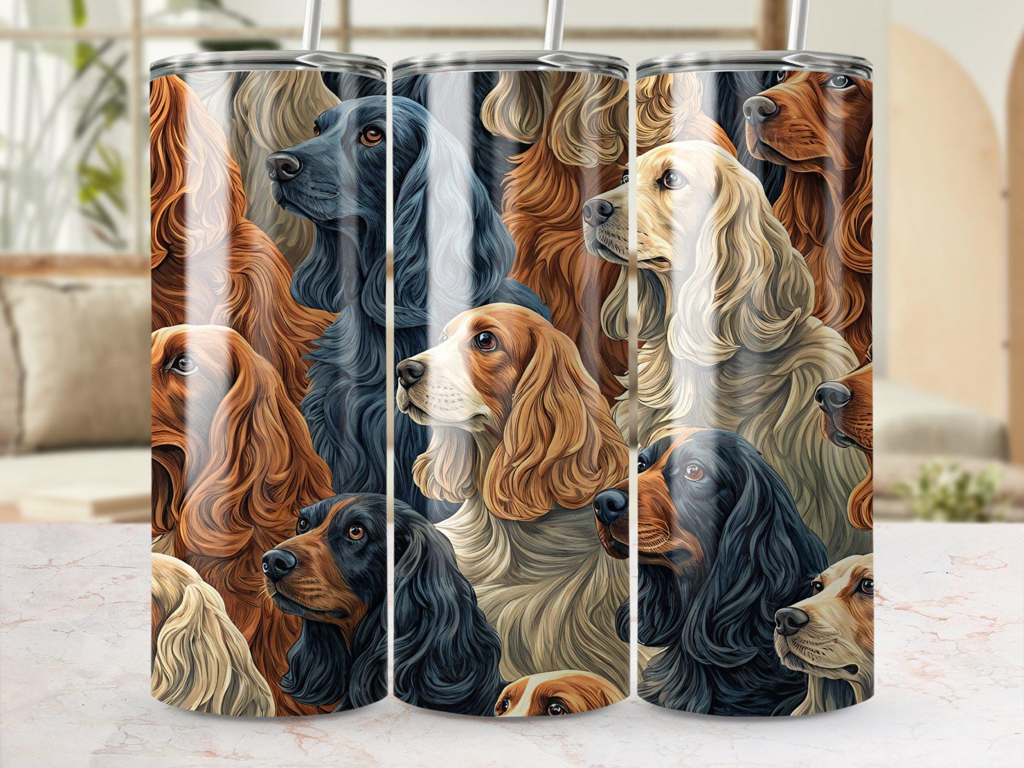 This Cocker Spaniel Tumbler Wrap is perfect for any dog lover! The sublimation design features many Cocker Spaniels of different colors. Create a unique gift or enjoy the tumbler yourself.