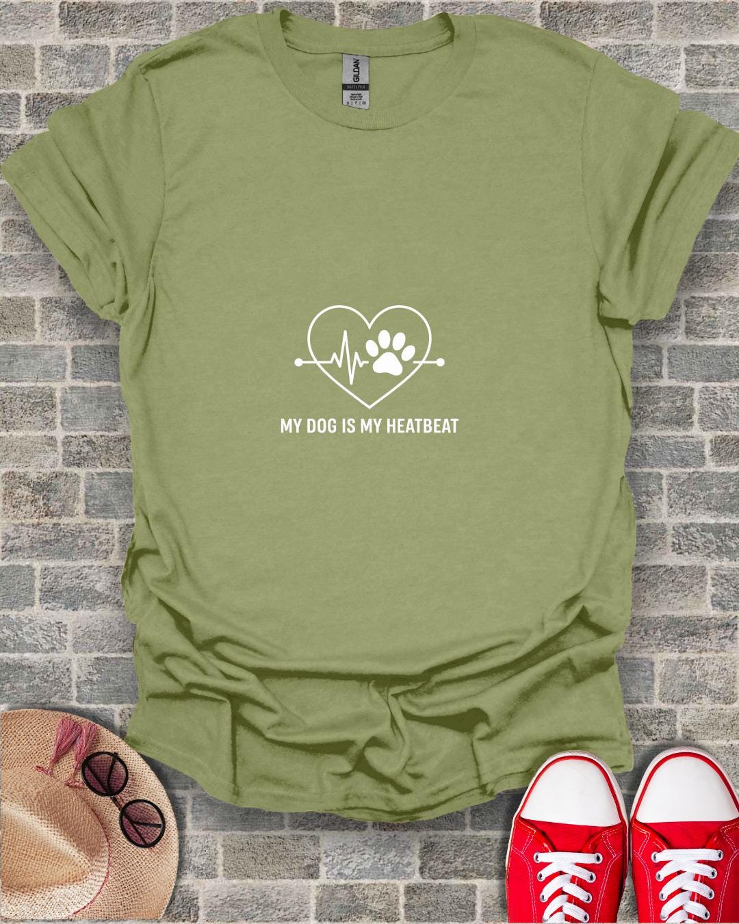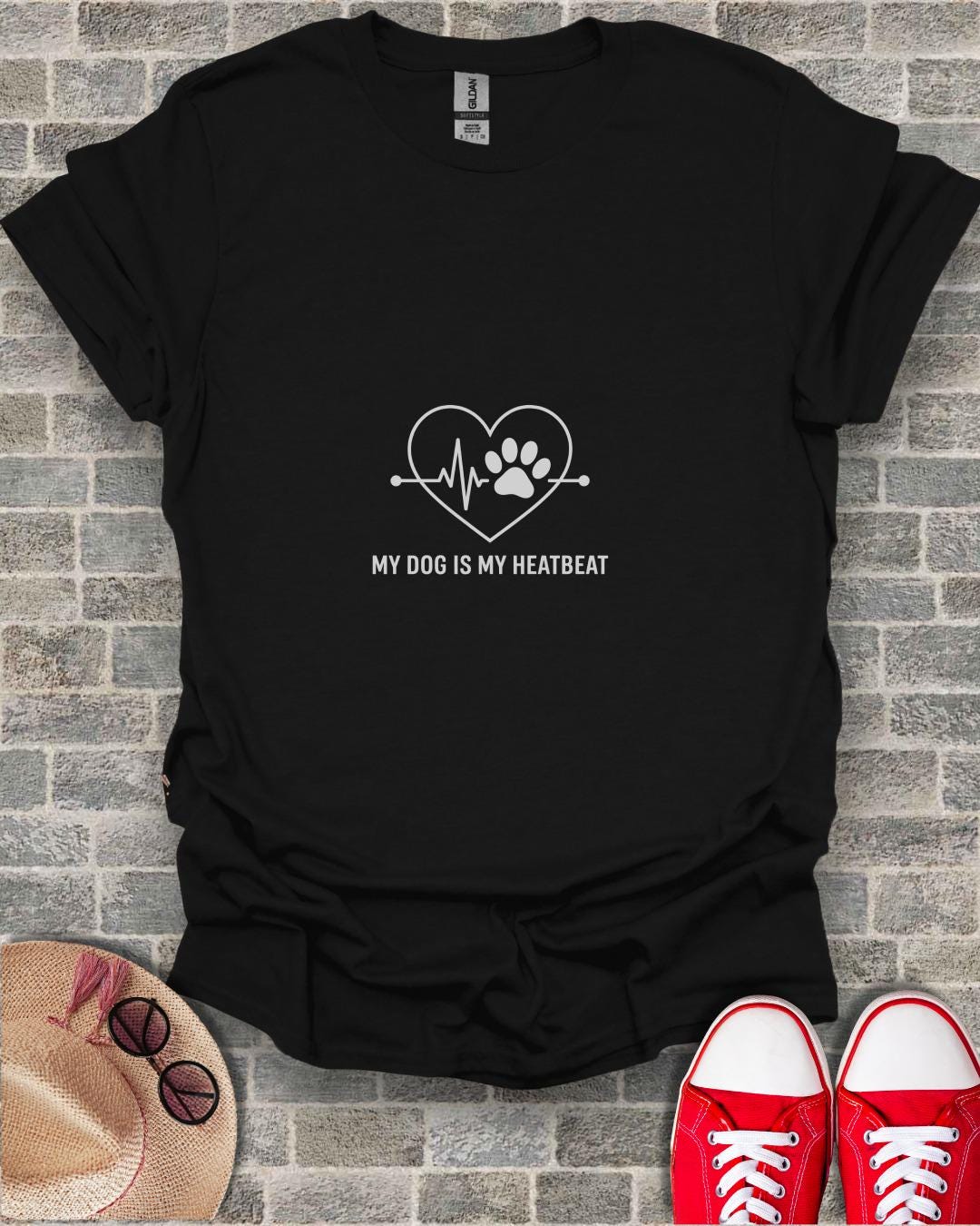 Show off your love for your furry friend with this adorable "My Dog Is My Heartbeat" t-shirt. Perfect for proud dog owners, this shirt features a heart and paw print graphic with a heartbeat line, making it a unique and stylish piece. Great for casual wear, this t-shirt is an excellent gift for any dog mom or dad. Whether you're walking your dog or just hanging out, this shirt is sure to be a hit among dog lovers.