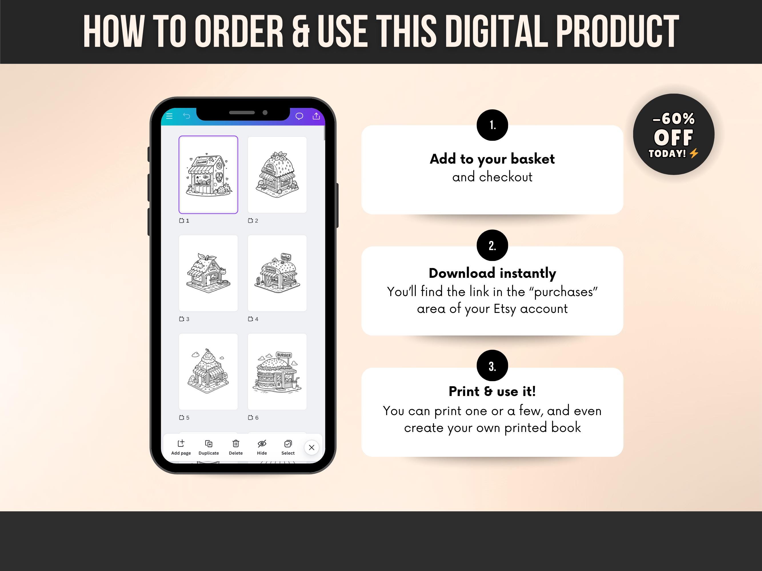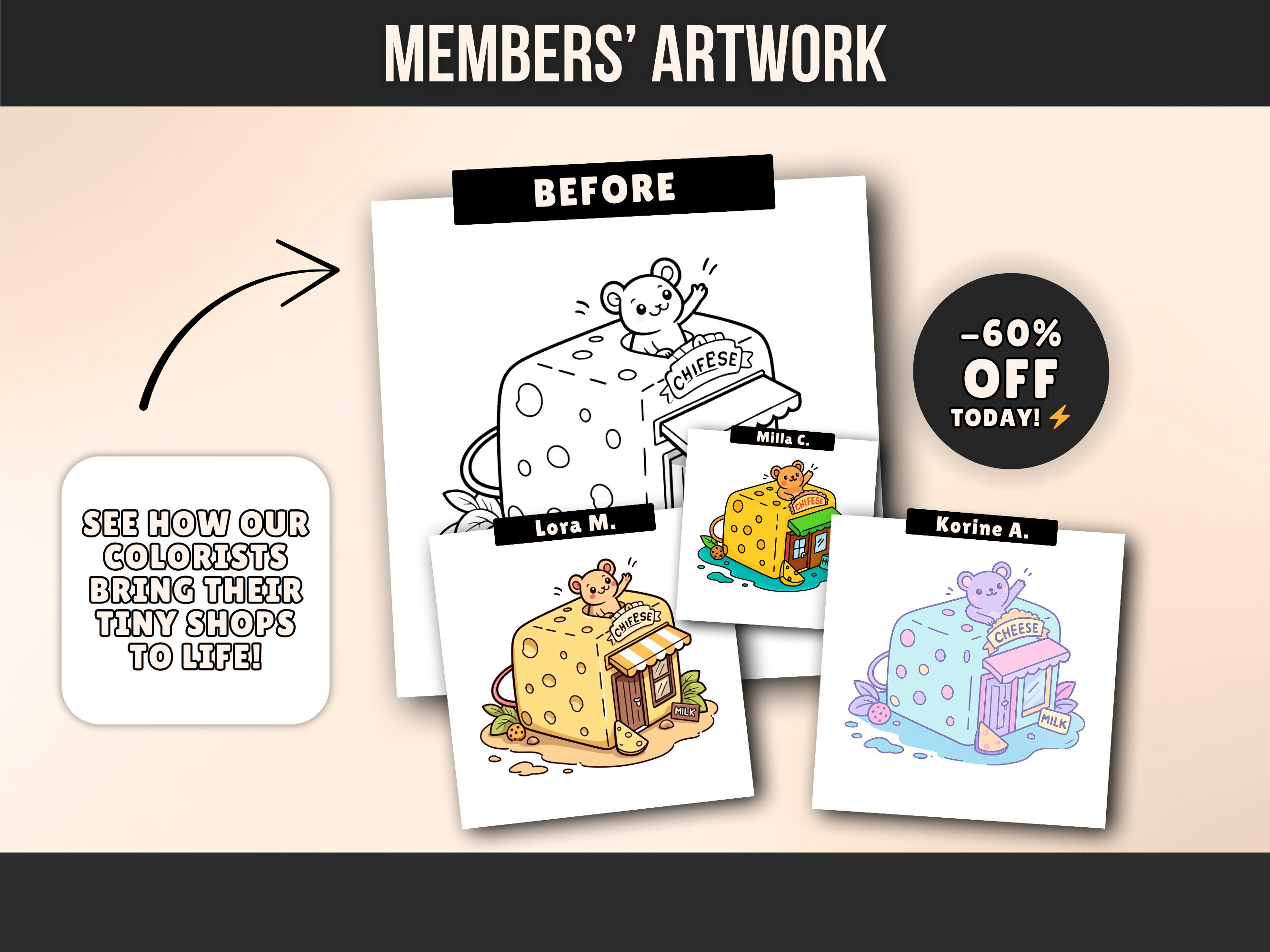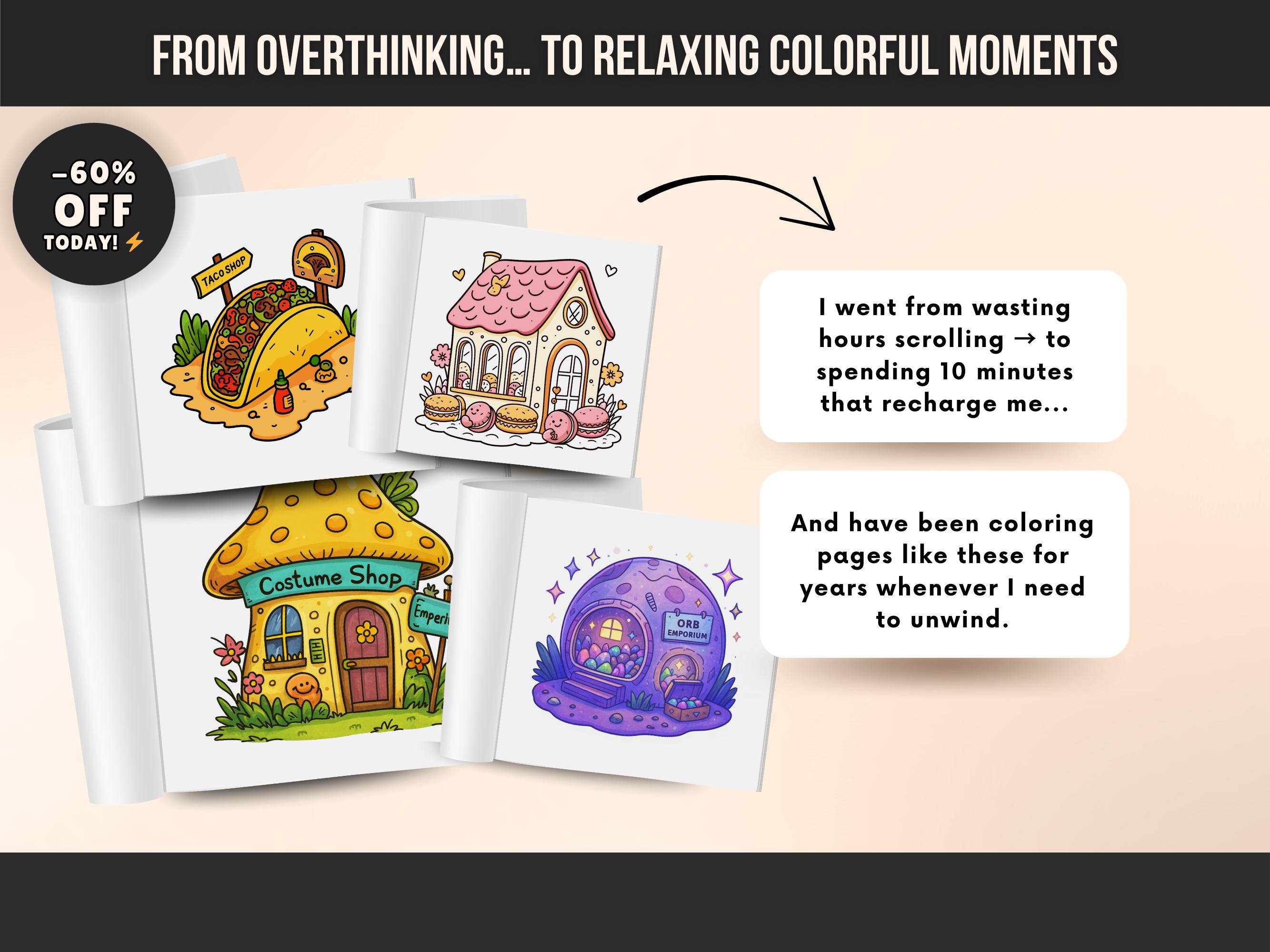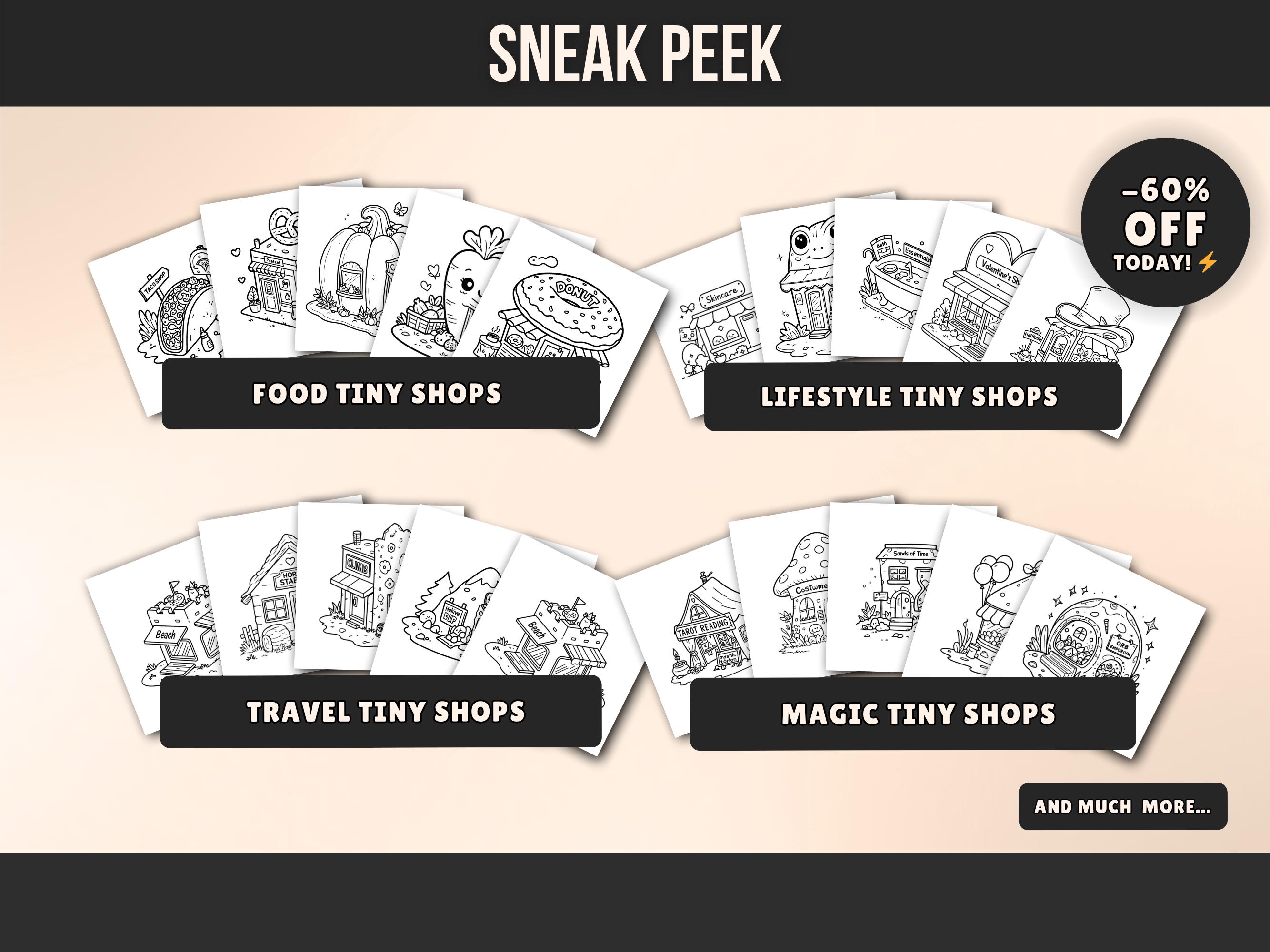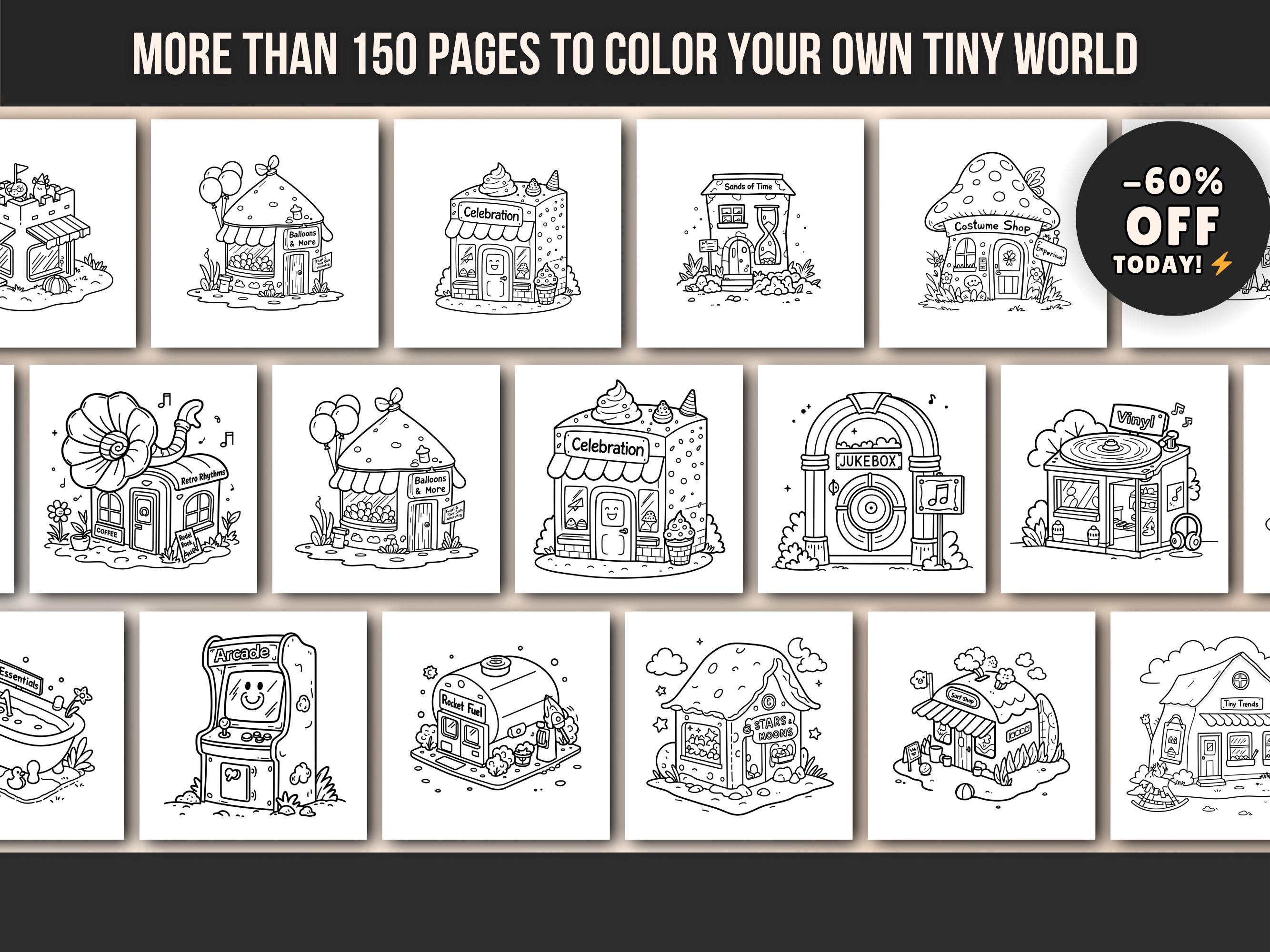 3️⃣ Relax and color your mini masterpiece, turning every tiny shop into your own colorful world.