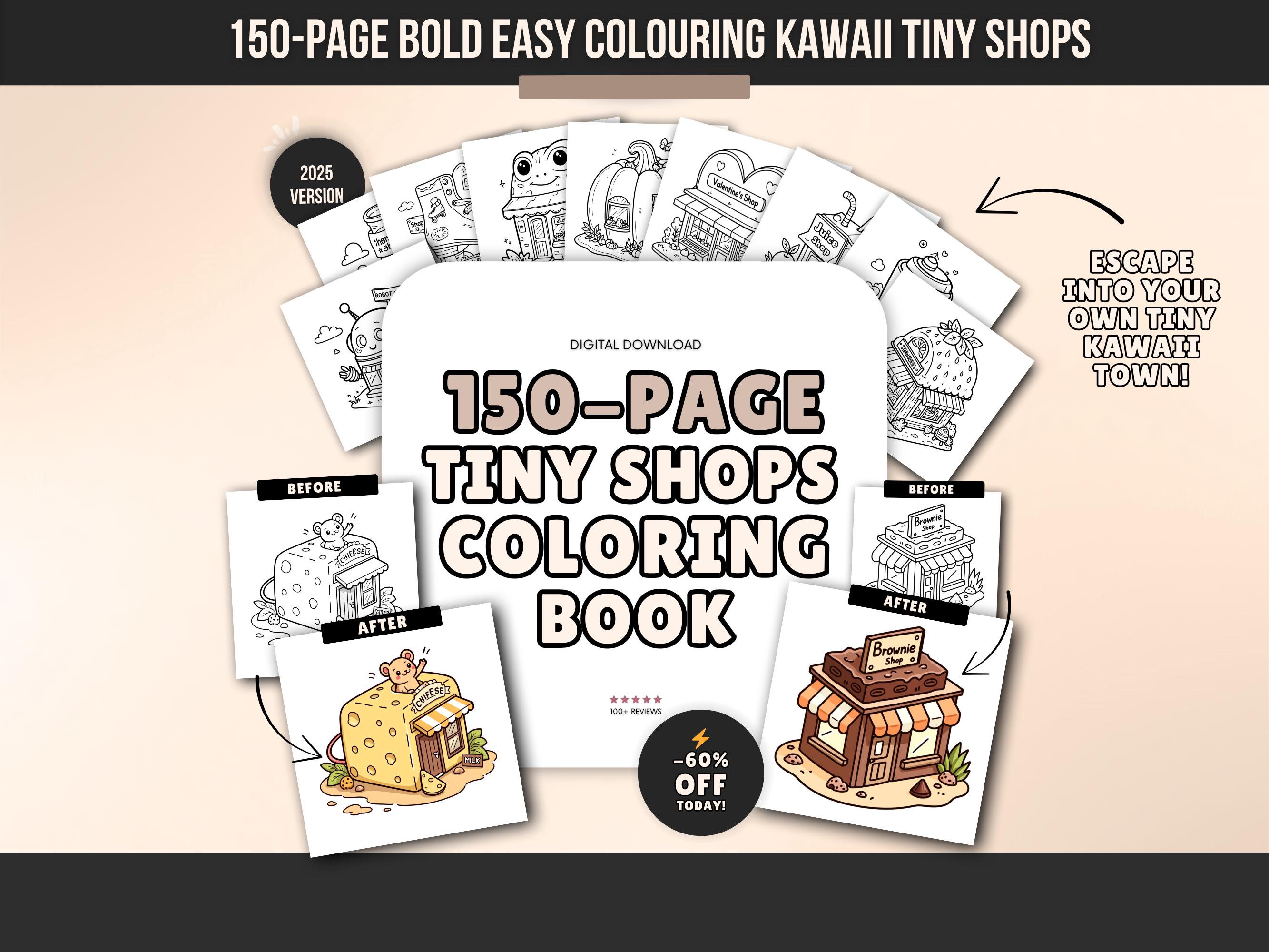 I used to struggle with finding fun, easy-to-color designs for my kids/adult stress relief… until I discovered how much joy a 150-page Tiny Shops Kawaii Coloring Book Printable could bring.