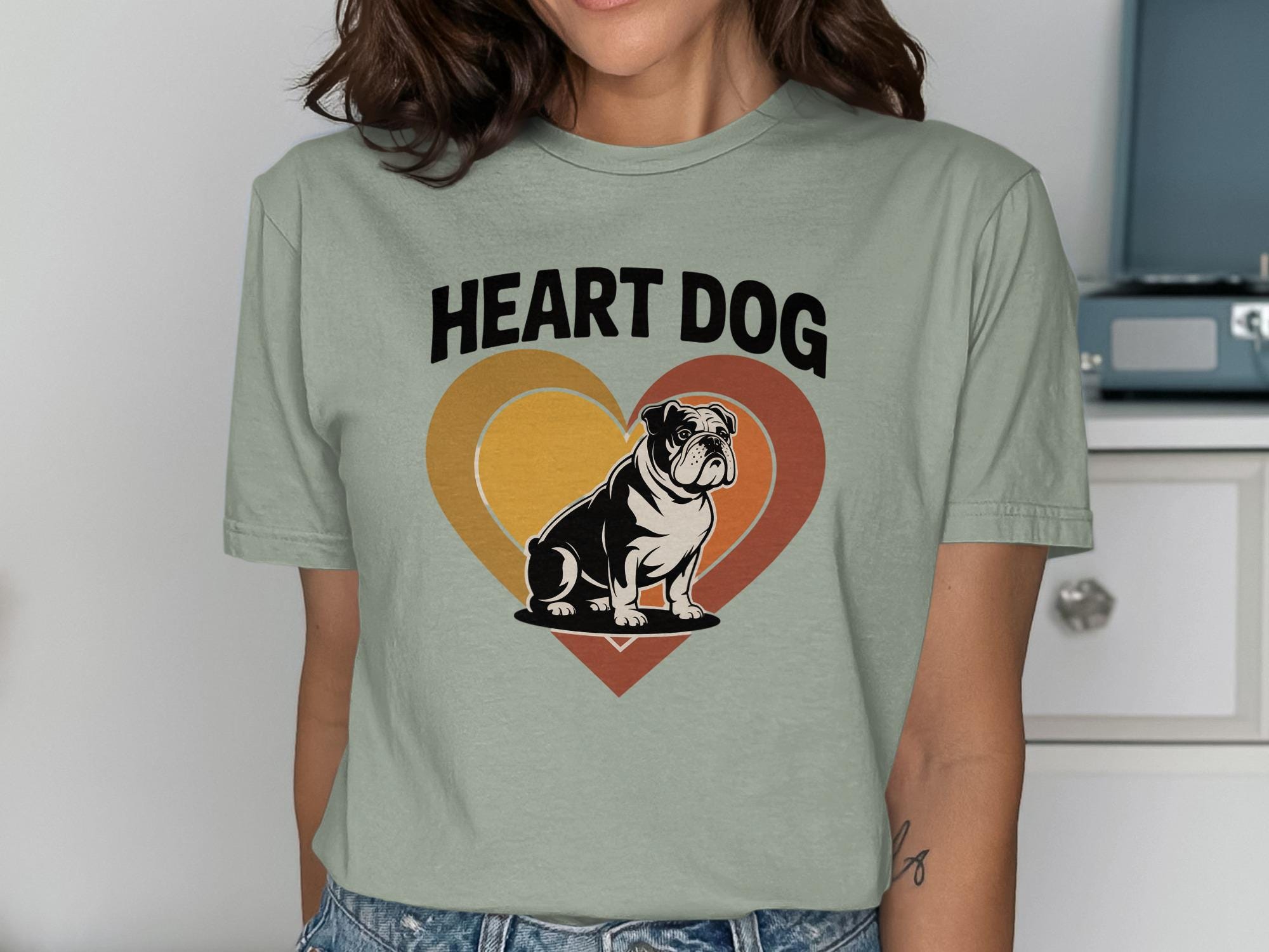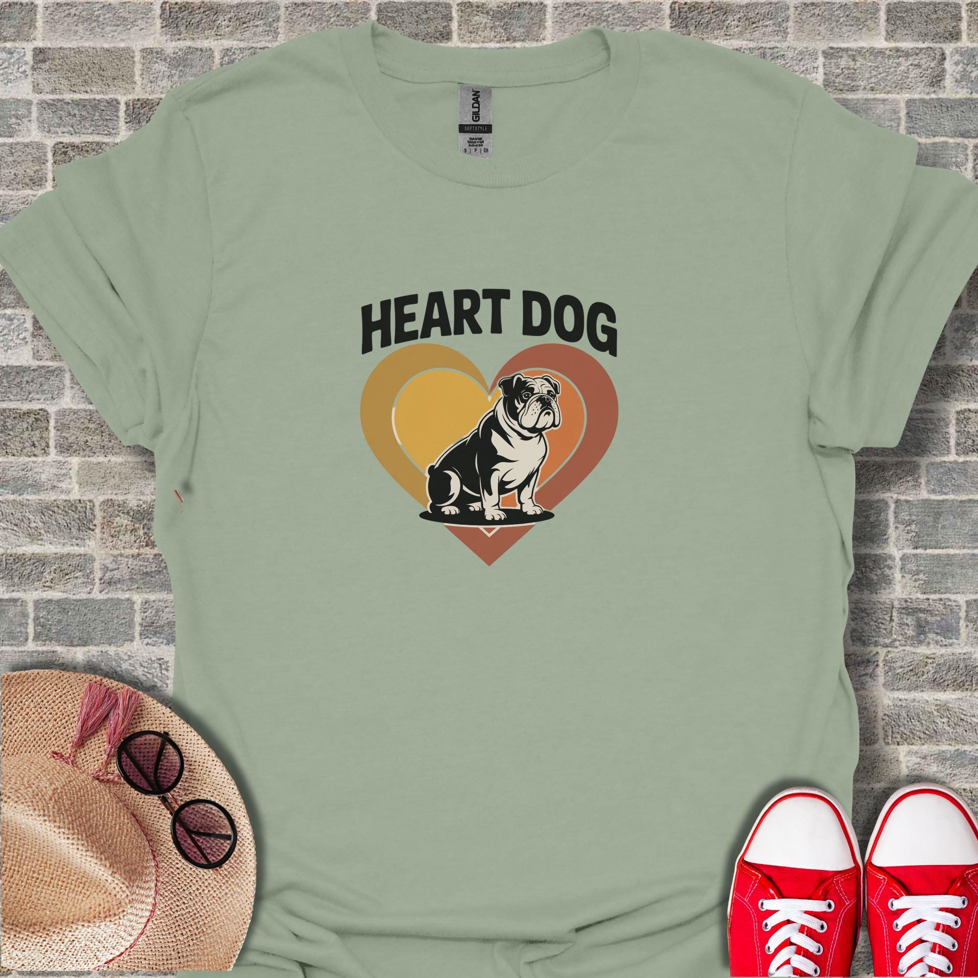 Express your love for dogs with this adorable Heart Dog T-Shirt. This unique design features a charming bulldog nestled inside a heart shape, perfect for dog lovers and pet owners.