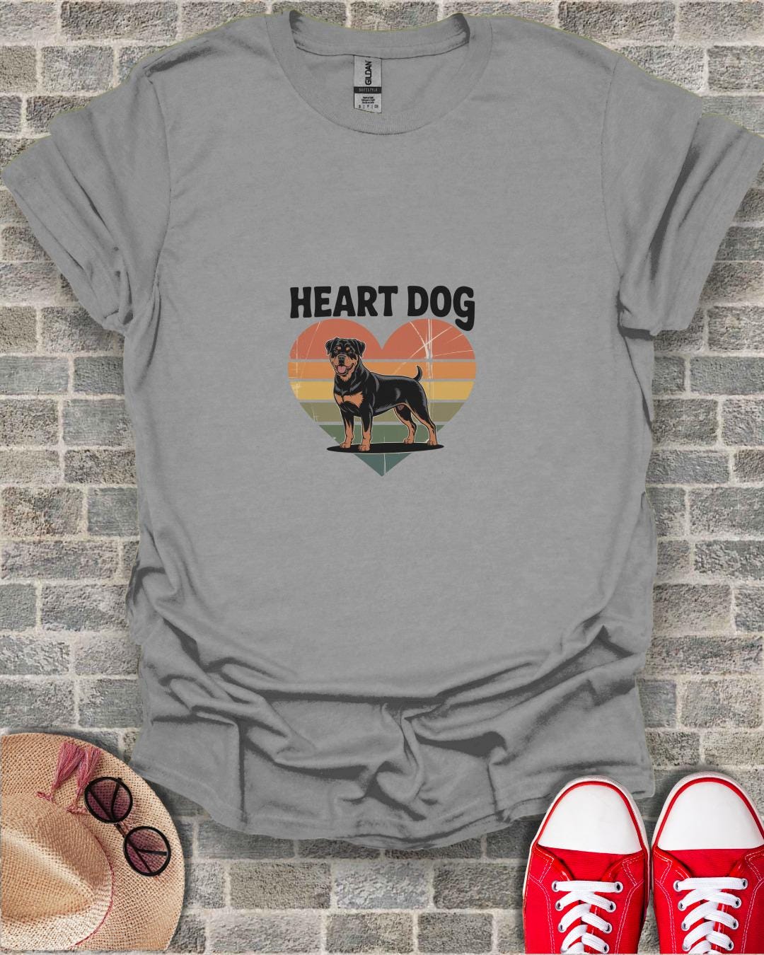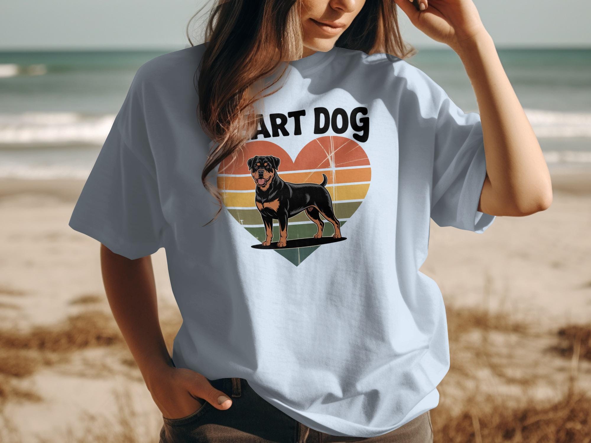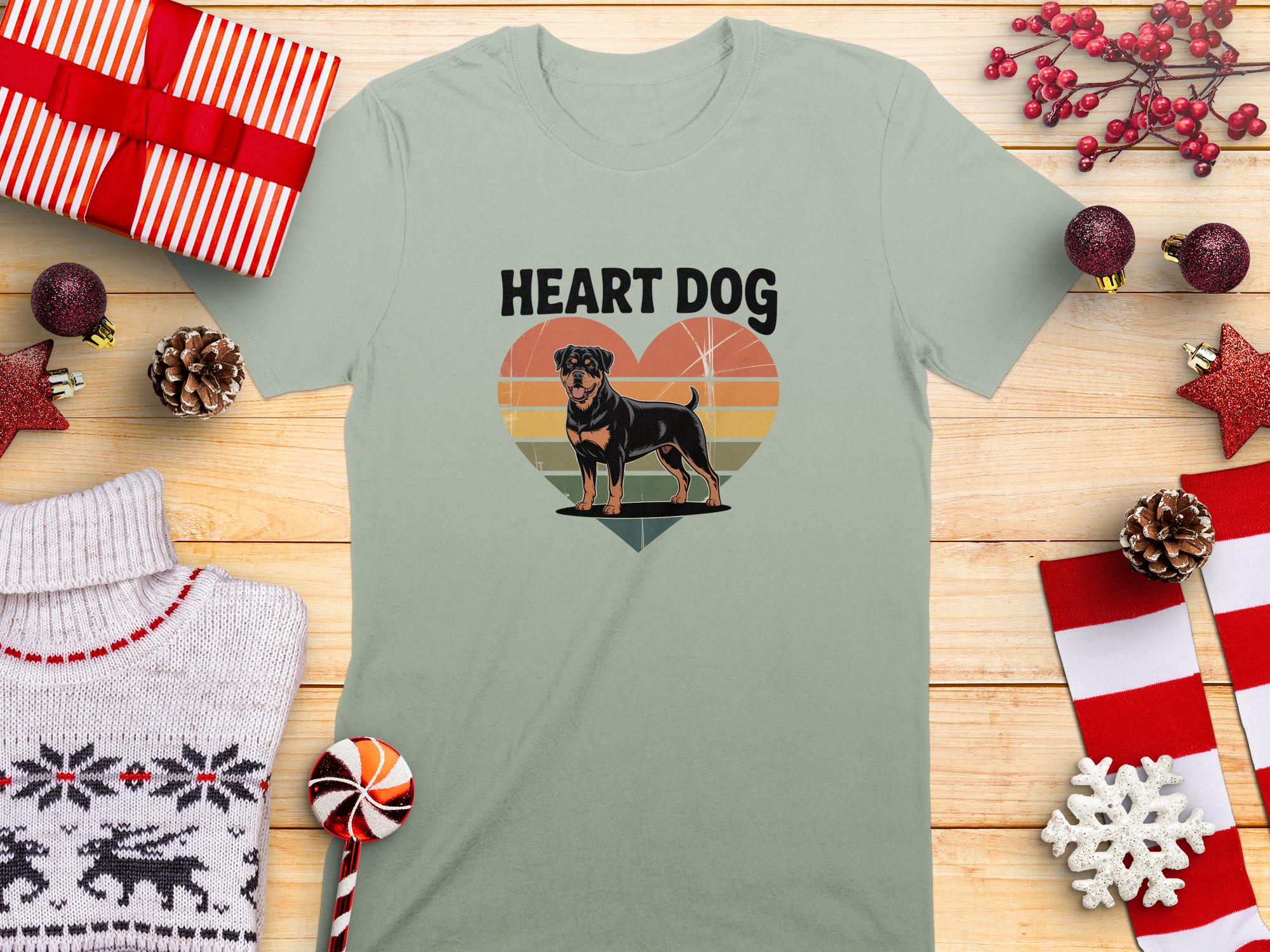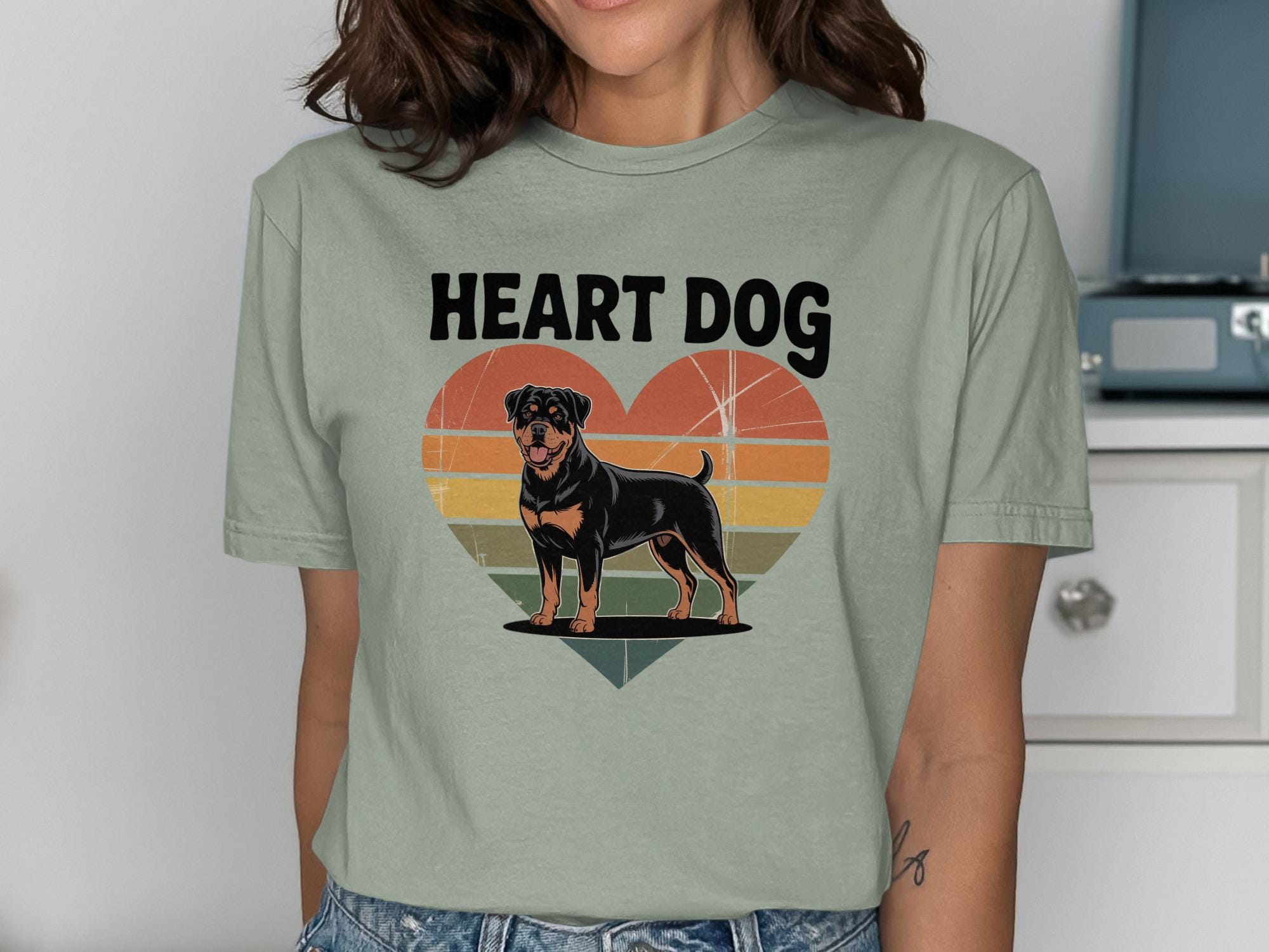 Show your love for Rottweilers with this unique T-shirt. Featuring a charming Rottweiler design set against a retro heart backdrop, this tee is a must-have for any Rottweiler enthusiast. Perfect as a gift for dog moms, dog dads, or anyone who adores this loyal breed.