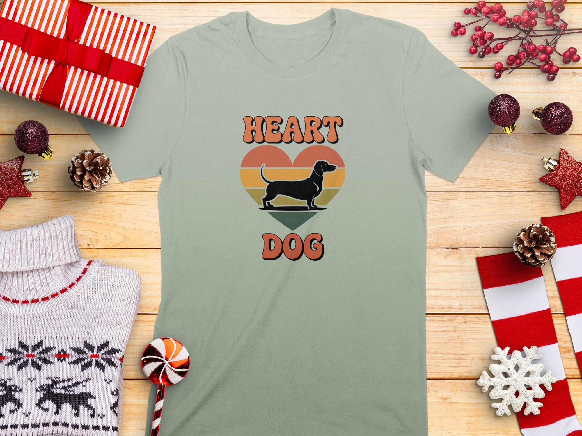 The design showcases the words "HEART DOG" in a playful, vintage font.