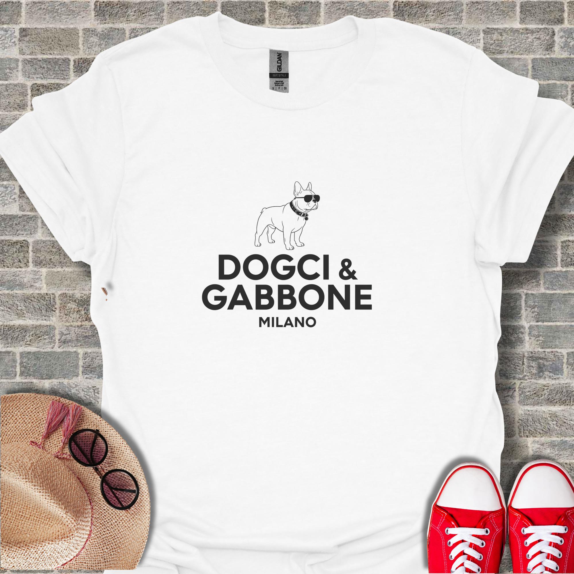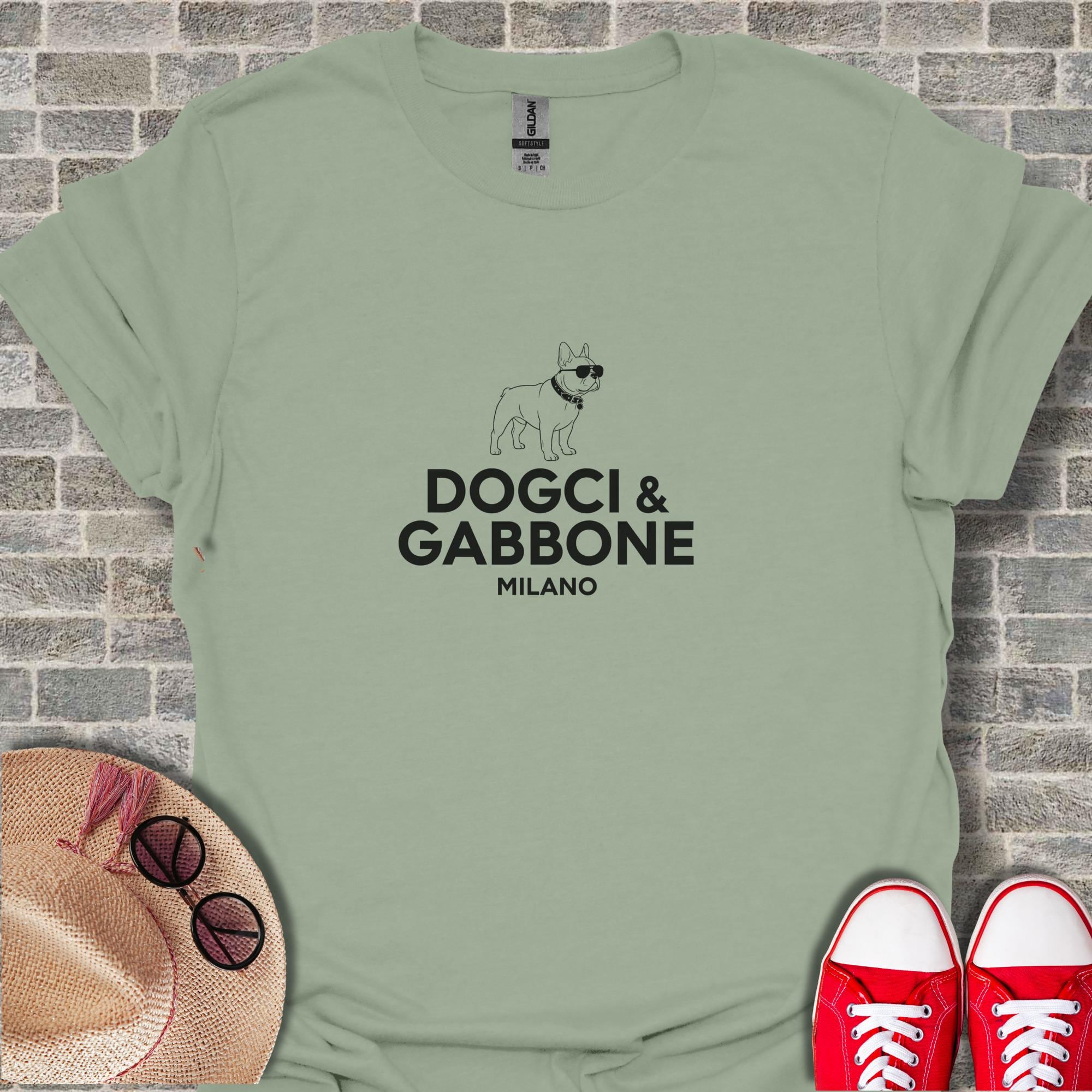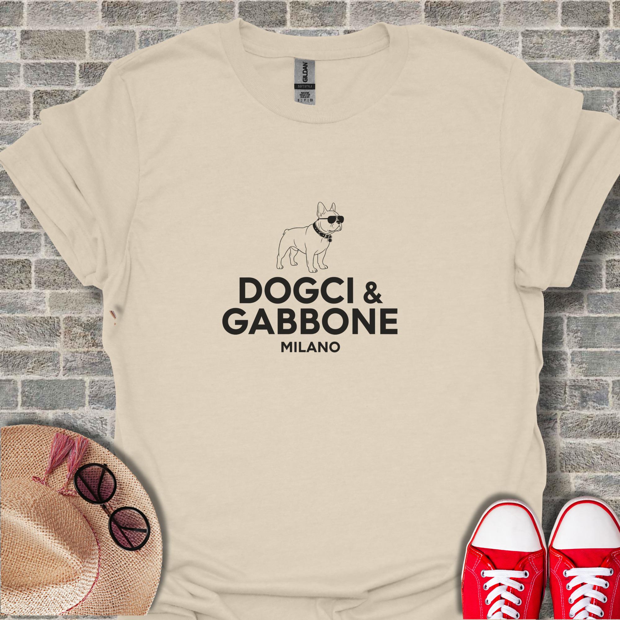 • Eye-catching graphic featuring a French Bulldog wearing sunglasses with "DOGCI and GABBBONE MILANO" text