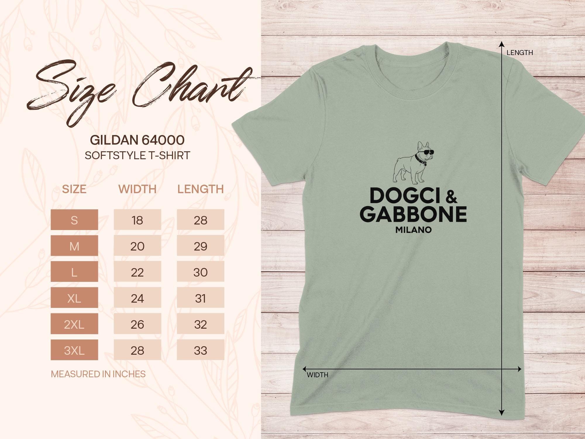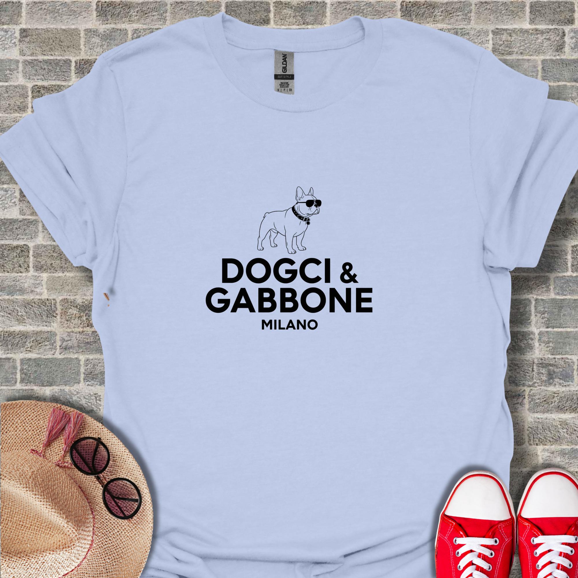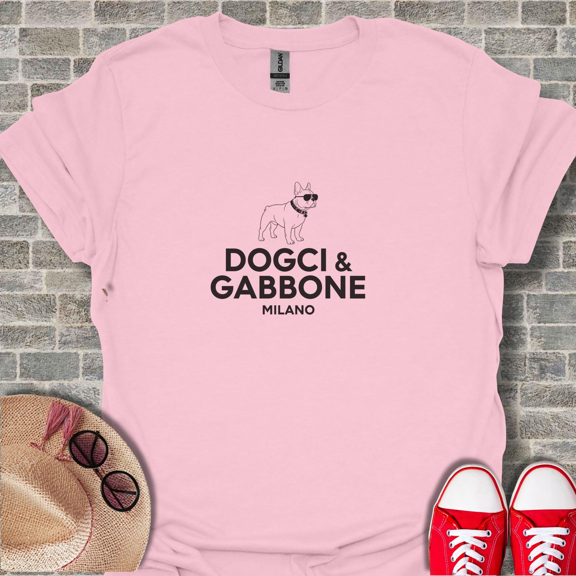 • Eye-catching graphic featuring a French Bulldog wearing sunglasses with "DOGCI and GABBBONE MILANO" text