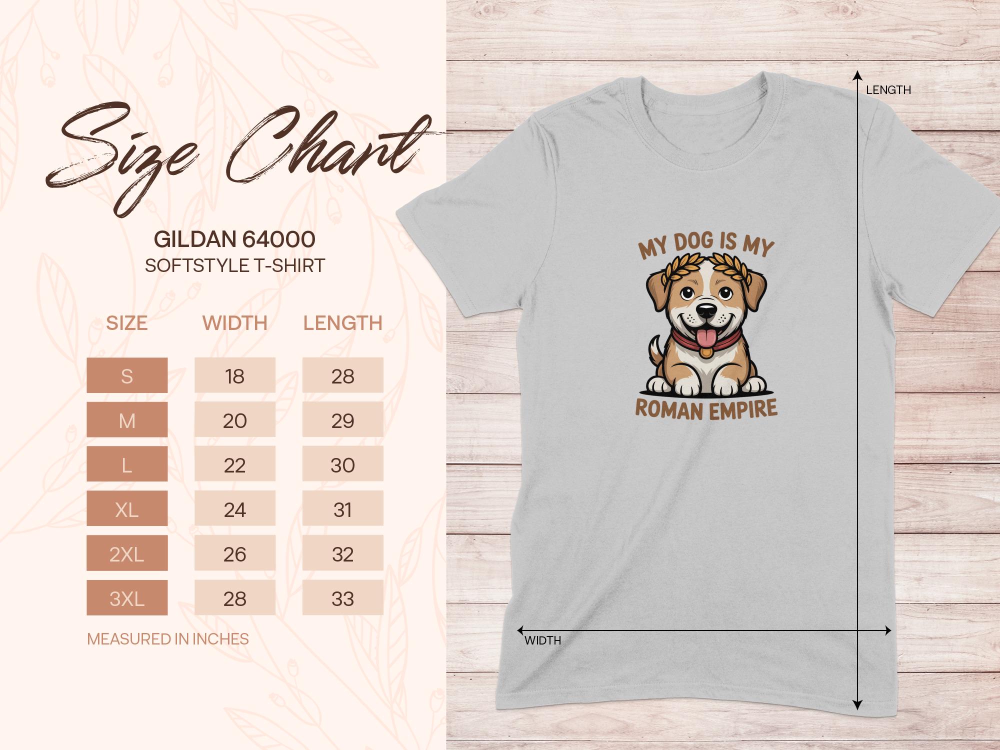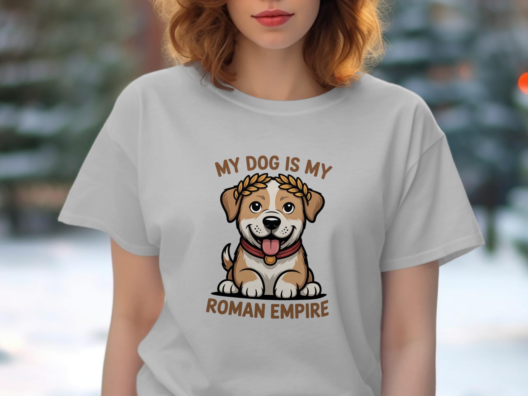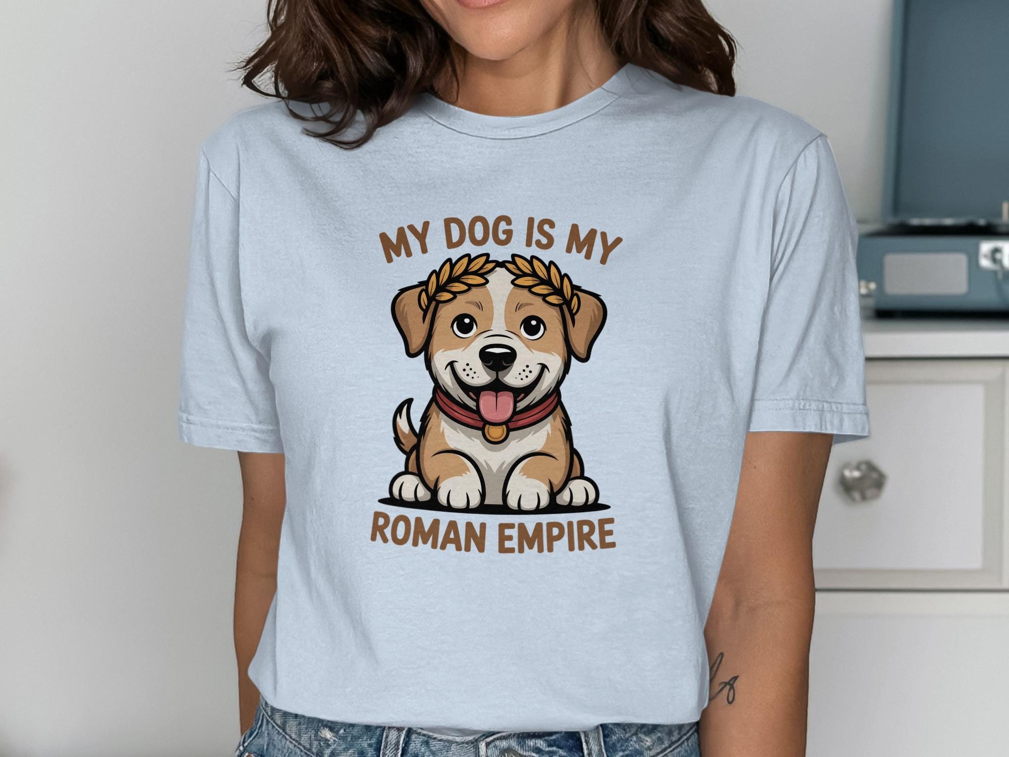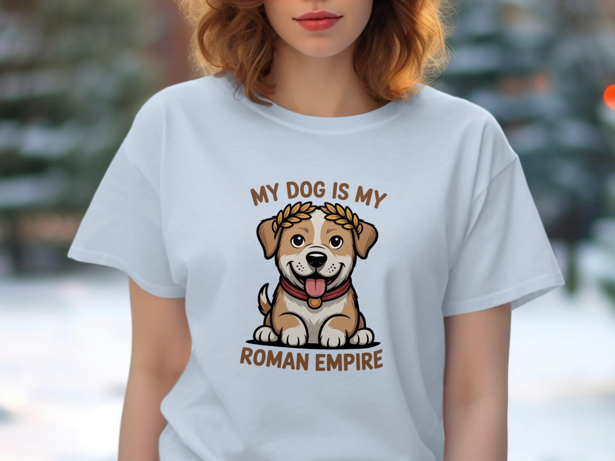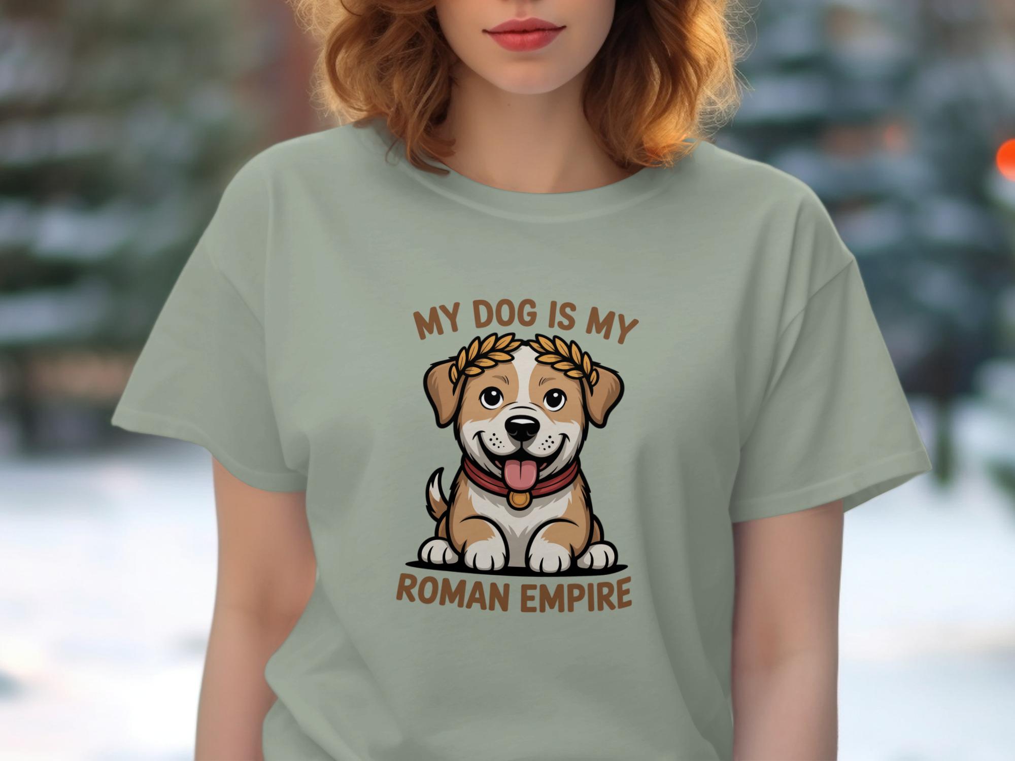 This T-Shirt features a cute dog wearing a laurel crown, accompanied by the phrase "My Dog is My Roman Empire". It's the perfect gift for dog lovers who find joy and comfort in their furry friends. This trendy T-Shirt is sure to bring a smile to anyone's face.