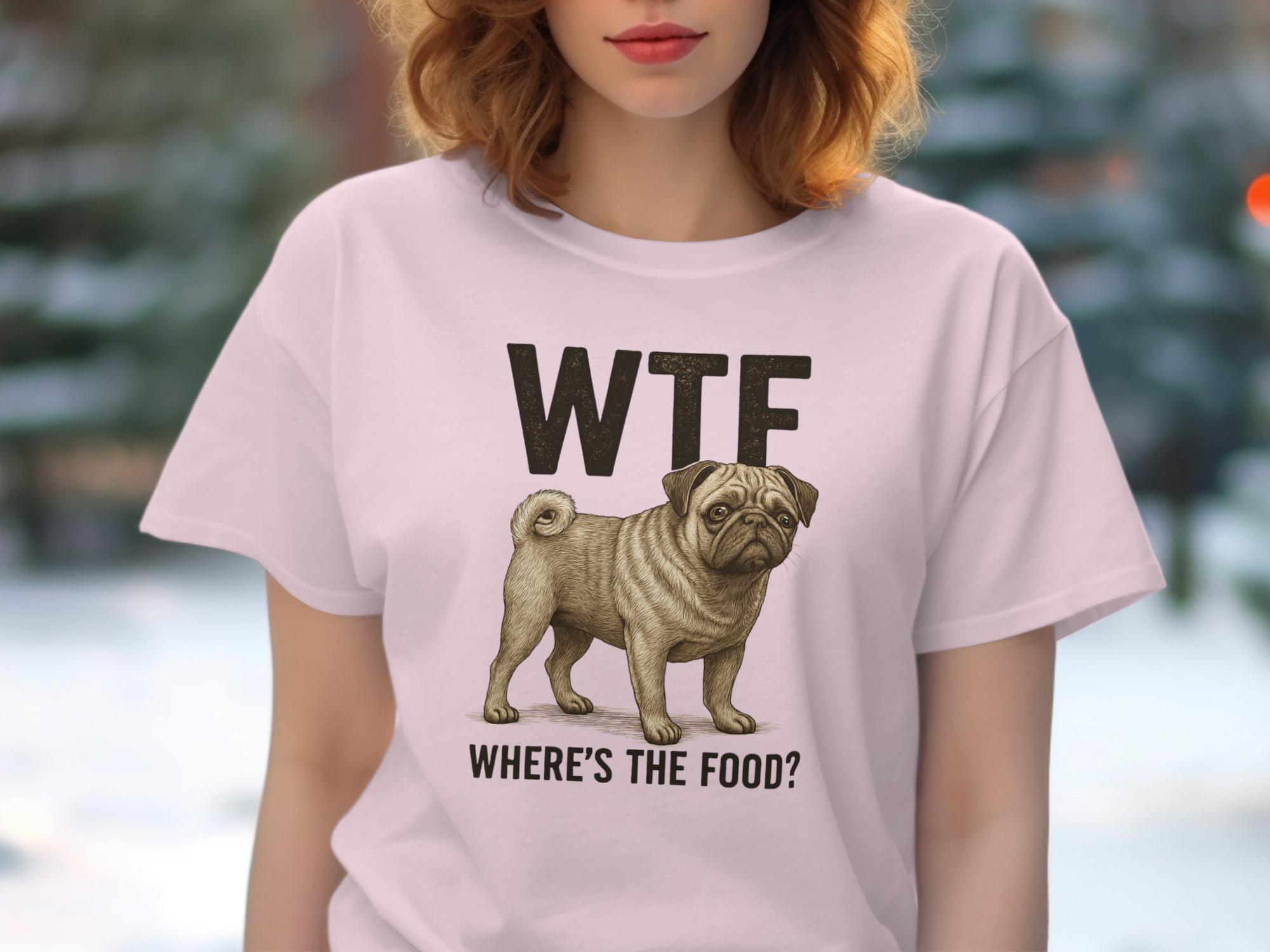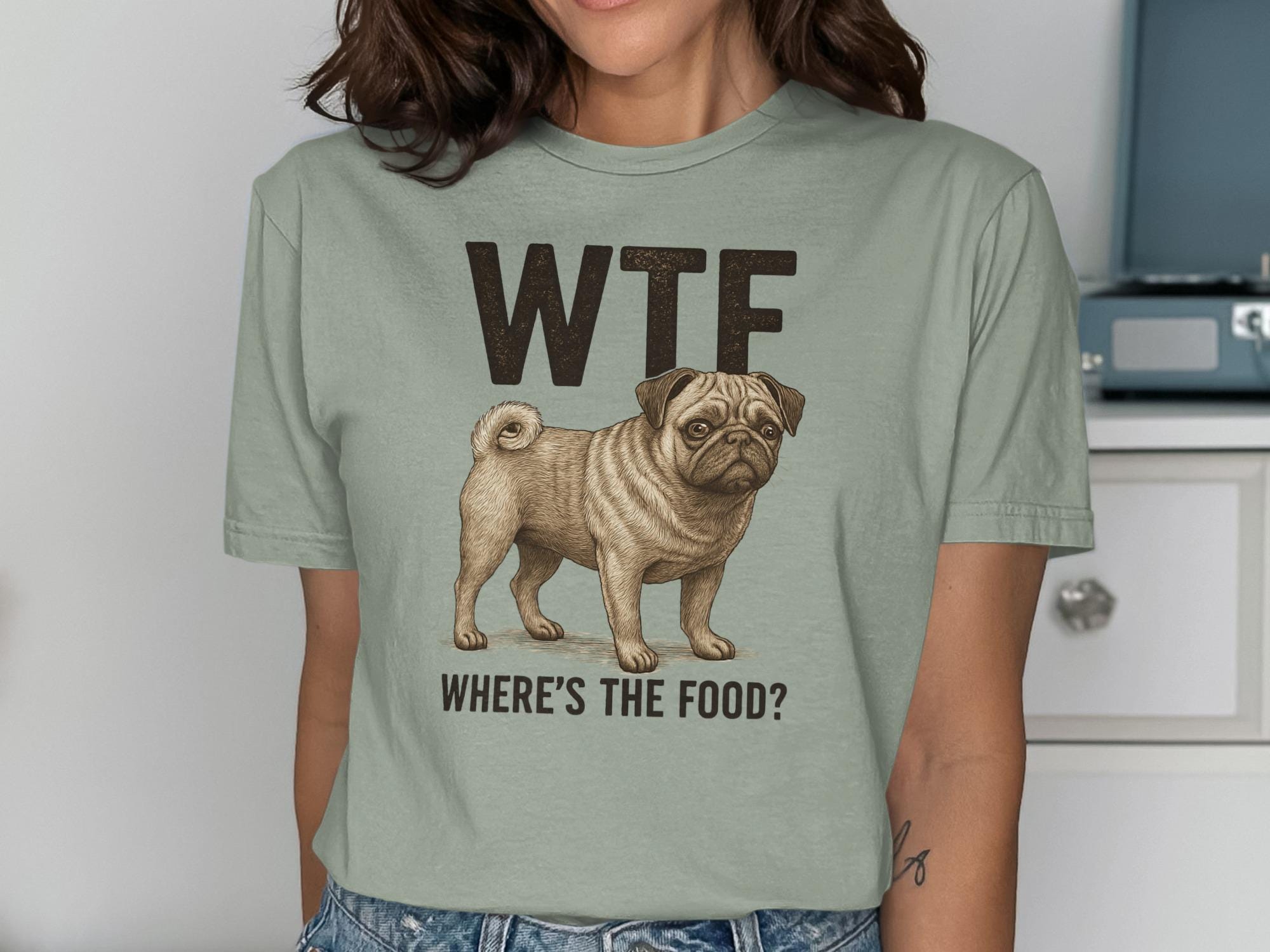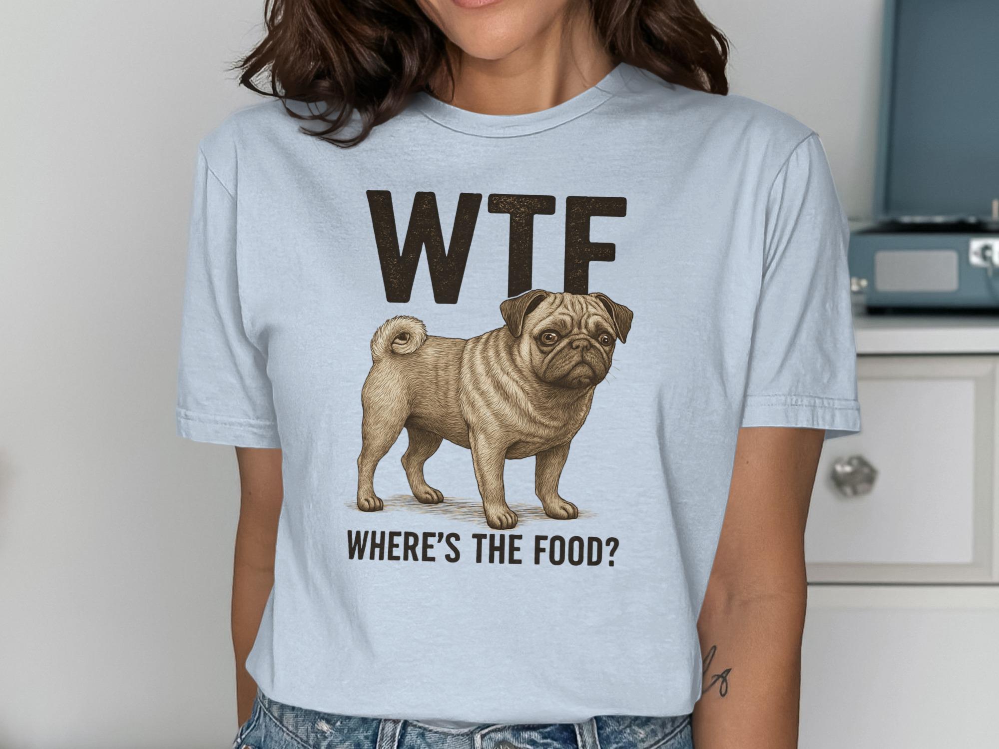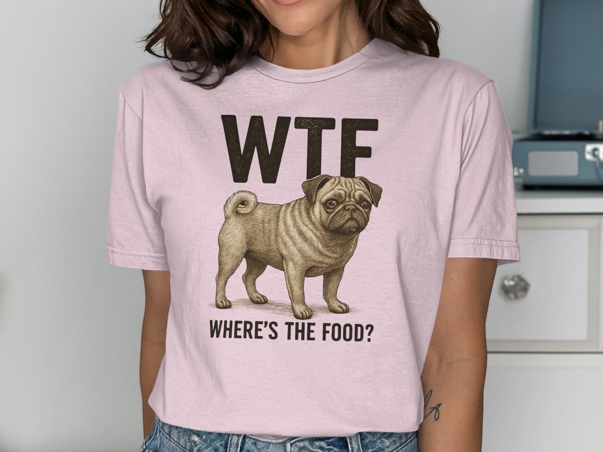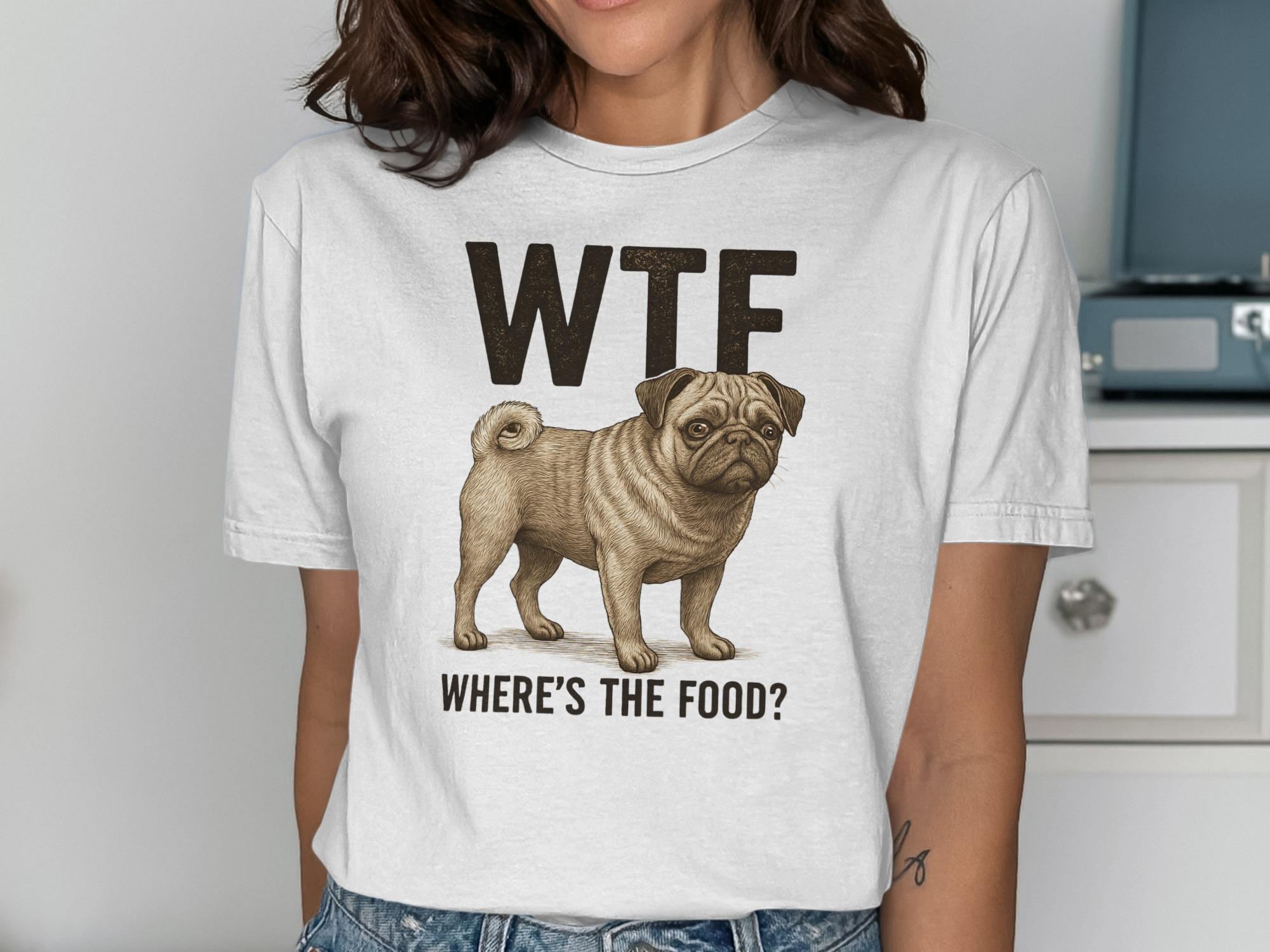 This T-shirt features a charming pug illustration paired with a humorous message. This design is perfect for pug owners, dog lovers, or anyone who appreciates a good laugh. The design is printed with high quality resolution making the pug design a standout piece.