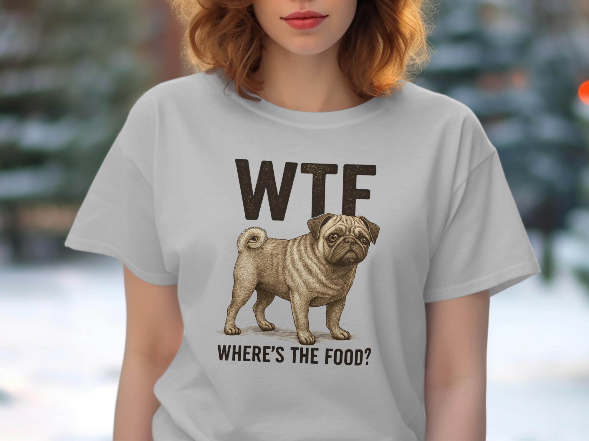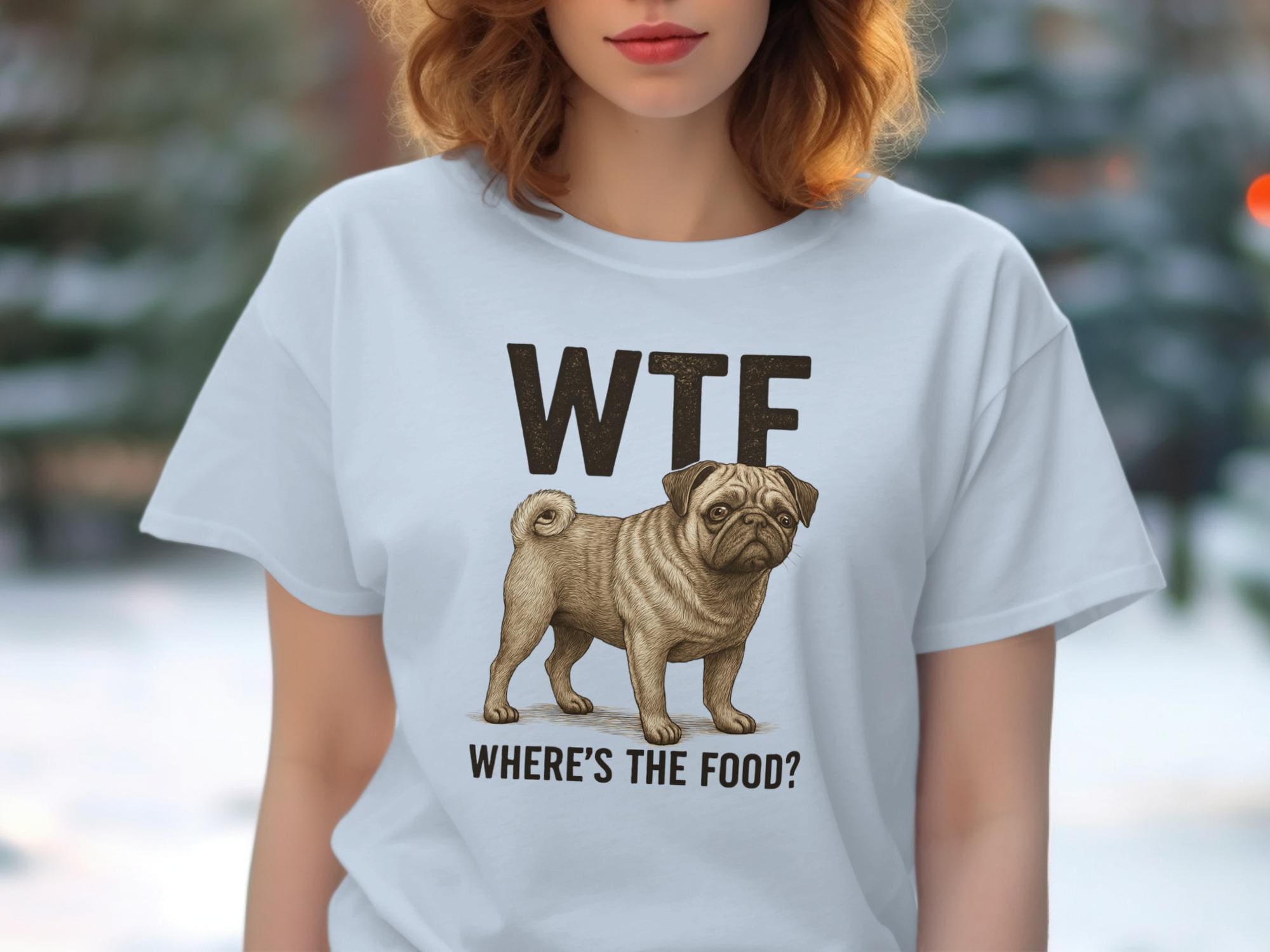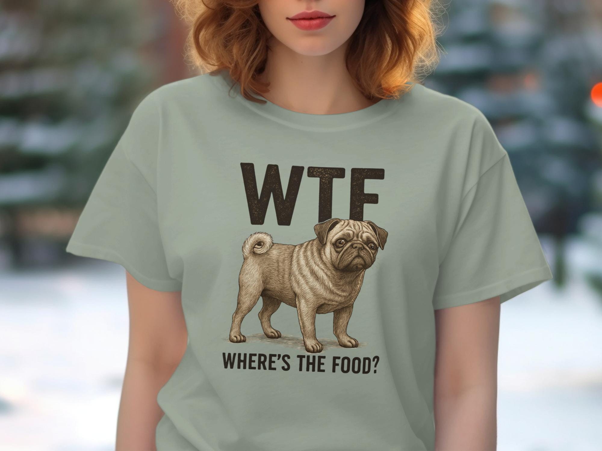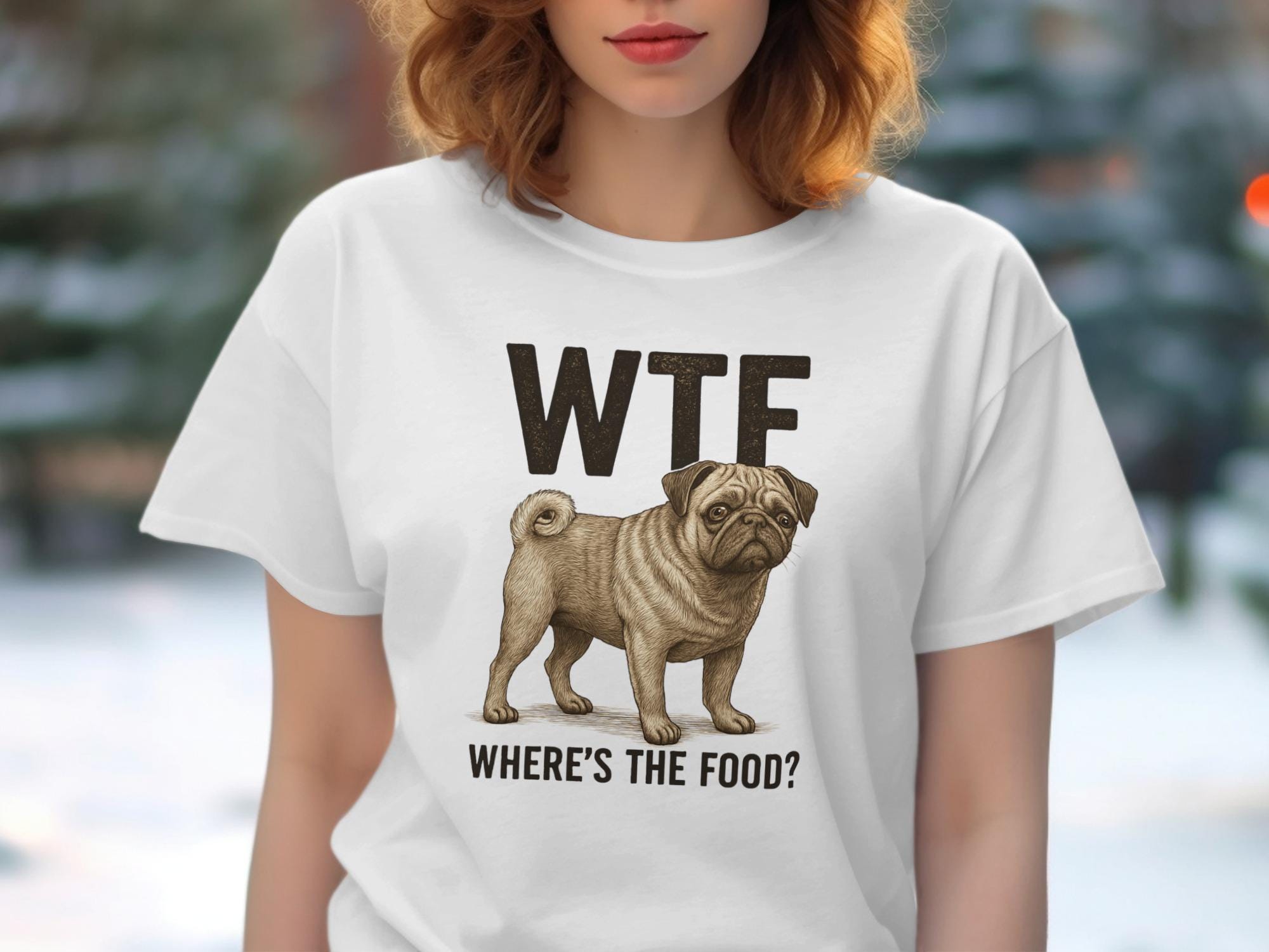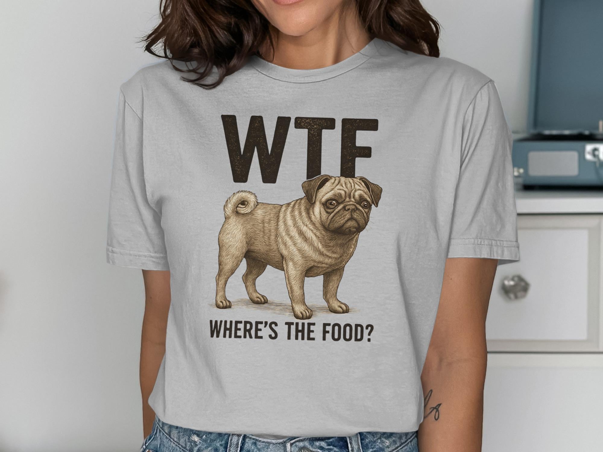 This T-shirt features a charming pug illustration paired with a humorous message. This design is perfect for pug owners, dog lovers, or anyone who appreciates a good laugh. The design is printed with high quality resolution making the pug design a standout piece.