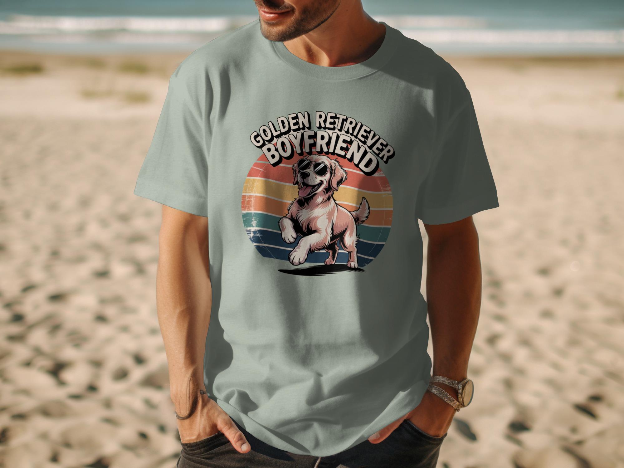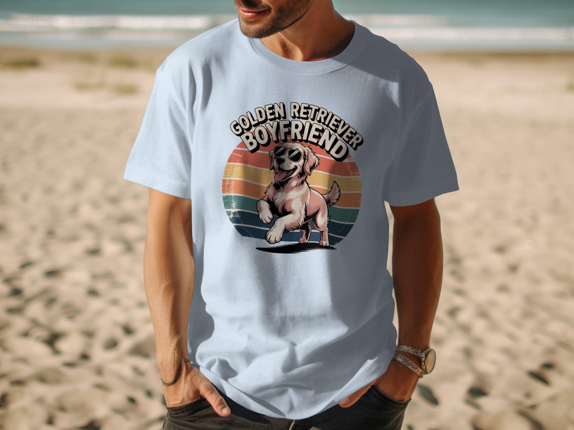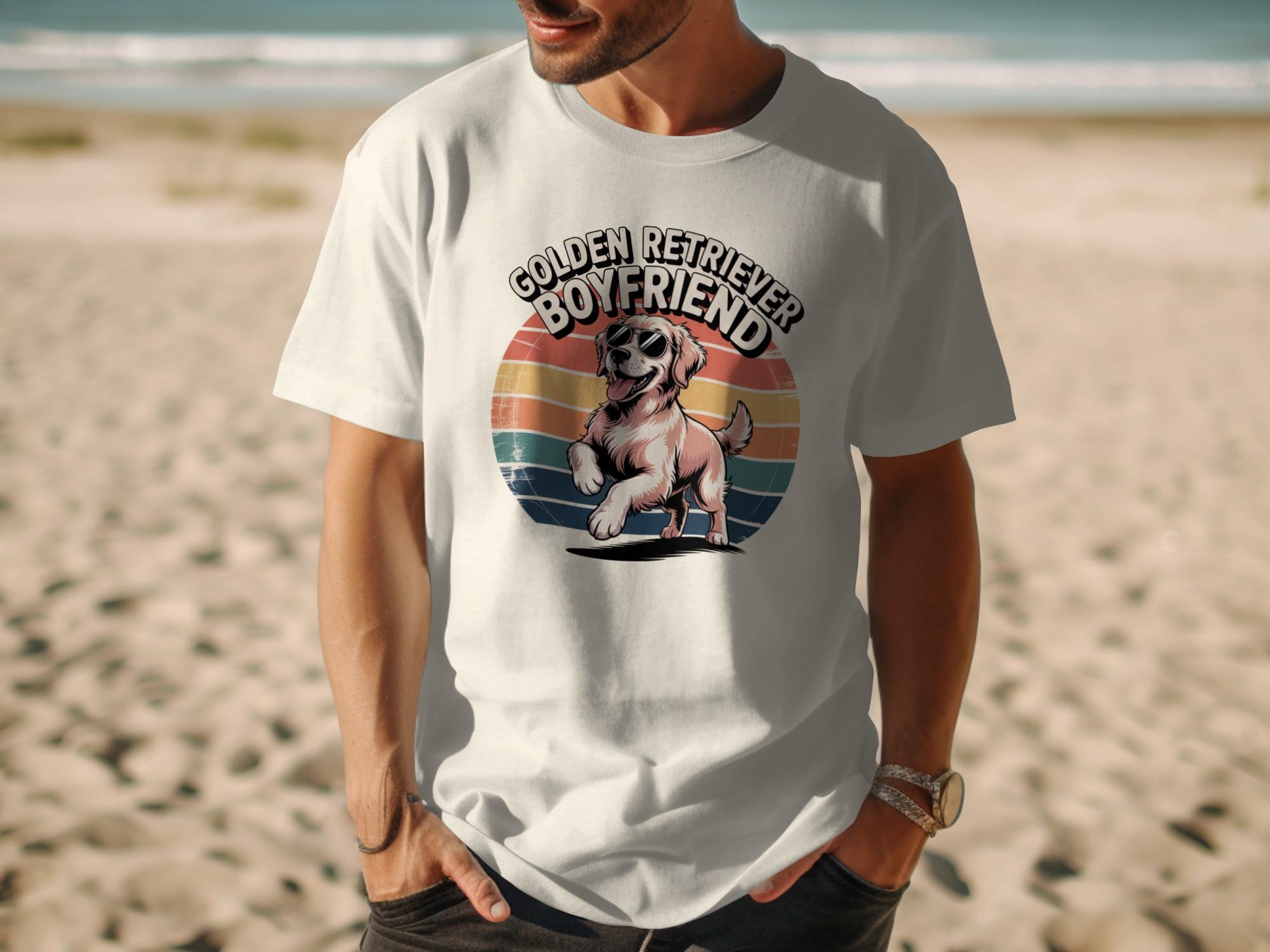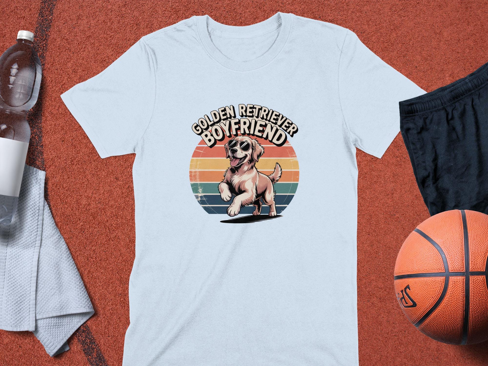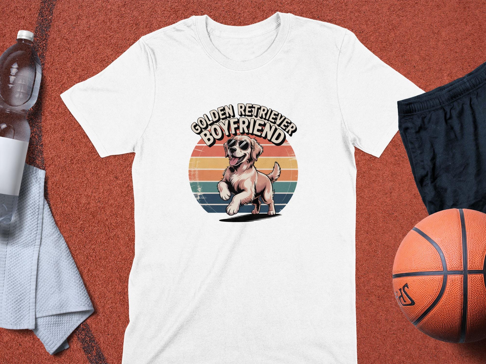 Show off your love for your furry best friend with this adorable Golden Retriever T-Shirts design! Featuring a cool Golden Retriever wearing sunglasses in front of a retro sunset, this is the perfect shirt for any dog lover.