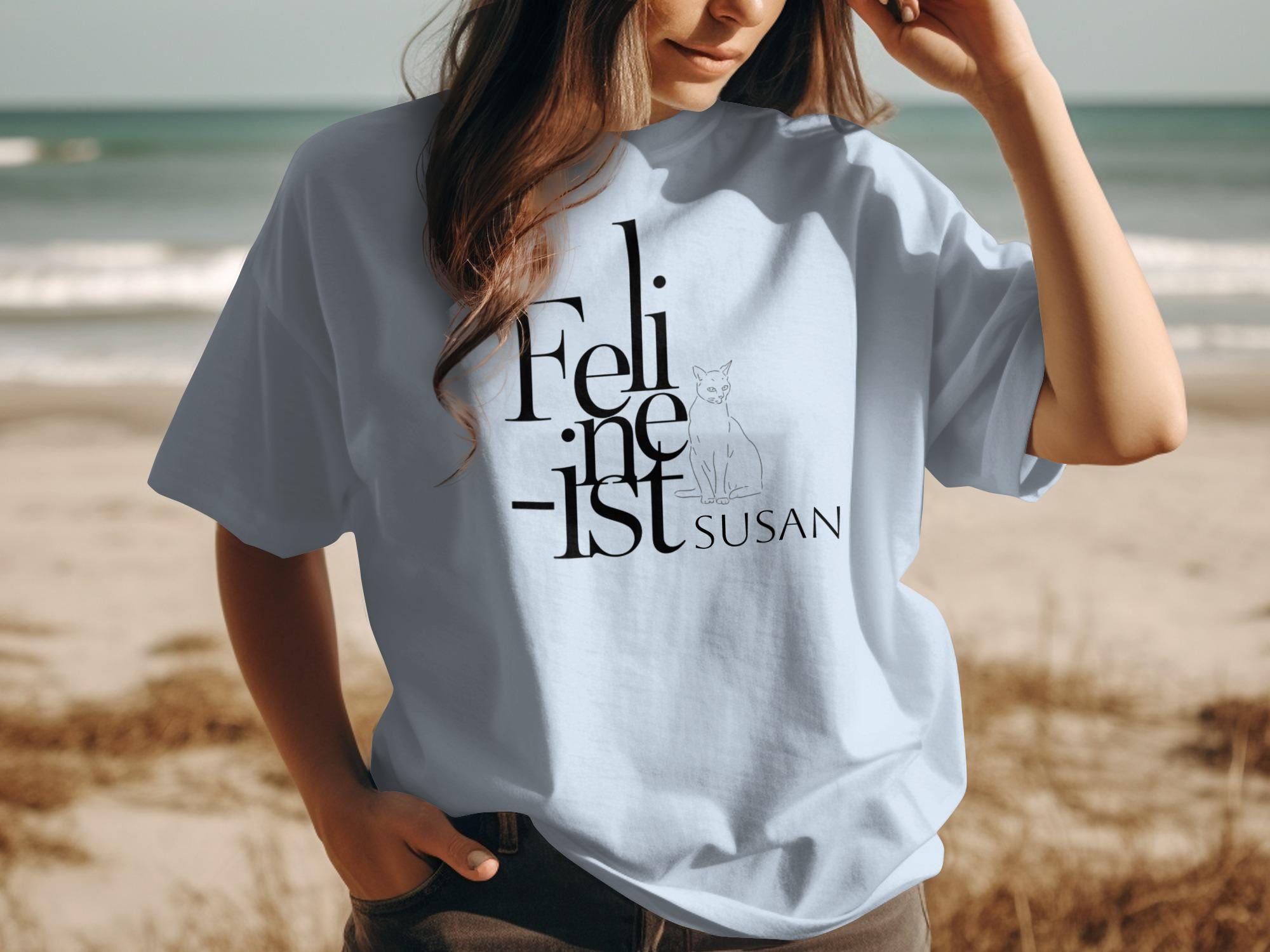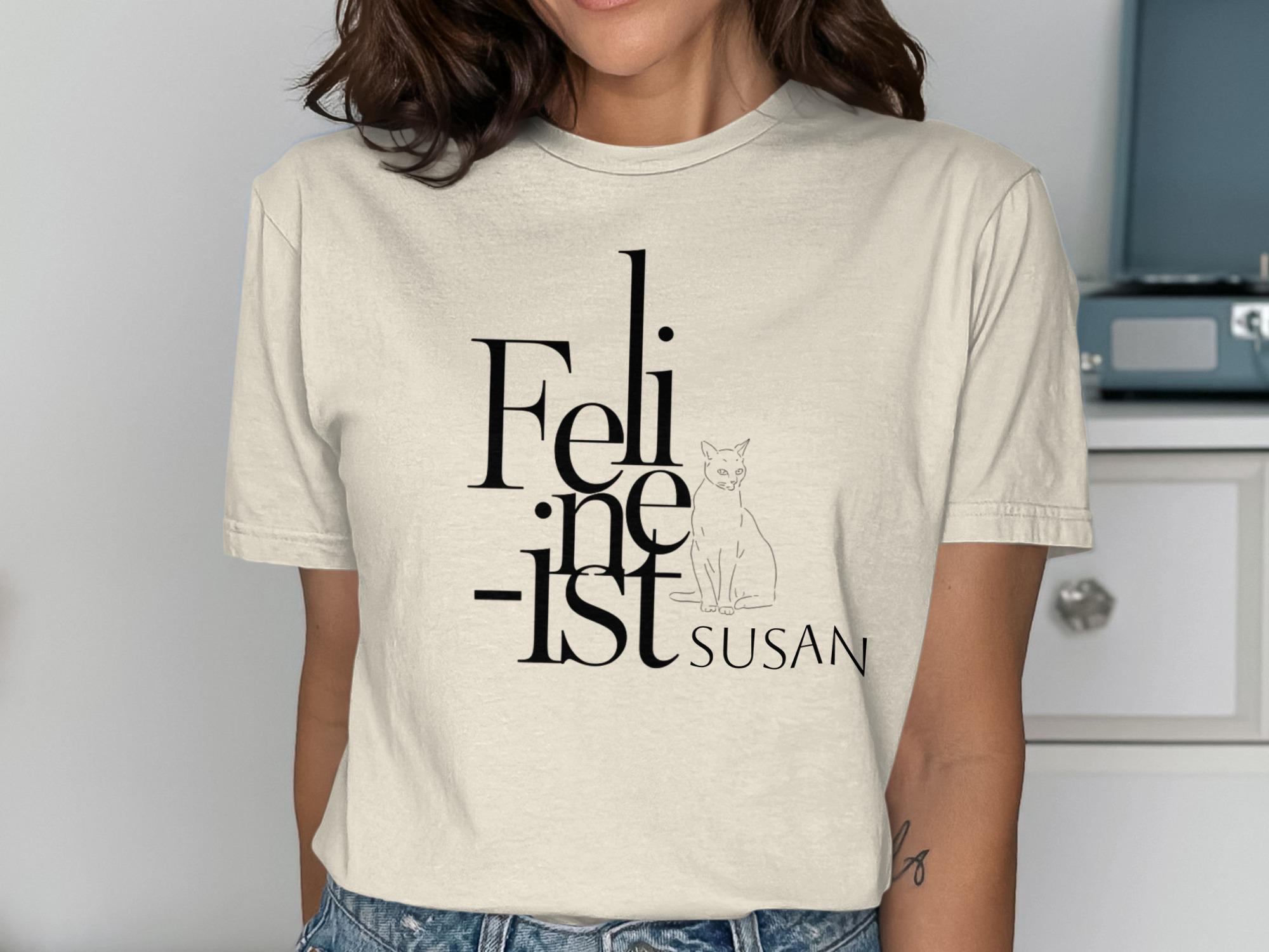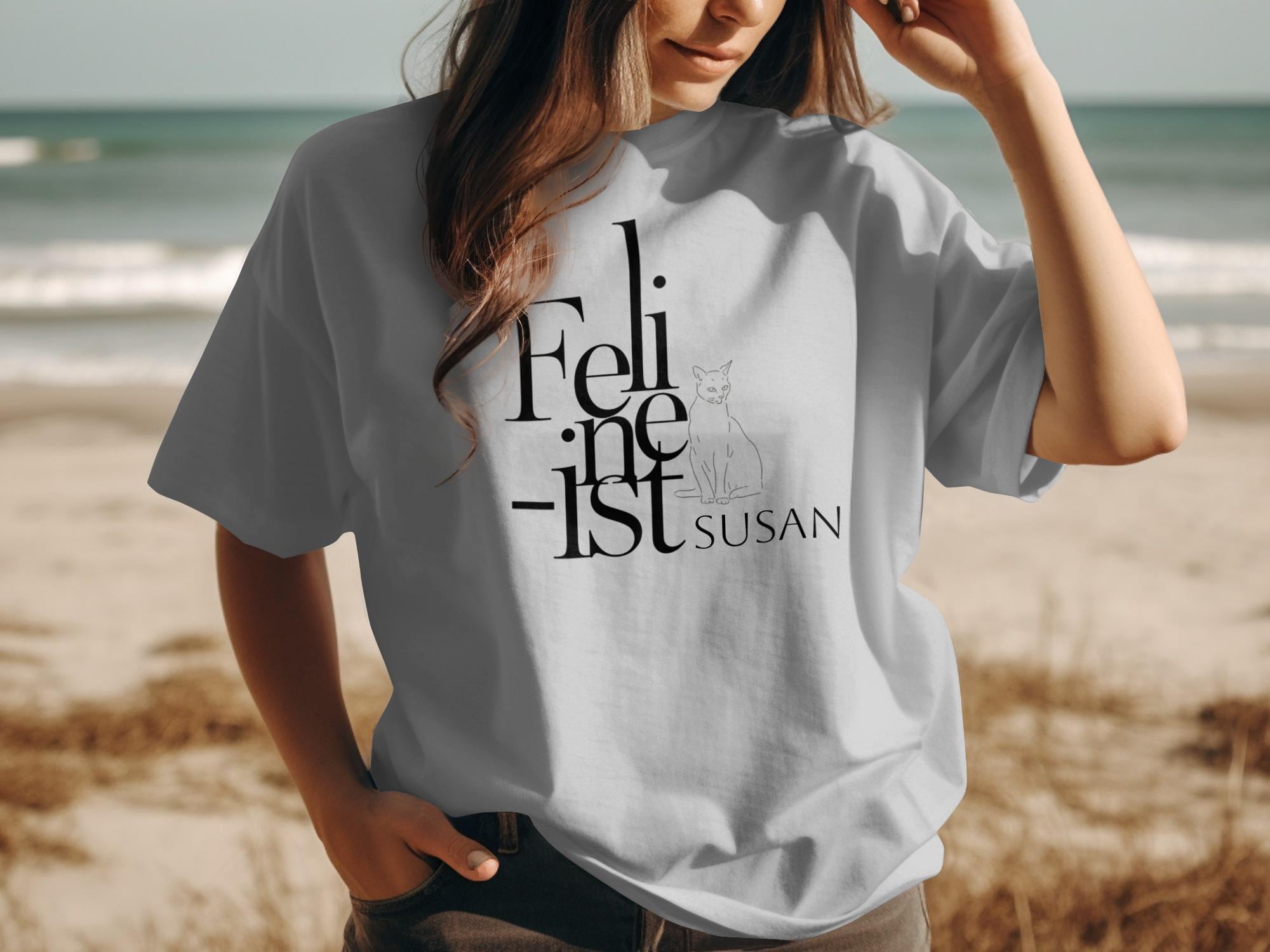 This feminist cat shirt makes the perfect custom tee for any cat lover and serves as an ideal mom gift idea with its clever "Feli-ne-ist" text and adorable kitty graphic. The personalized apparel features a cotton design with feline themed humor that can be customized with a name, creating a funny tshirt that combines cat appreciation with witty graphic humor in one thoughtful gift.