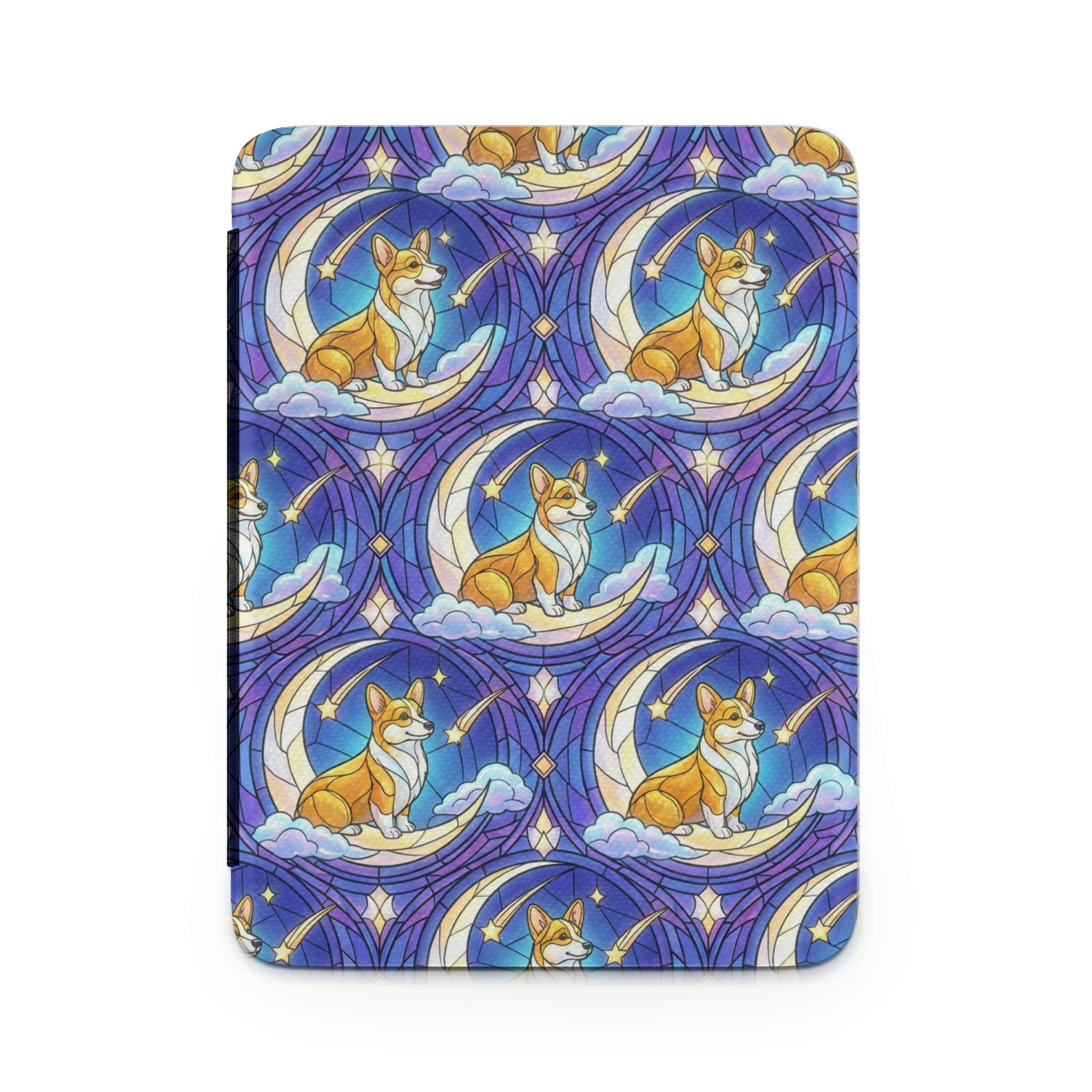 Protect your Kindle with this unique and eye catching case featuring an adorable Corgi sitting on a crescent moon amid sparkling stars. The vibrant stained glass design adds a touch of whimsy and elegance to your reading experience. Perfect gift for any dog lover or bookworm.