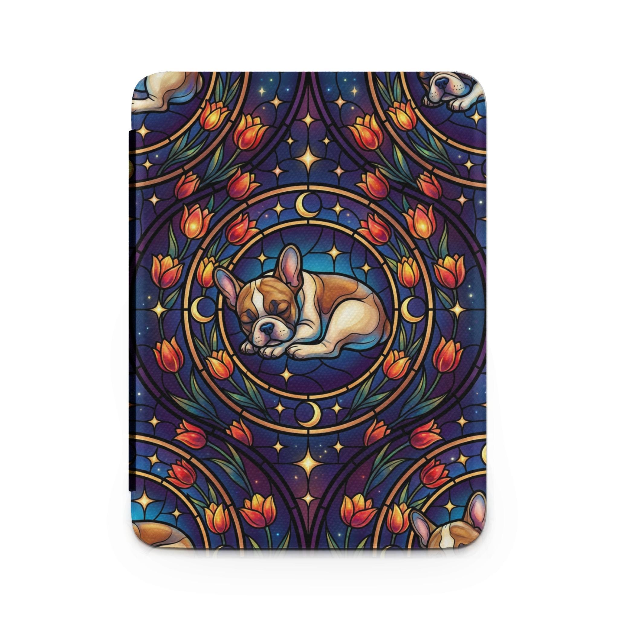 Protect your Kindle with this beautiful and unique case! Featuring a sleeping French Bulldog in a stained glass style design, this Kindle case is sure to turn heads. The vibrant colors and intricate details make this case a work of art. It is a perfect gift for dog lovers.