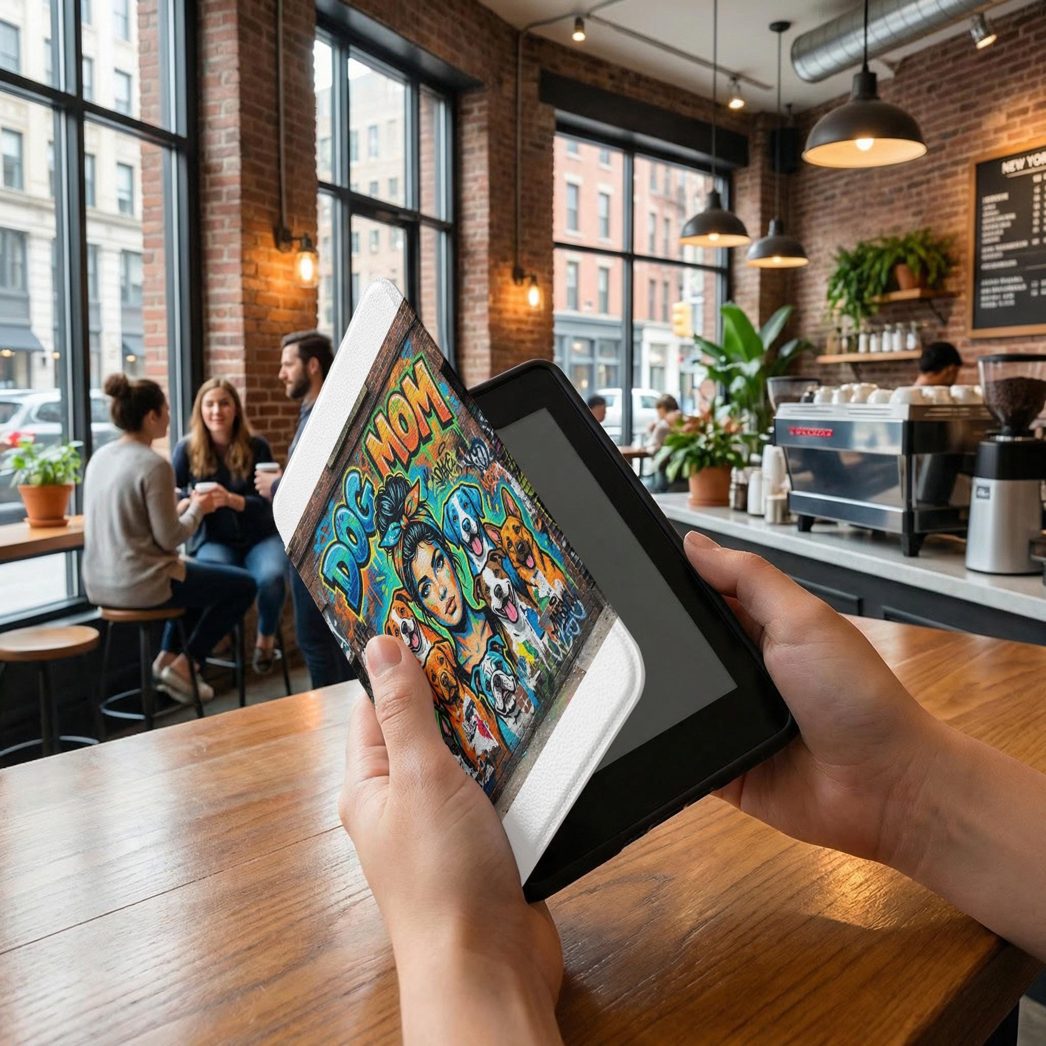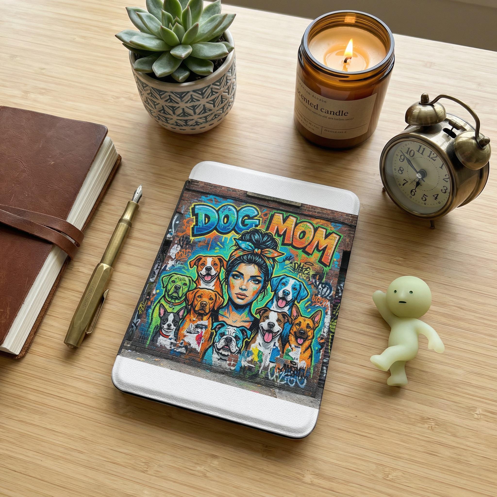 Elevate your Kindle with this cool kindle cover, featuring a vibrant dog mom design in a graffiti style that pops. Perfect for any trendy reader, this artsy kindle sleeve makes a thoughtful pet lover gift or a treat for yourself. The unique kindle case decorates your device with cartoon dog kindle illustrations, showcasing cute dogs in a bold, pop art kindle design that stands out.