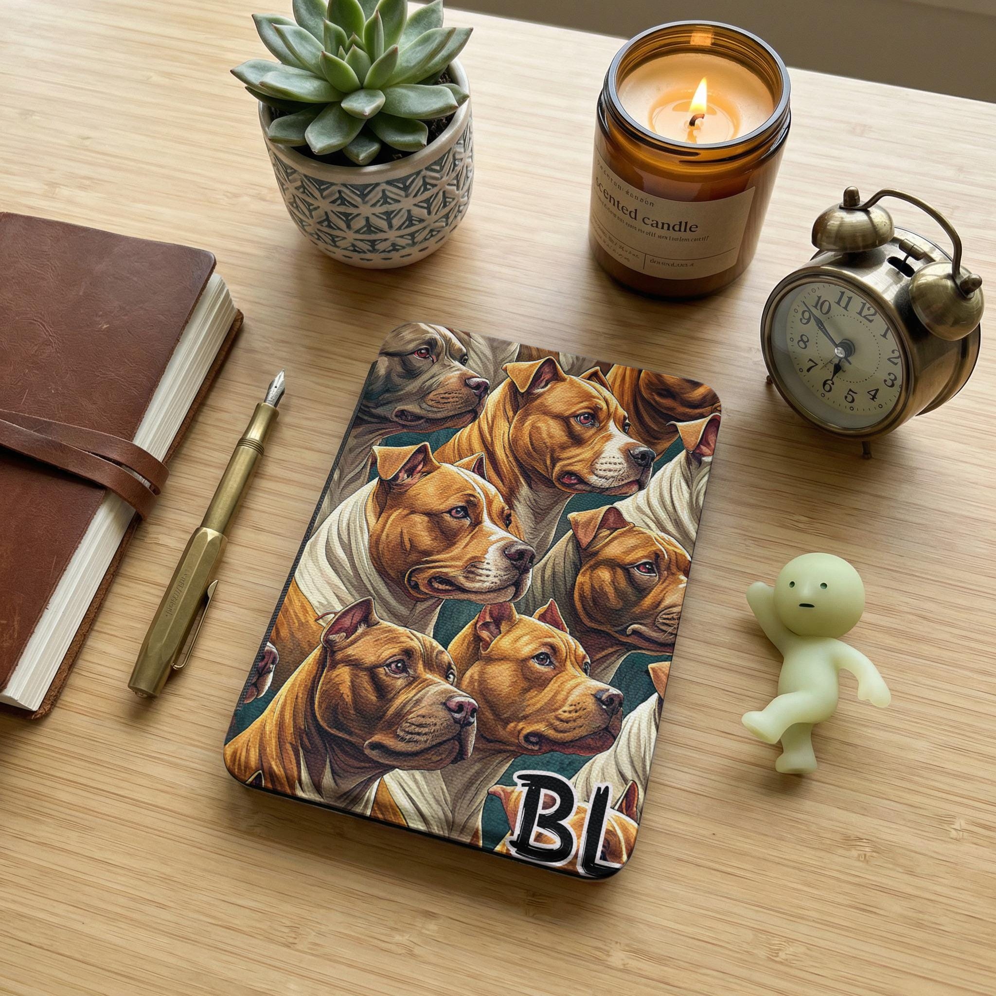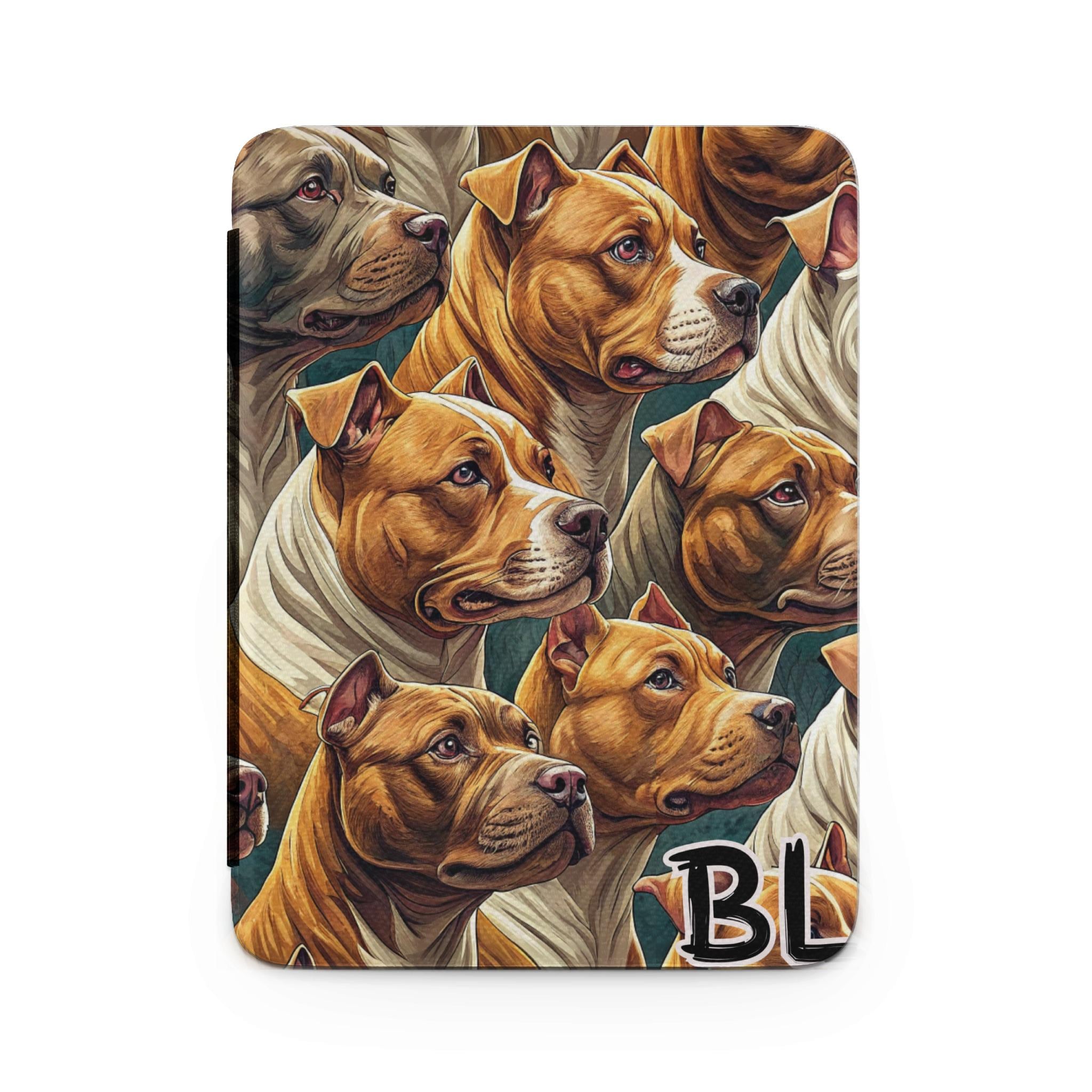 Showcase your love for Pitbulls with this unique and eye catching Kindle Case. The design features a group of majestic Pitbulls, creating a visually stunning and sophisticated look for your e reader. This Kindle case not only protects your device but also adds a touch of personality. It is an ideal gift for dog lovers and a great way to express your passion for these beautiful animals. Get yours today and make a statement.