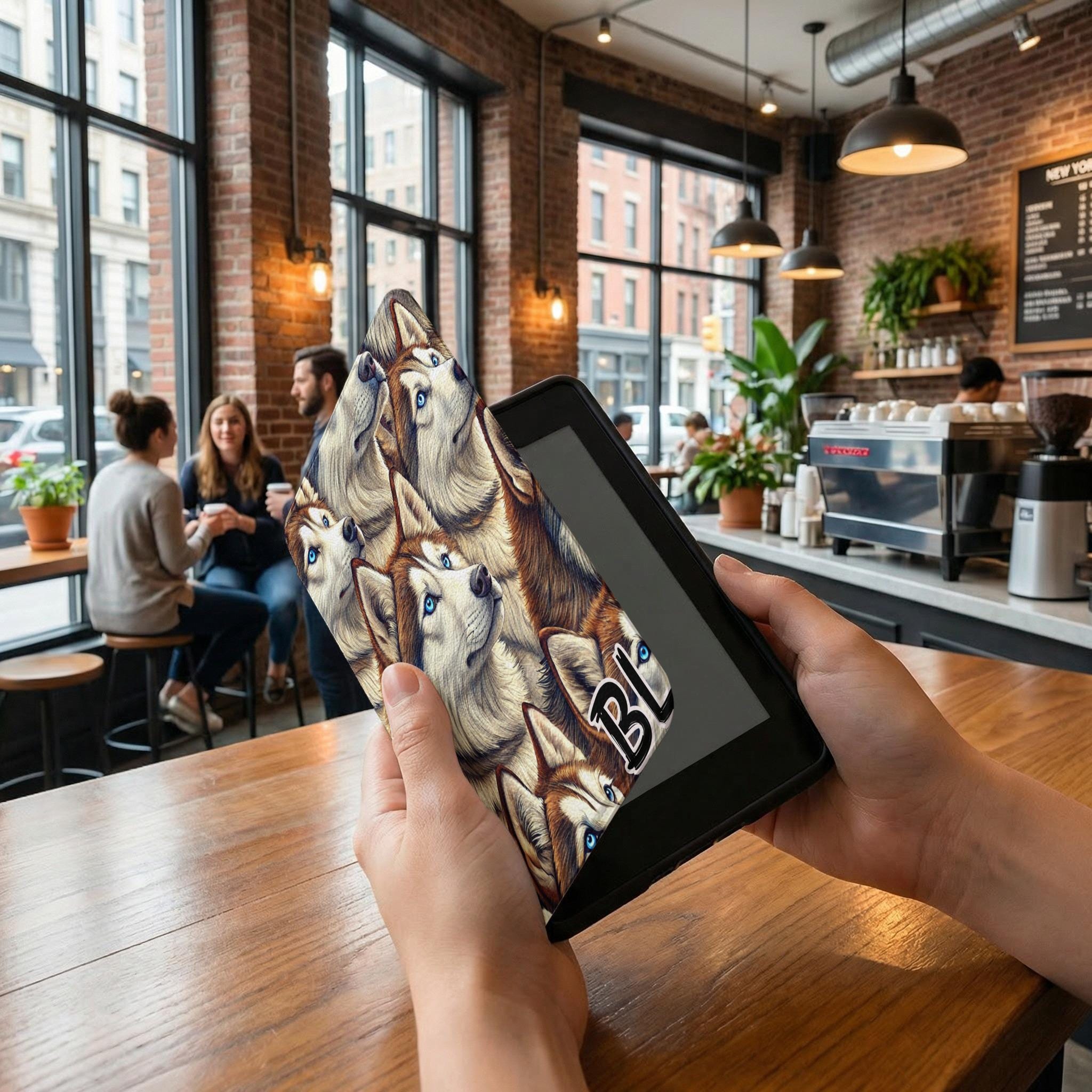 Enhance your reading experience with our unique Husky Dog Kindle Case! This eye catching design features a beautiful collection of huskies with piercing blue eyes. Perfect for dog lovers and anyone who appreciates distinctive art, this case combines style and protection for your Kindle.