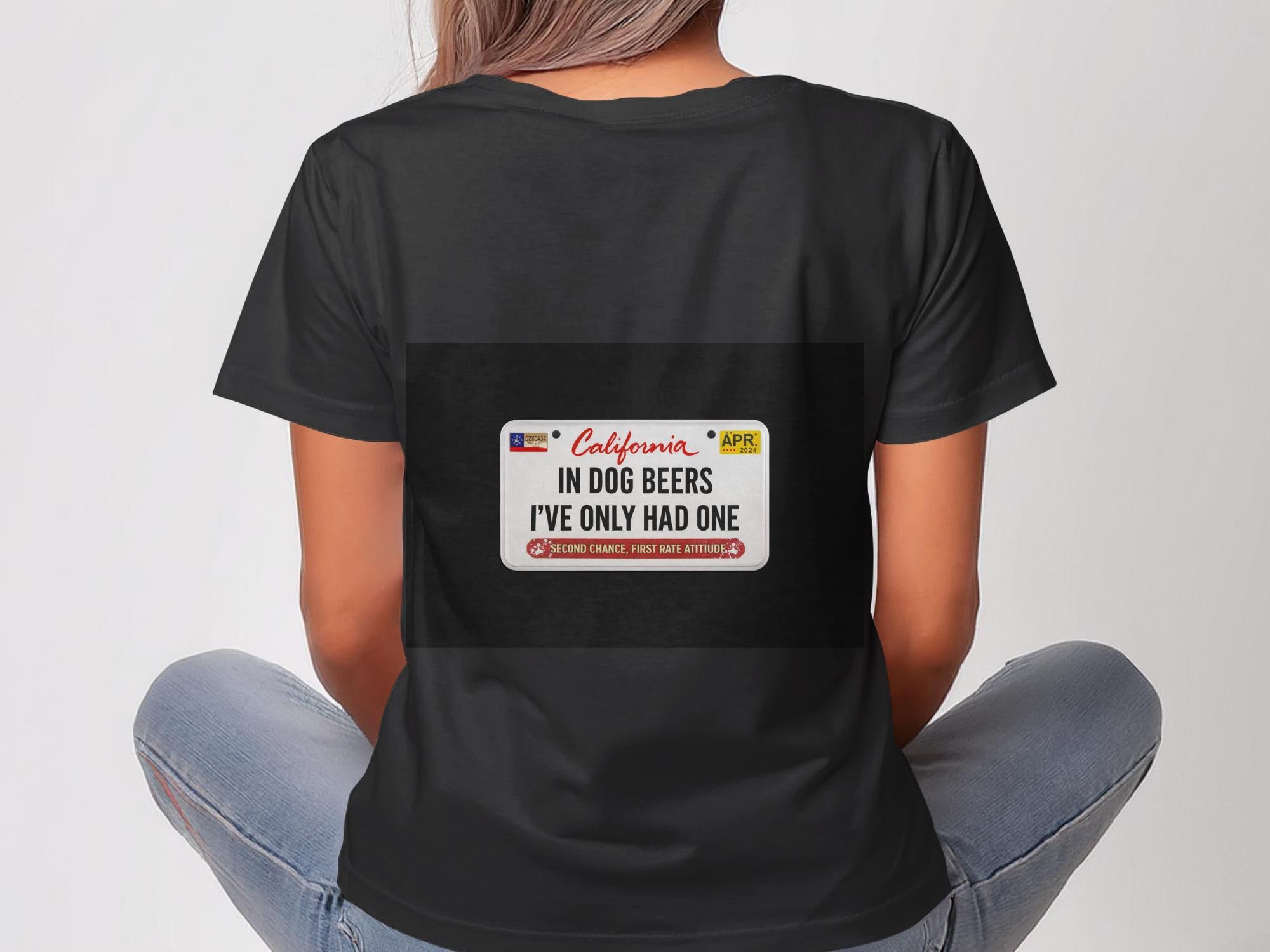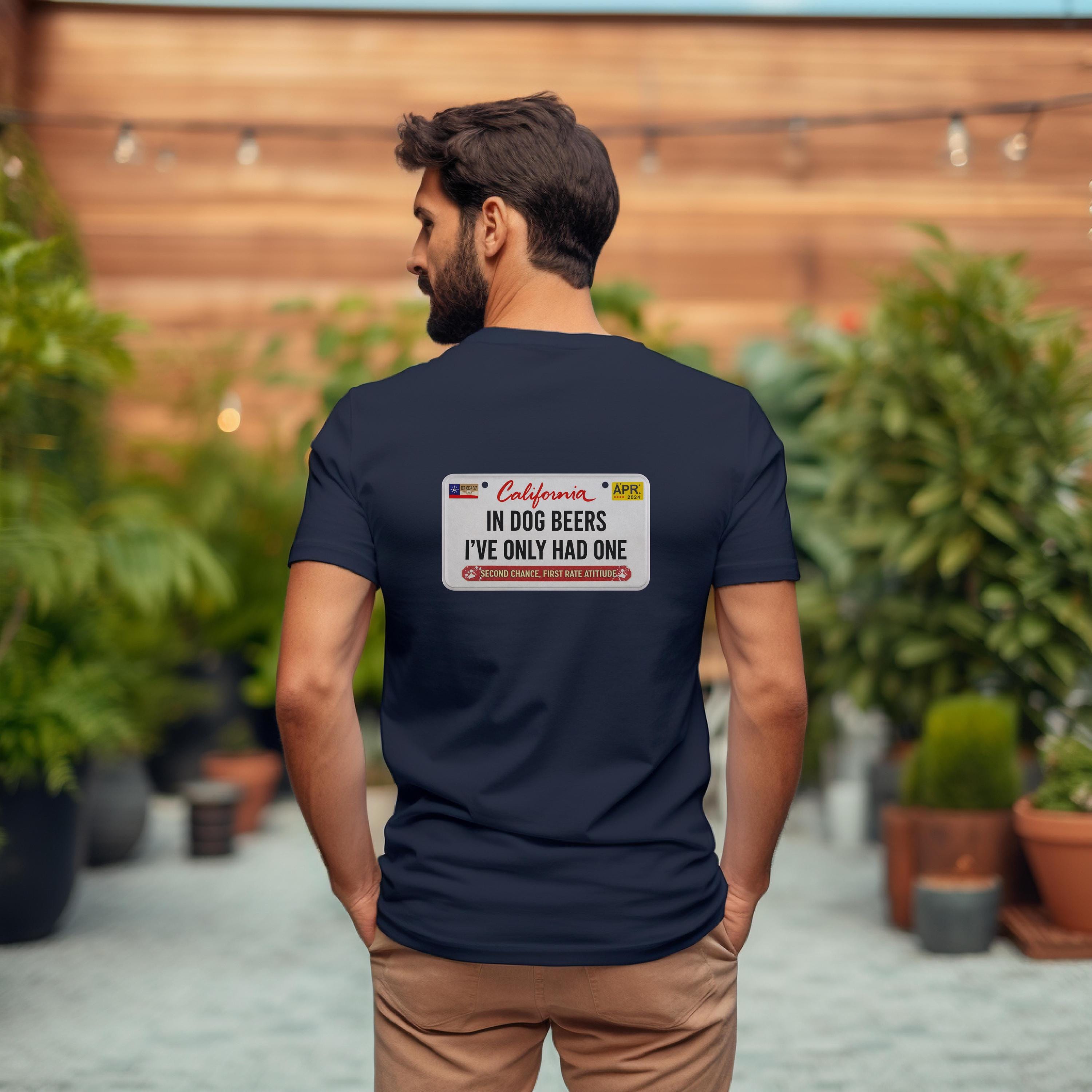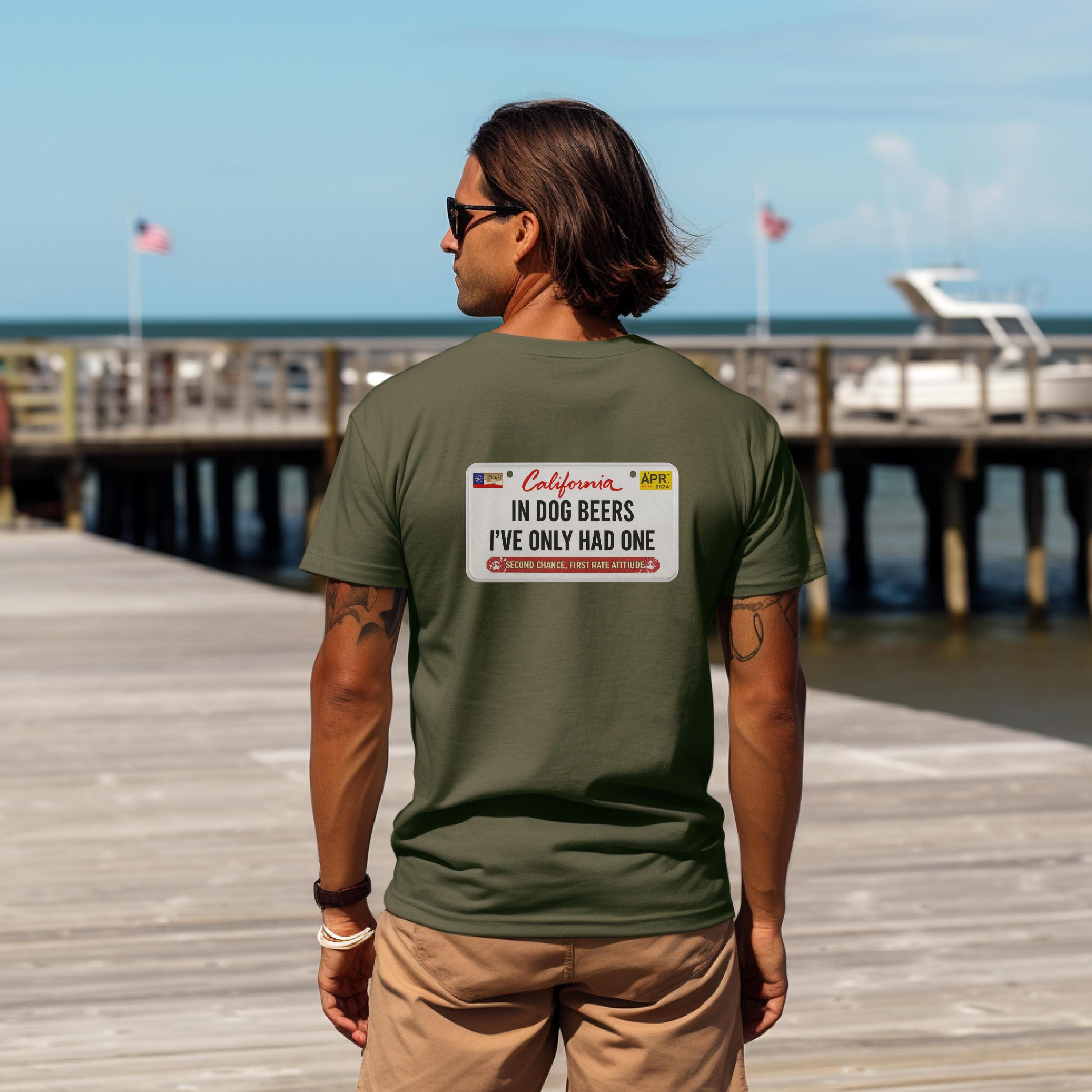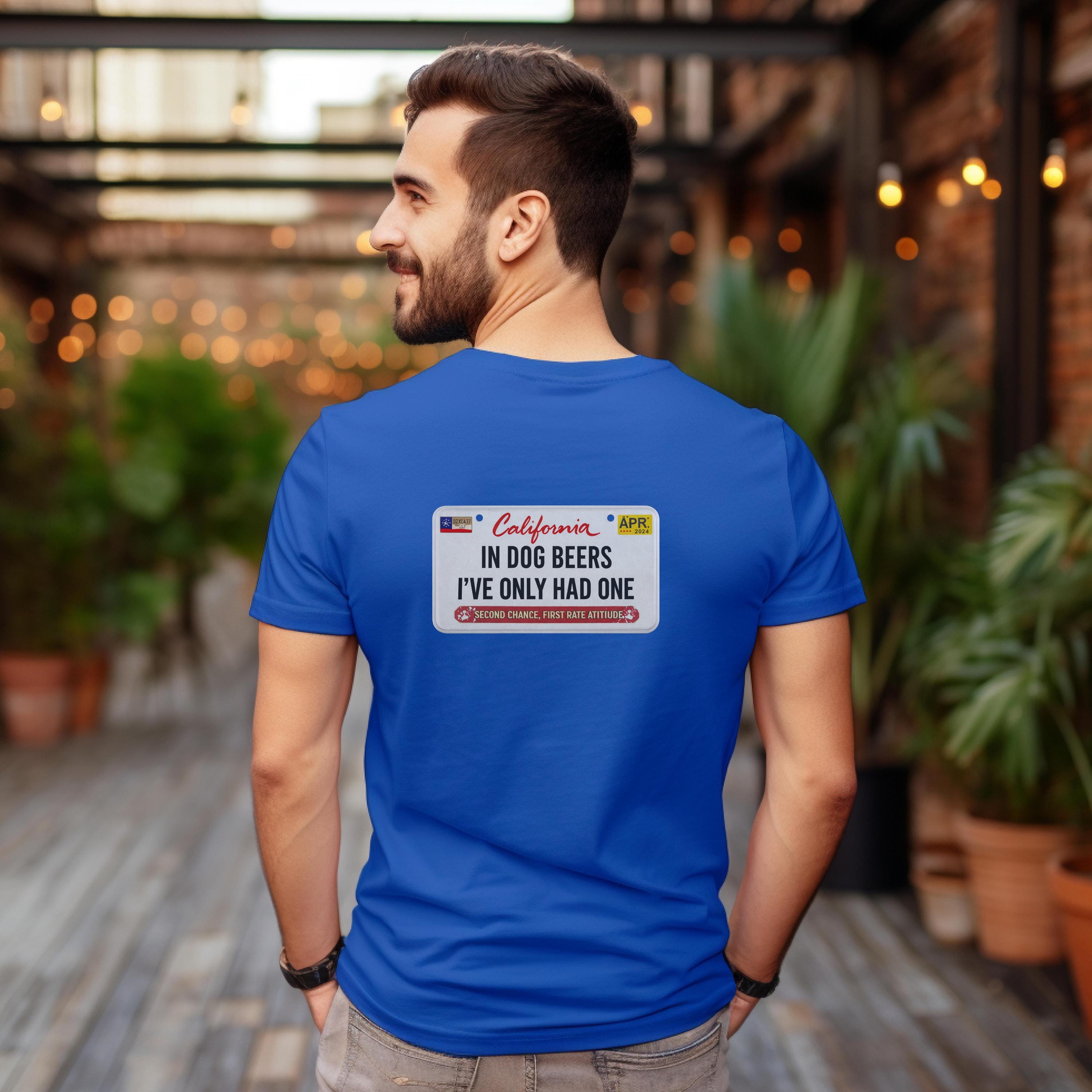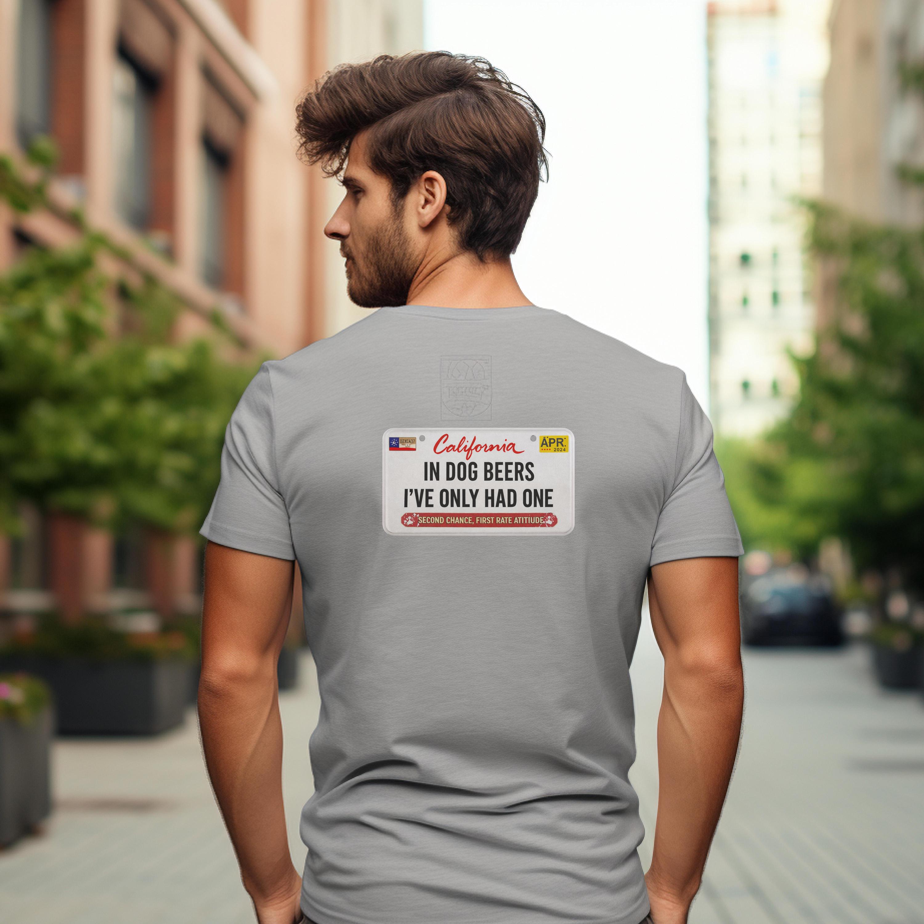 • Features witty phrases "In Dog Beers I've Only Had One" and "Second Chance, First Rate Attitude" on a California license plate design
