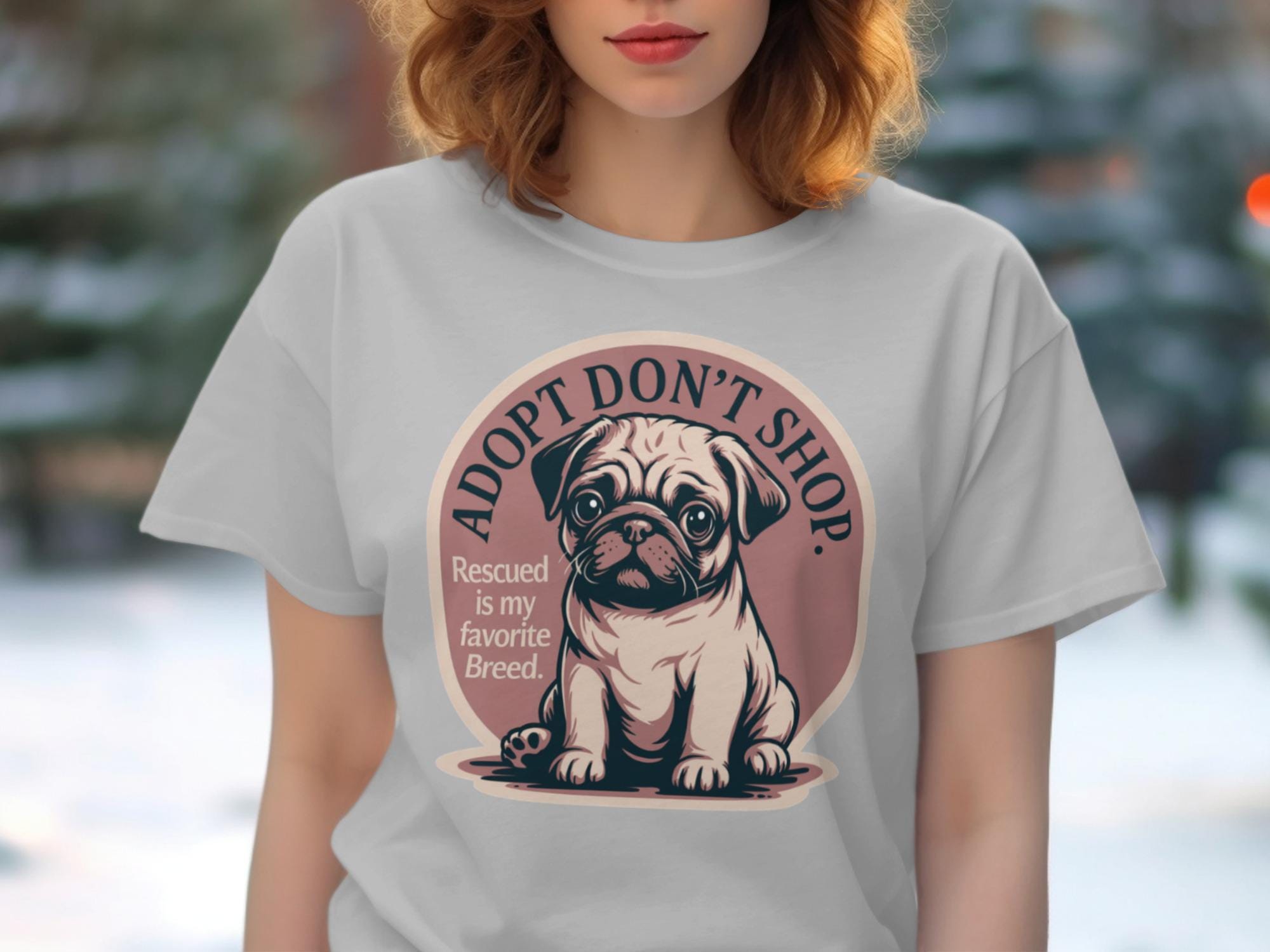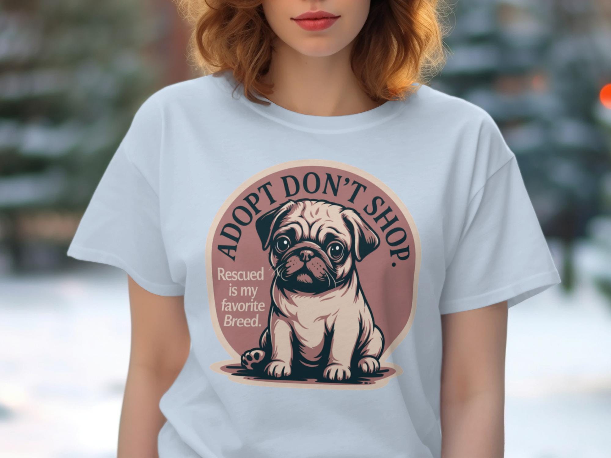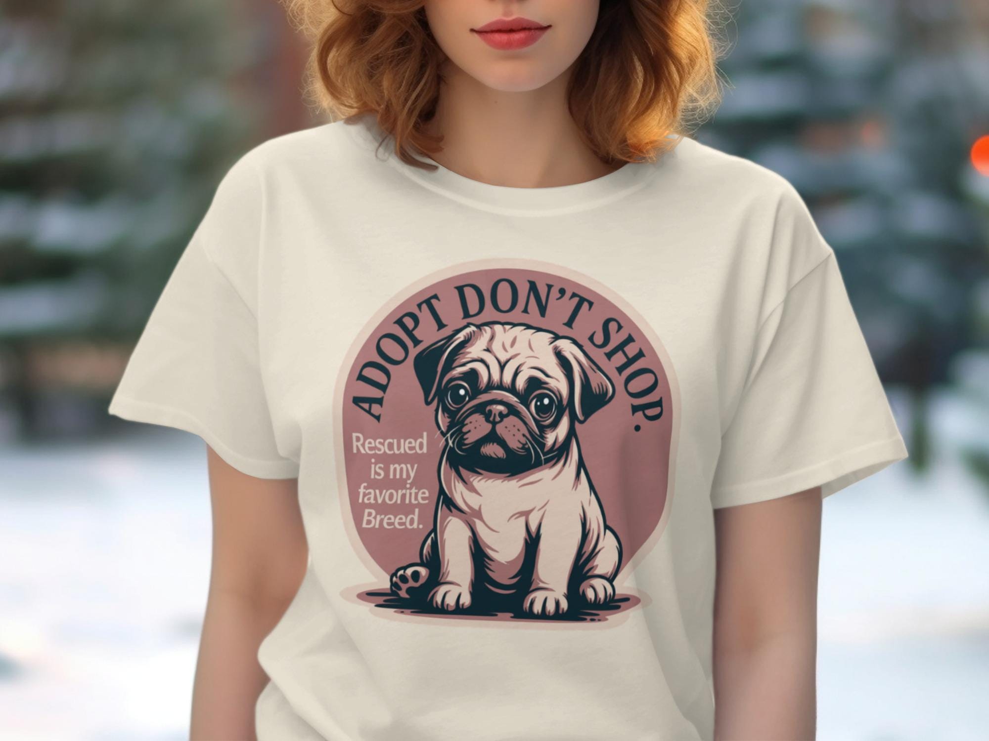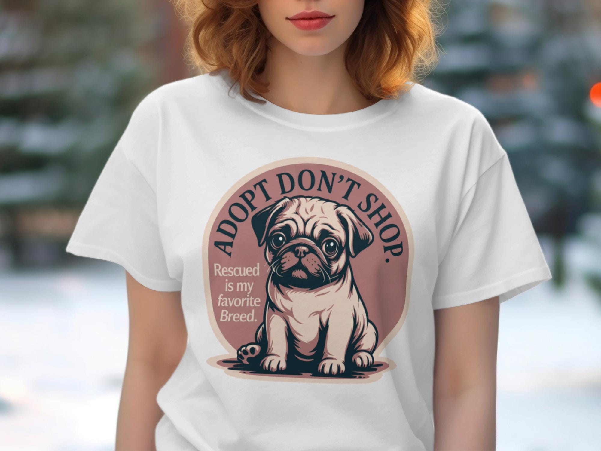 Embrace the powerful message of adoption with this charming 'Adopt Don't Shop' T-Shirt, featuring an adorable pug puppy and the heartwarming phrase 'Rescued is my favorite Breed'. This unique graphic tee is perfect for passionate dog lovers, dedicated rescue advocates, and anyone who believes in giving a loving home to animals in need. Celebrate your commitment to pet adoption and spread awareness with this cute and meaningful design.