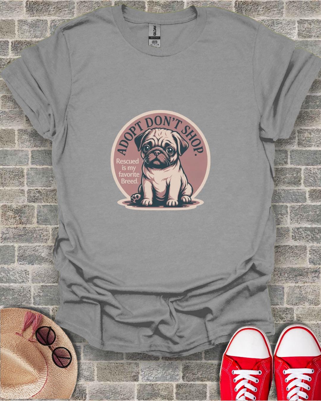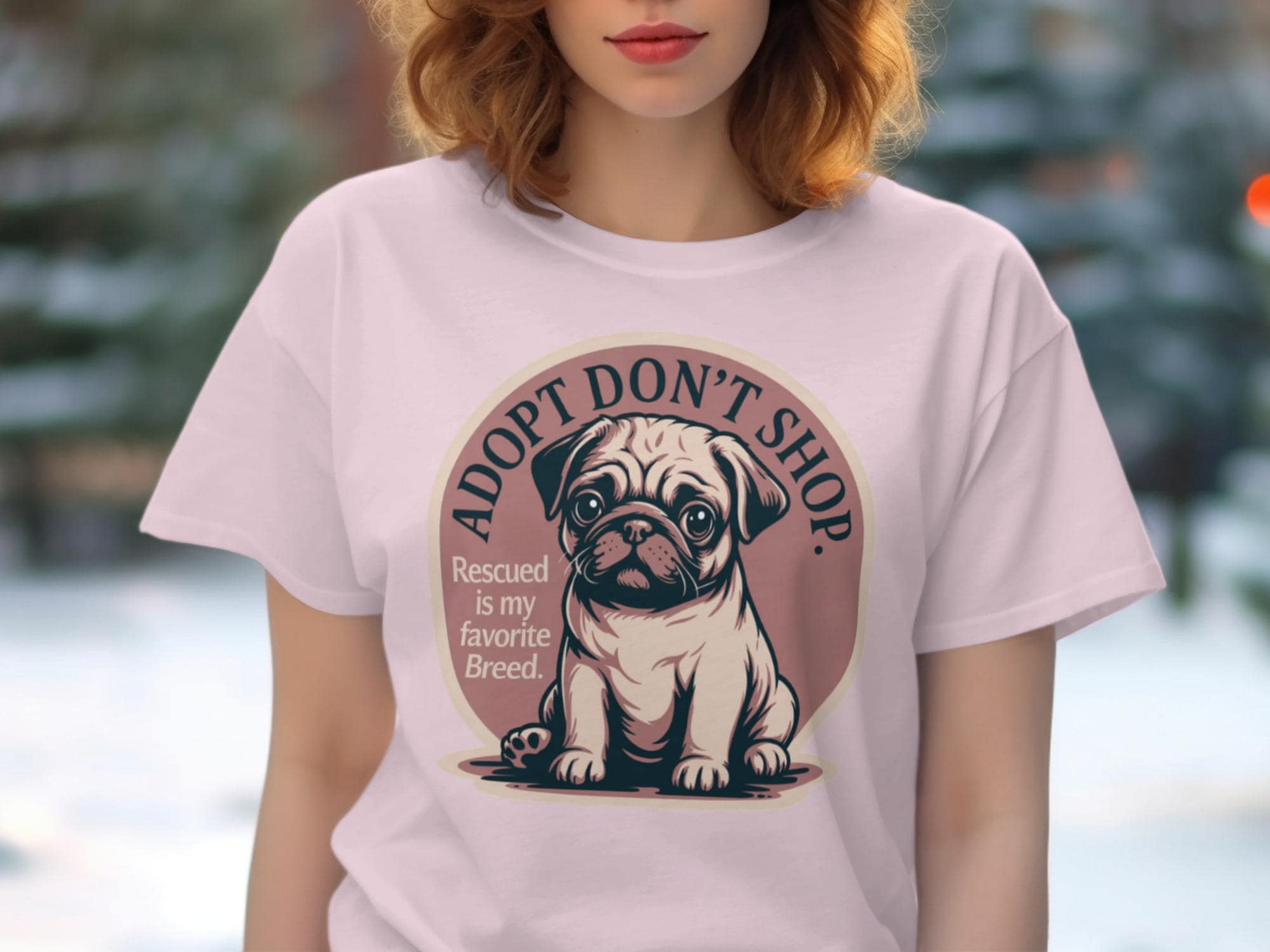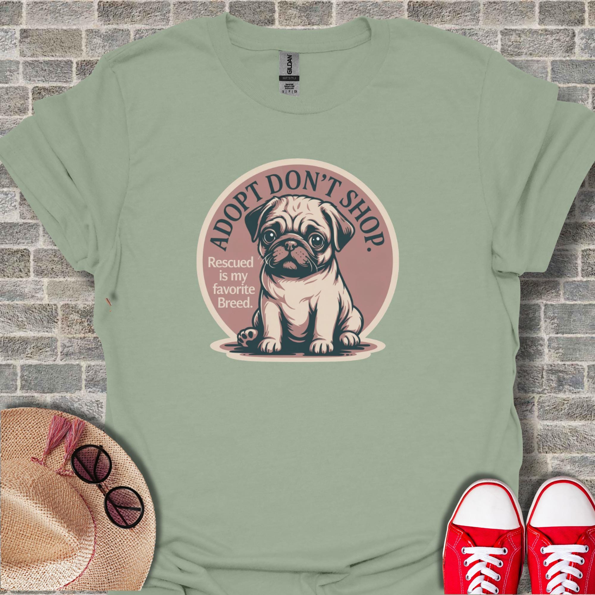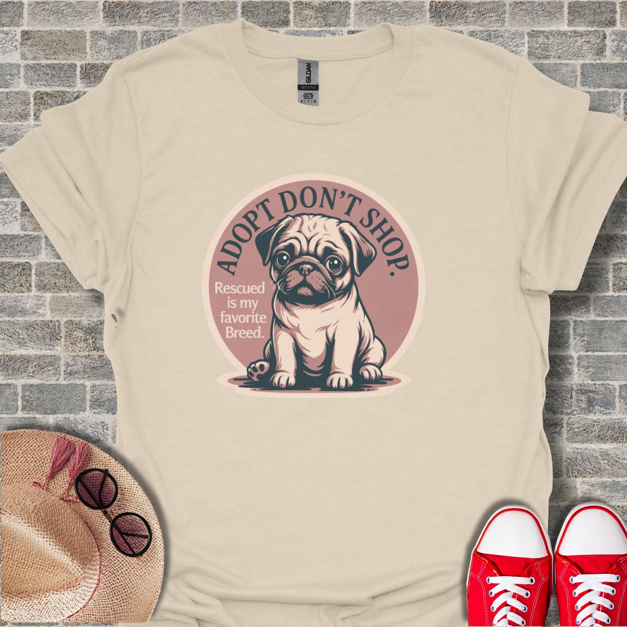 Embrace the powerful message of adoption with this charming 'Adopt Don't Shop' T-Shirt, featuring an adorable pug puppy and the heartwarming phrase 'Rescued is my favorite Breed'. This unique graphic tee is perfect for passionate dog lovers, dedicated rescue advocates, and anyone who believes in giving a loving home to animals in need. Celebrate your commitment to pet adoption and spread awareness with this cute and meaningful design.