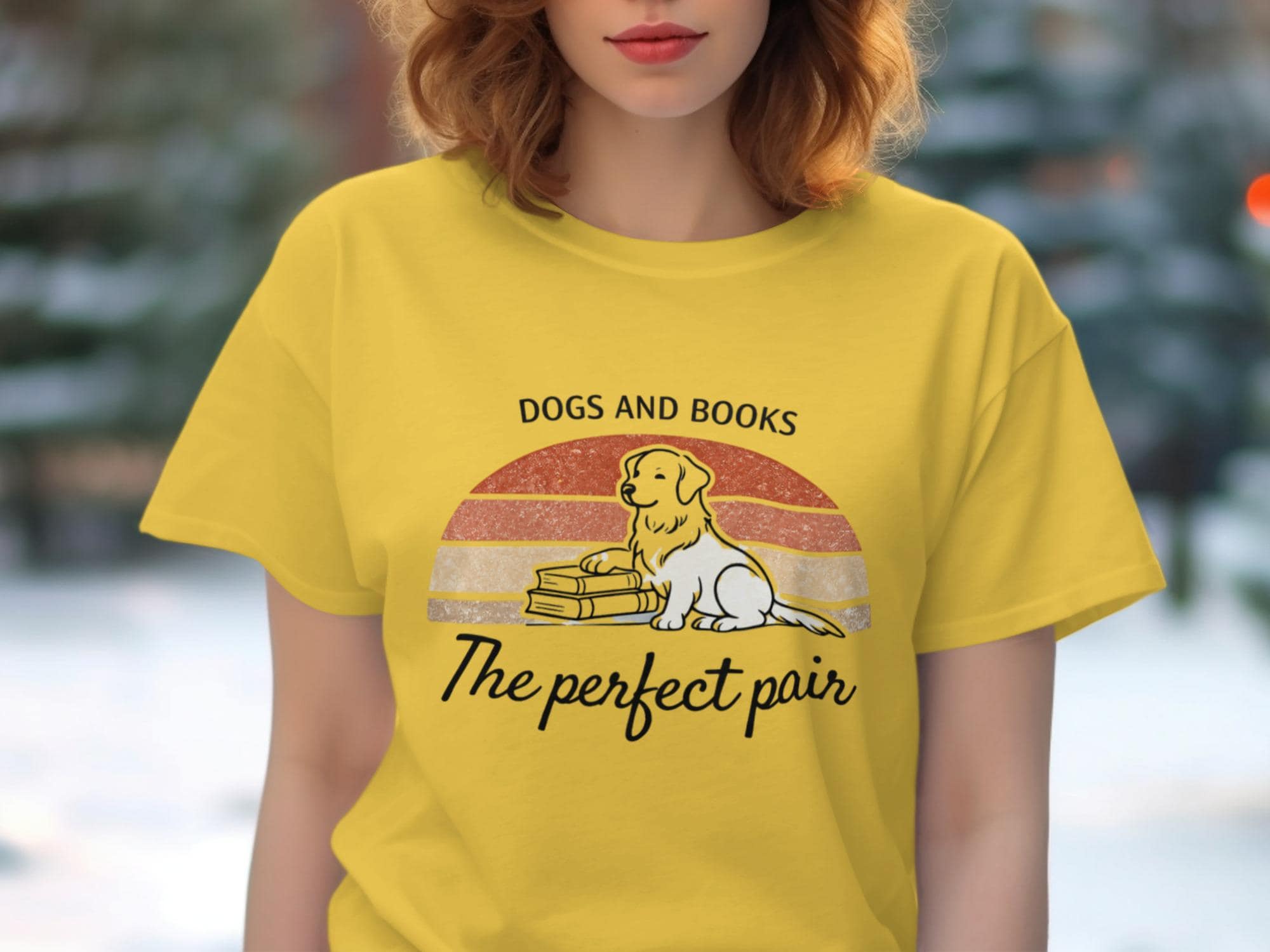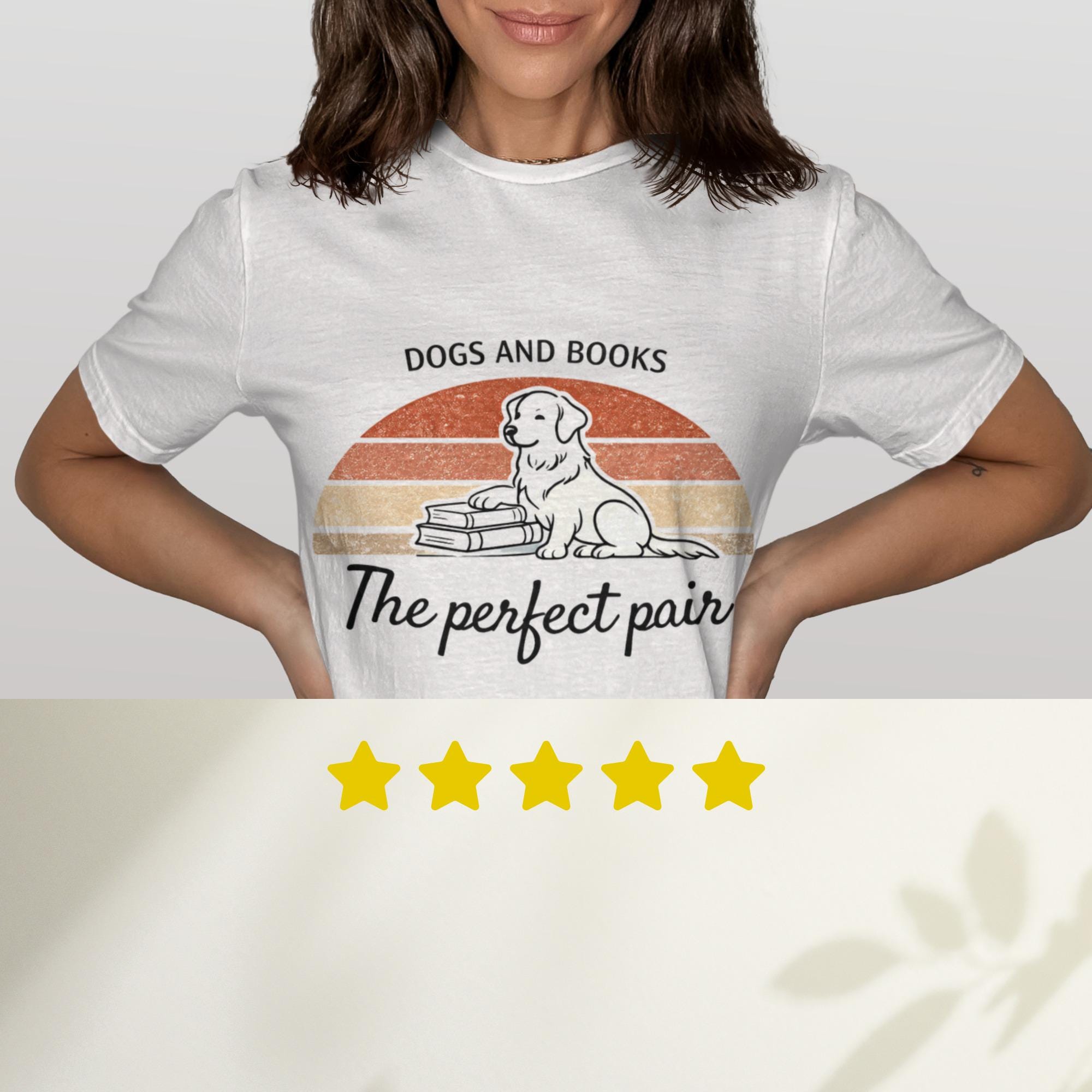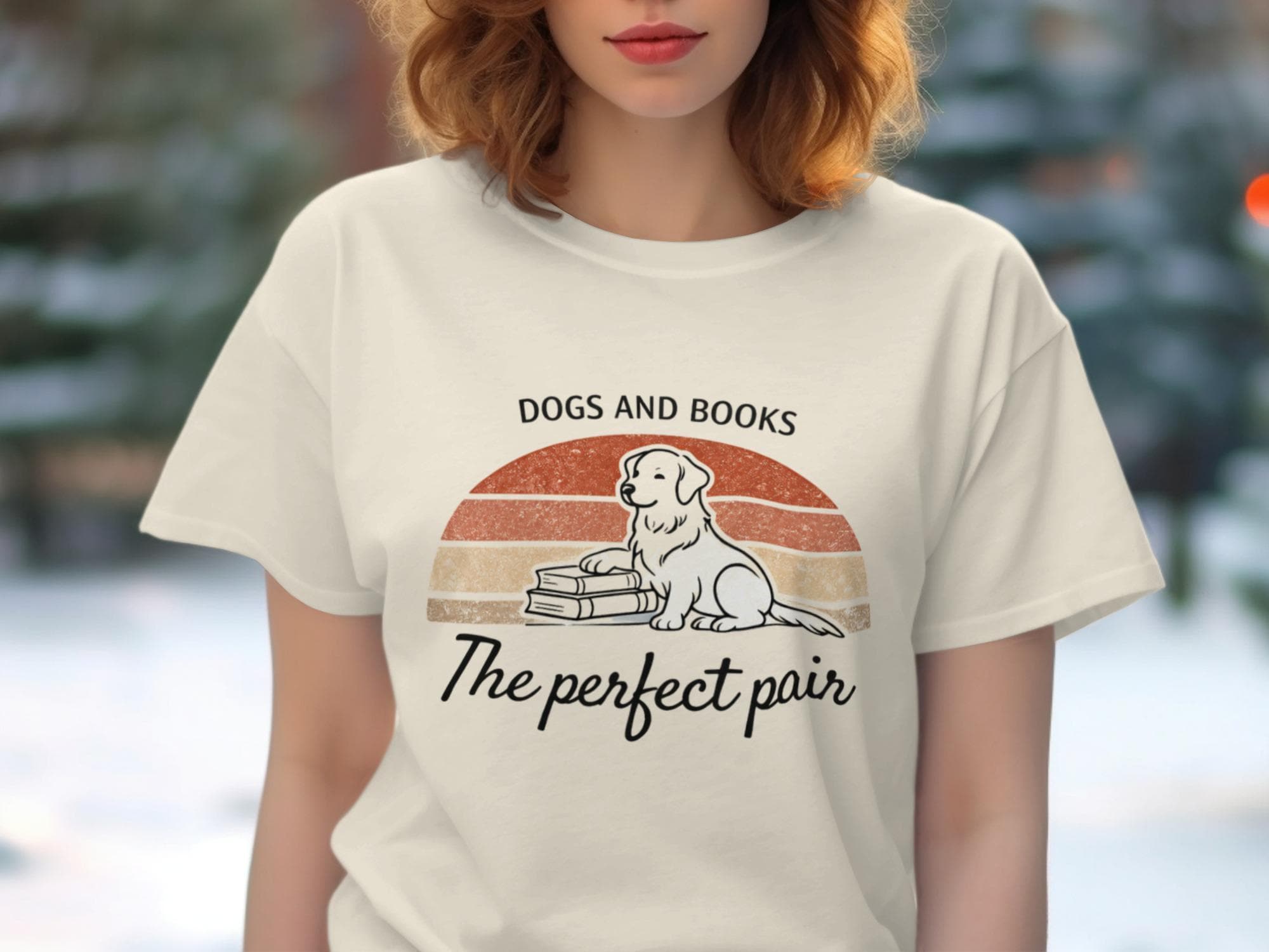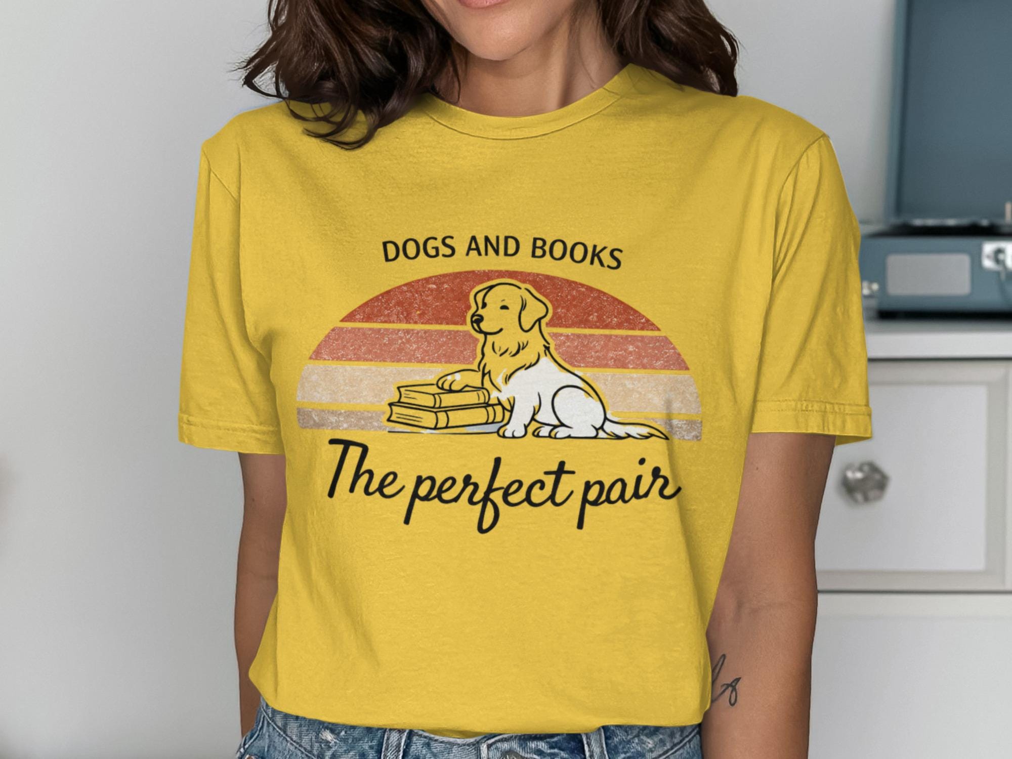 Celebrate your love for furry friends and captivating stories with our exclusive Dogs and Books The Perfect Pair T-Shirt. This charming design features an adorable Golden Retriever resting its paw on a stack of books, perfectly capturing the joy of quiet reading moments with a beloved canine companion. Ideal for bookworms, dog moms, librarians, and anyone who understands that dogs and books truly are the perfect pair. Makes a thoughtful gift for birthdays, holidays, or just because for the special pet owner and reader in your life. Wear your passions proudly and spark delightful conversations wherever you go with this unique T-Shirt.