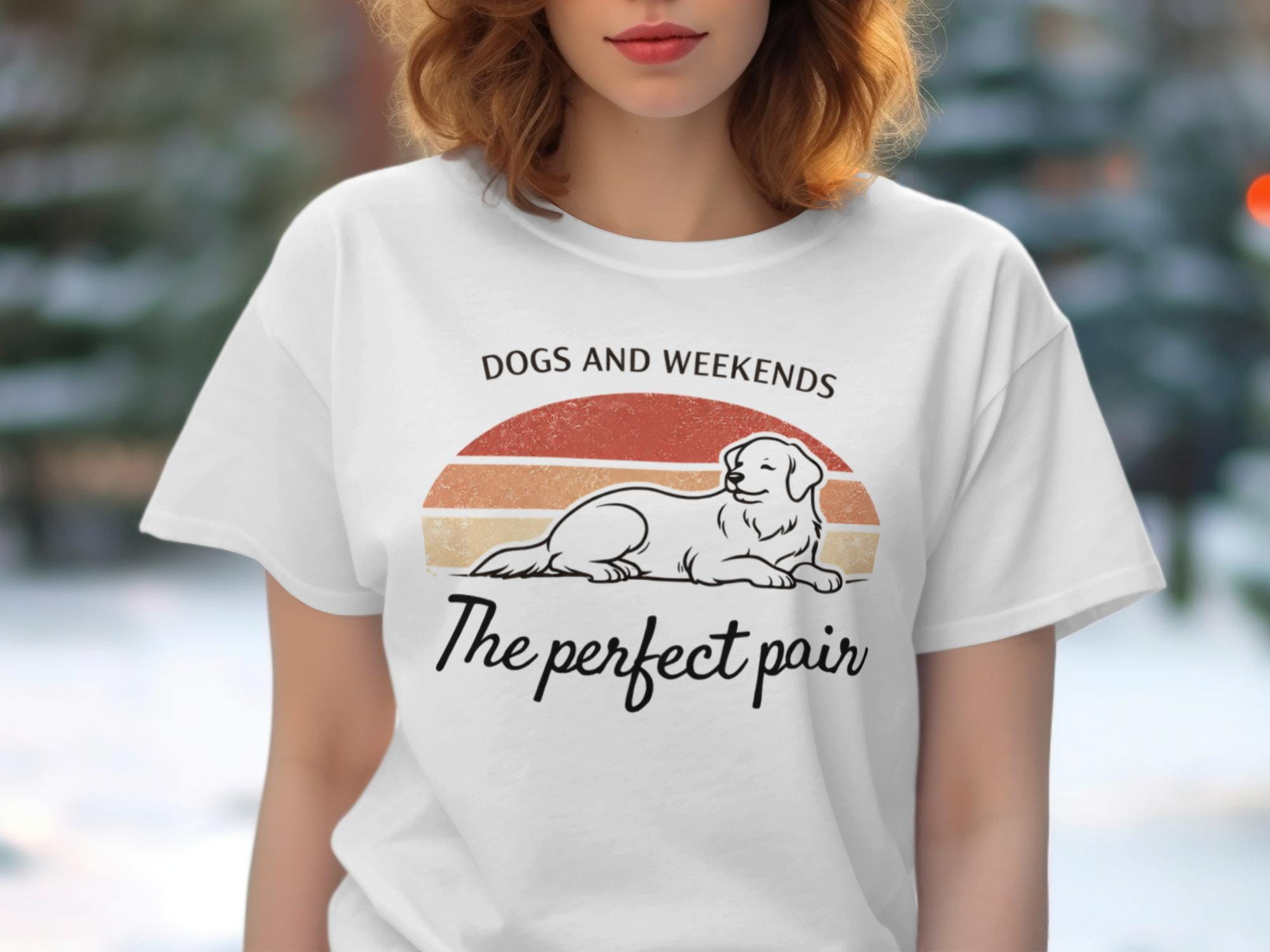 Show your love for dogs and embrace the weekend spirit with this charming graphic tee.