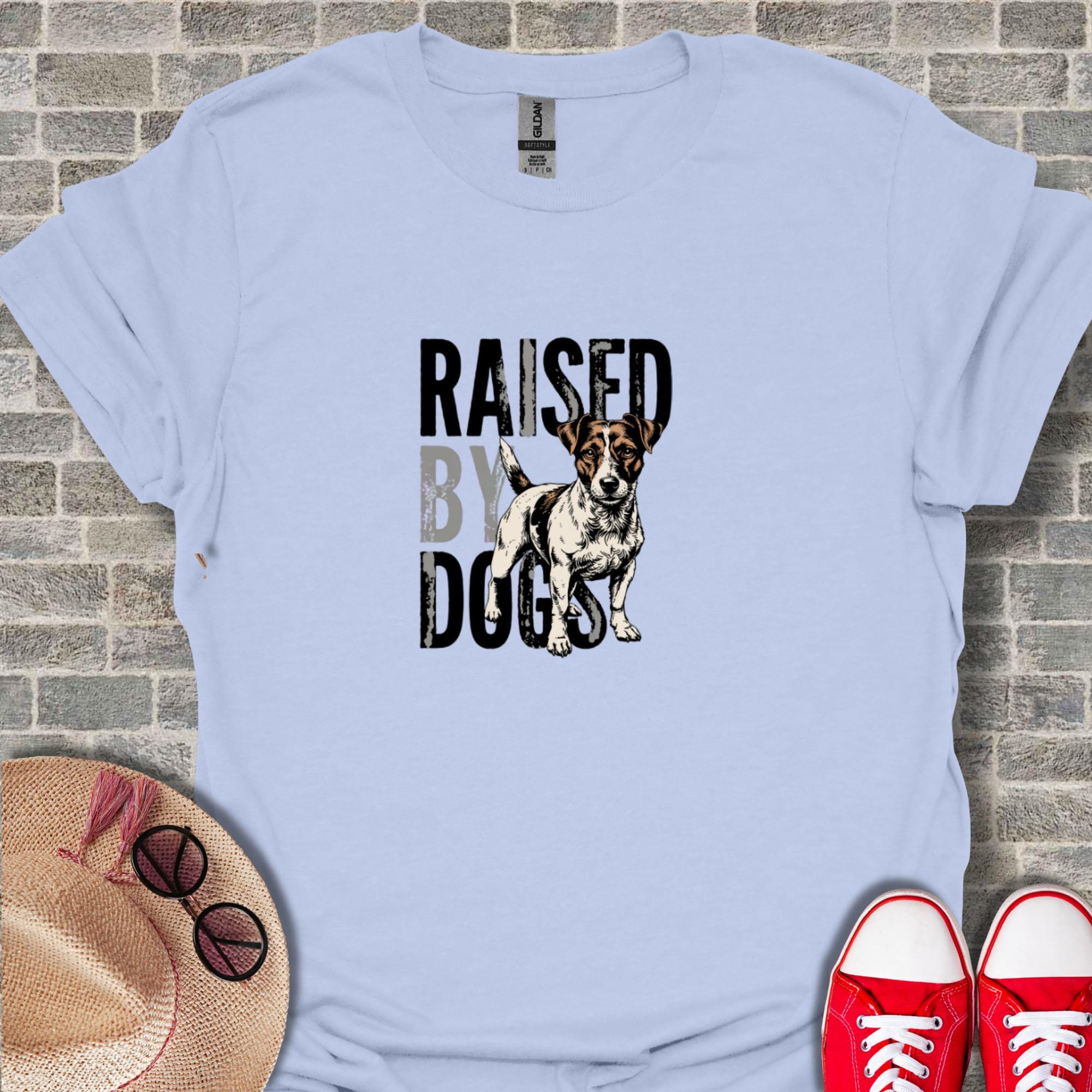 Embrace your identity as a proud dog parent with our exclusive "Raised By Dogs" T-Shirt. This captivating design artfully combines bold, distressed typography with a beautifully rendered illustration of a beloved Jack Russell Terrier, making it a perfect statement piece for any canine enthusiast. Whether you grew up surrounded by playful pups or found your true family in the wagging tails of your furry friends, this T-Shirt speaks volumes about your unconditional love for dogs. It's an ideal gift for dog moms, dog dads, pet owners, and anyone who cherishes their four-legged family members. Wear your heart on your sleeve and share your dog-loving spirit with the world. This unique T-Shirt is a must-have for showcasing your passion and connection to the wonderful world of dogs. It's a thoughtful present for birthdays, holidays, adoption anniversaries, or simply as a token of appreciation for the dog lovers in your life.