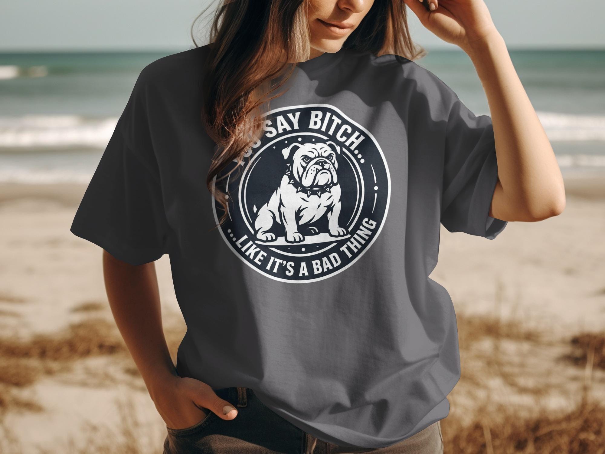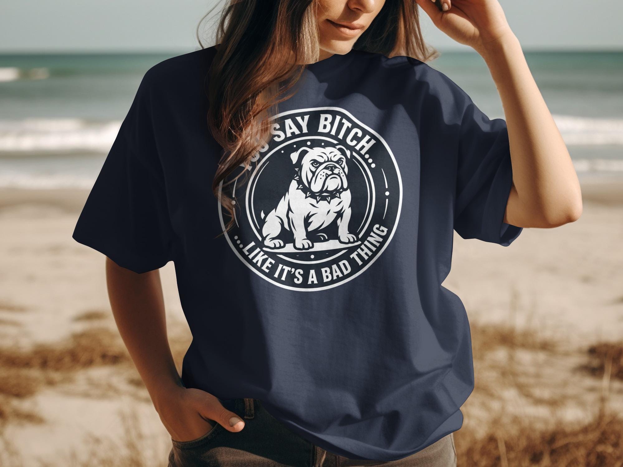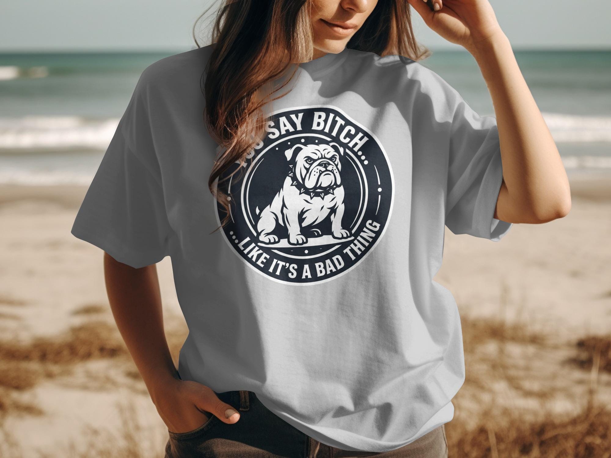 Make a bold statement with this unique Bulldog T-Shirt, featuring the assertive quote "You Say Bitch... Like It's A Bad Thing". This design perfectly captures a no-nonsense attitude, ideal for those who appreciate sharp wit and a touch of rebellious spirit. Celebrate your love for bulldogs and distinctive humor with this eye-catching graphic tee. It's a fantastic conversation starter and a testament to individuality.