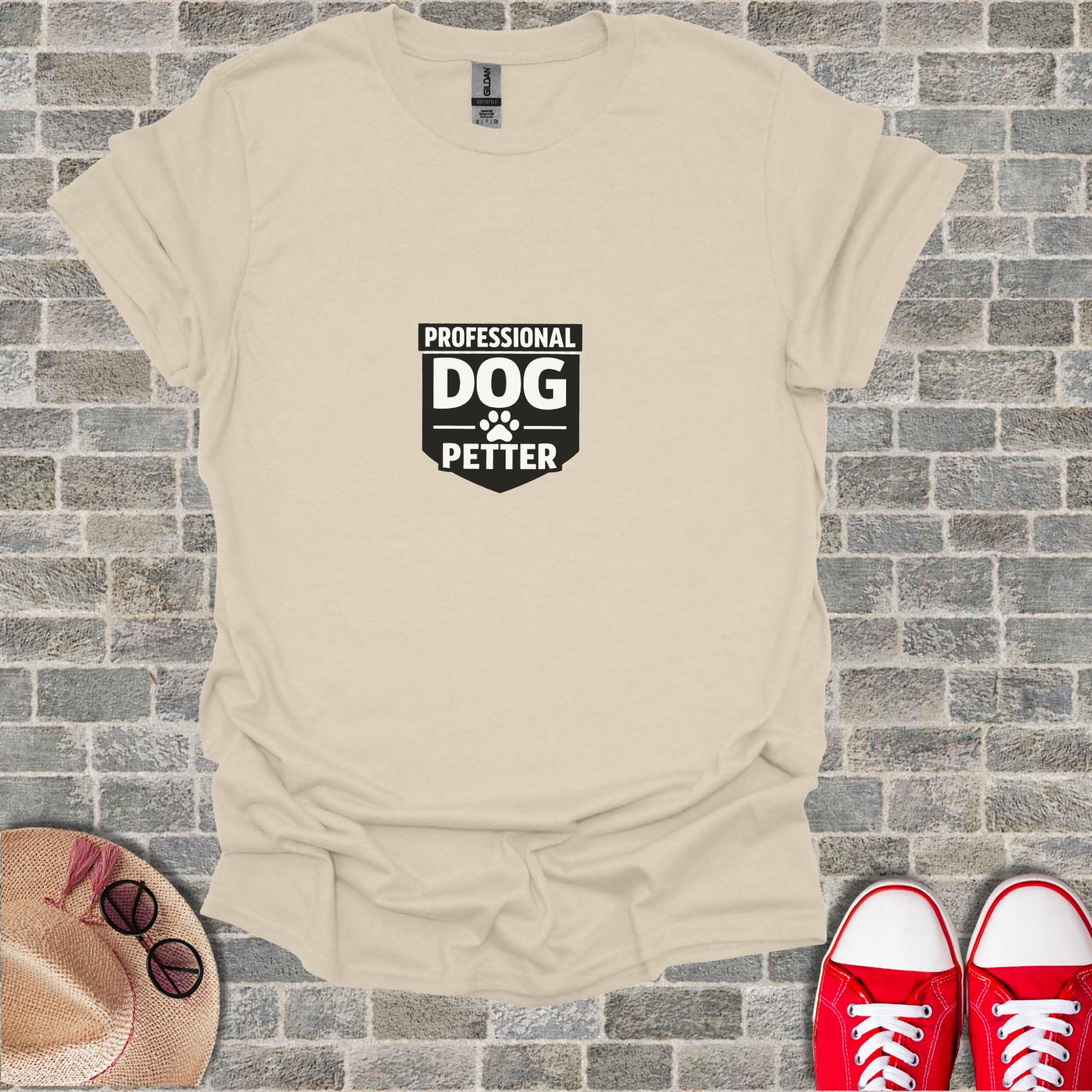 * Unique "Professional Dog Petter" shield design on this T-Shirt.